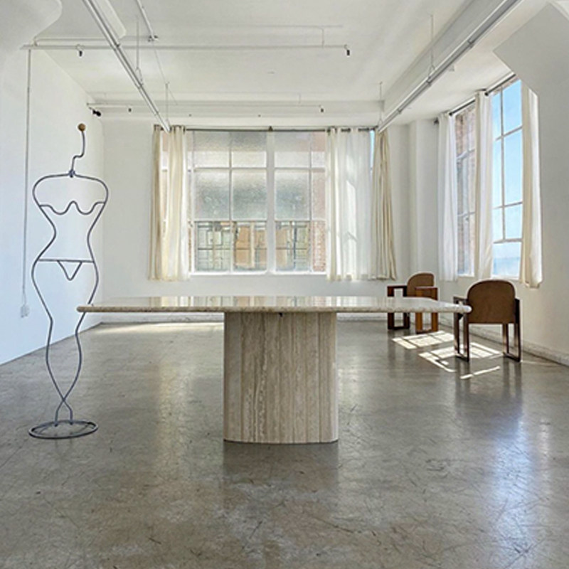 Обеденный стол из натурального мрамора, дизайнерский обеденный стол в стиле ваби-саби для гостиной, прямоугольный обеденный стол из травертина, индивидуальный заказ