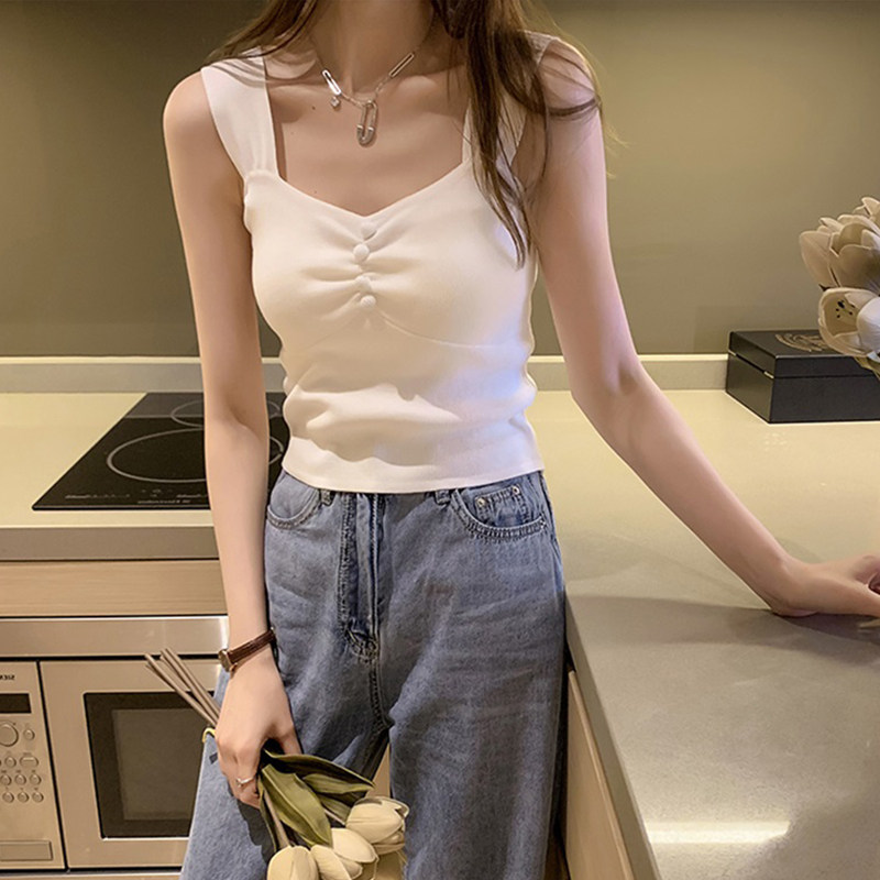 Топ с чашечками, майка топ, базовый костюм, французский стиль, в западном стиле, красивая спина