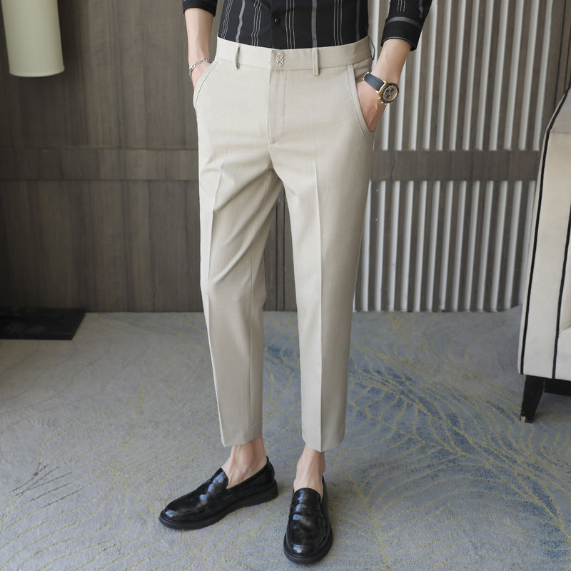 Тенденция!Девять брюк мужской бизнес с высоким уровнем досуга Британская вышивка слабые ноги падают