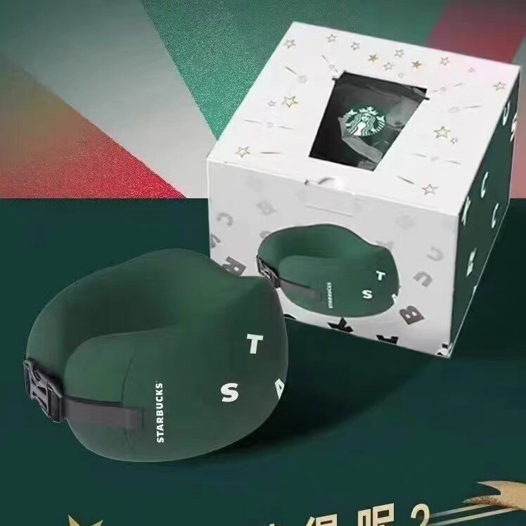 Участник Starbucks Starbucks Exclusive Limited -Edition Темно -зеленый портативный проездной подушка u -форма
