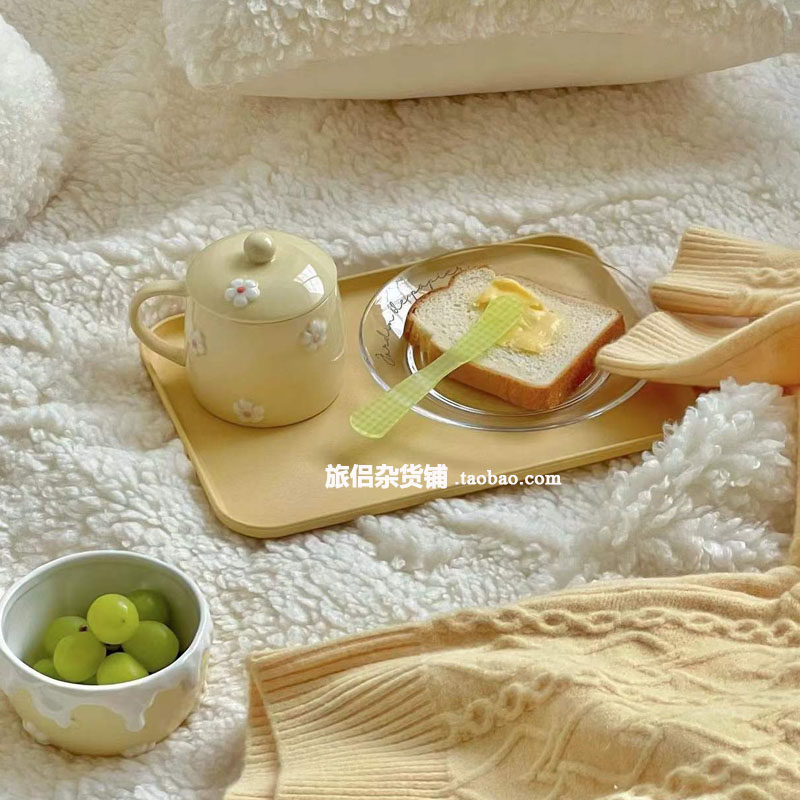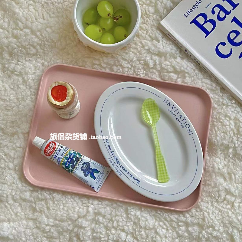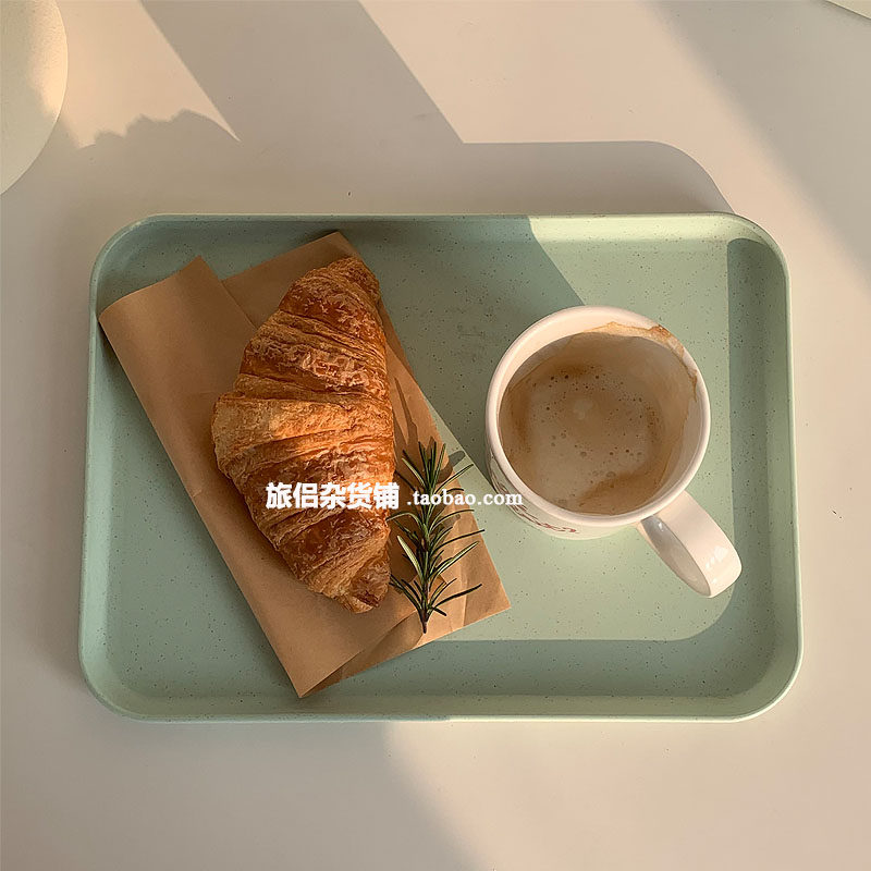 Южнокорейский блоггер INS Тот же пшеница соломенная солома с твердым цветом прямоугольный десертный десертный десертный десертный диск для хранения кофе диск