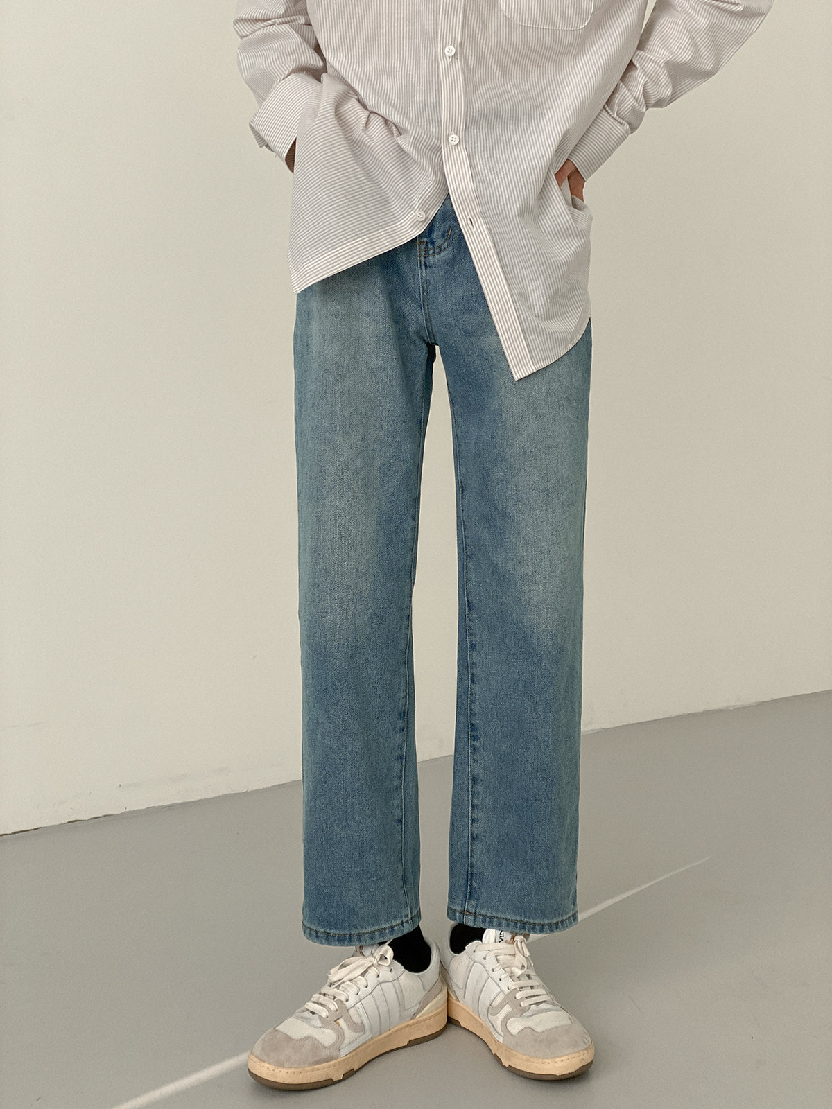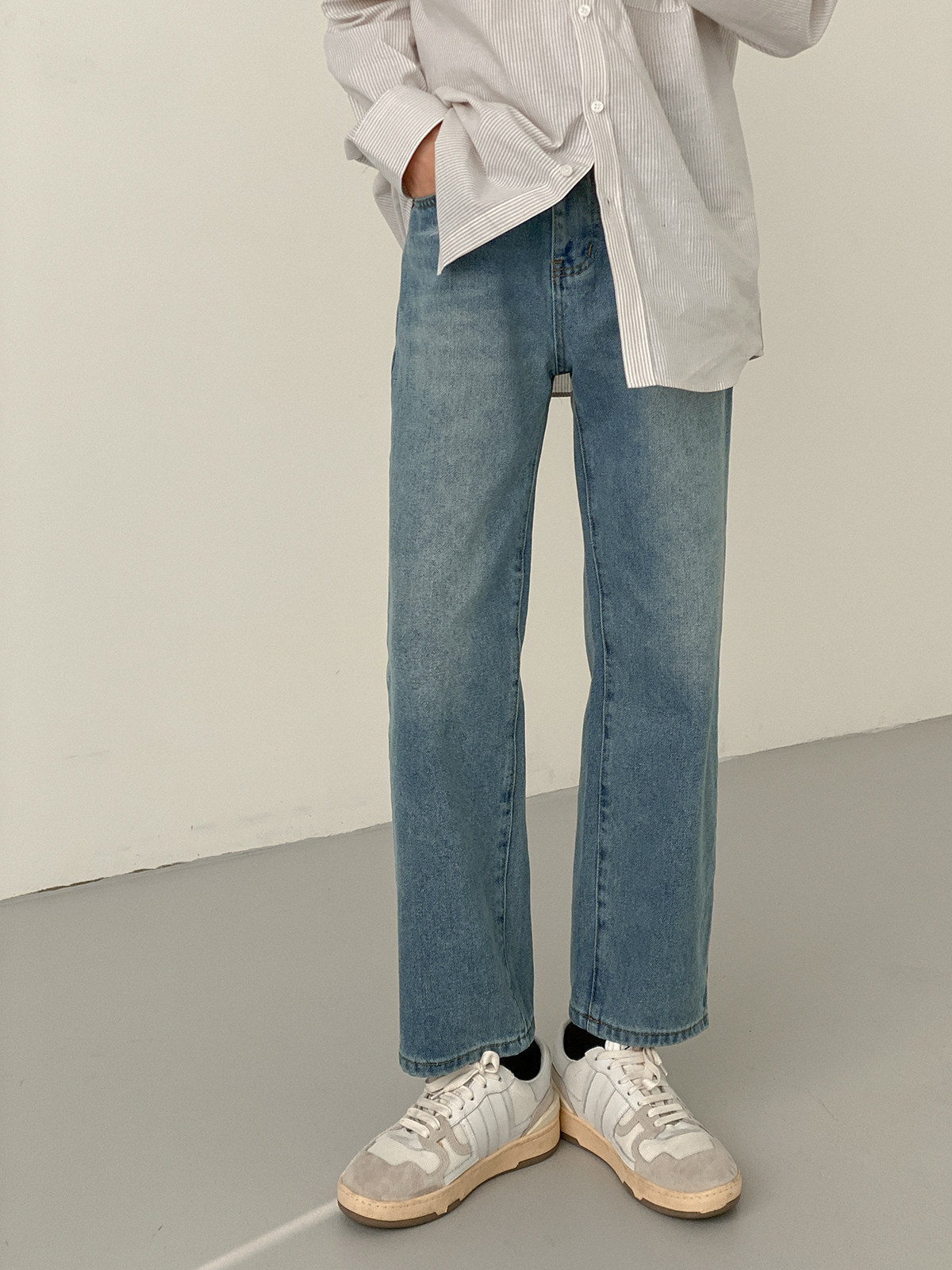 Ретро джинсы, демисезонные повседневные брюки для отдыха, трендовые штаны, в корейском стиле, свободный прямой крой