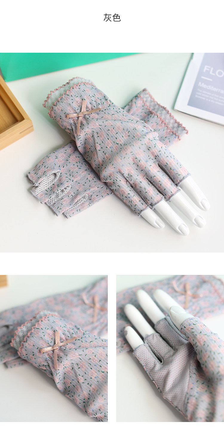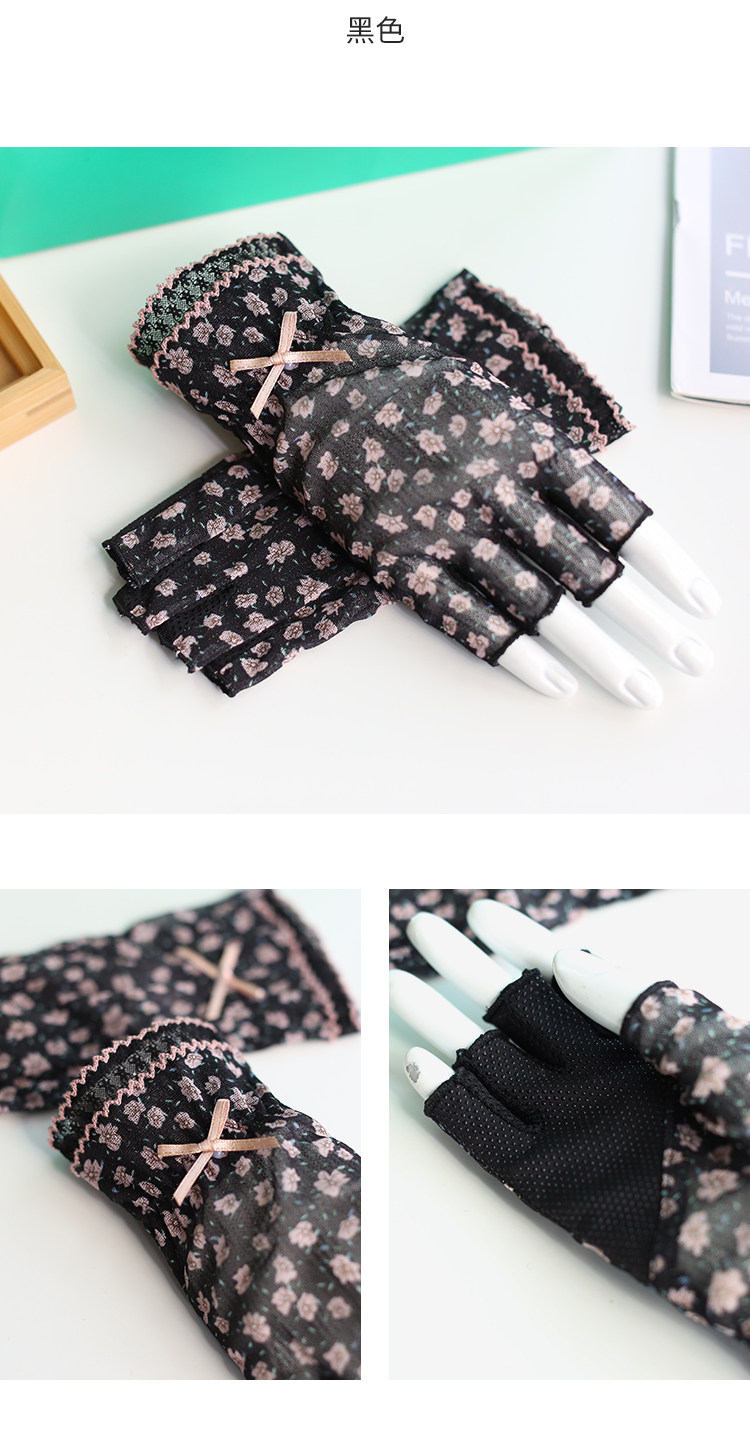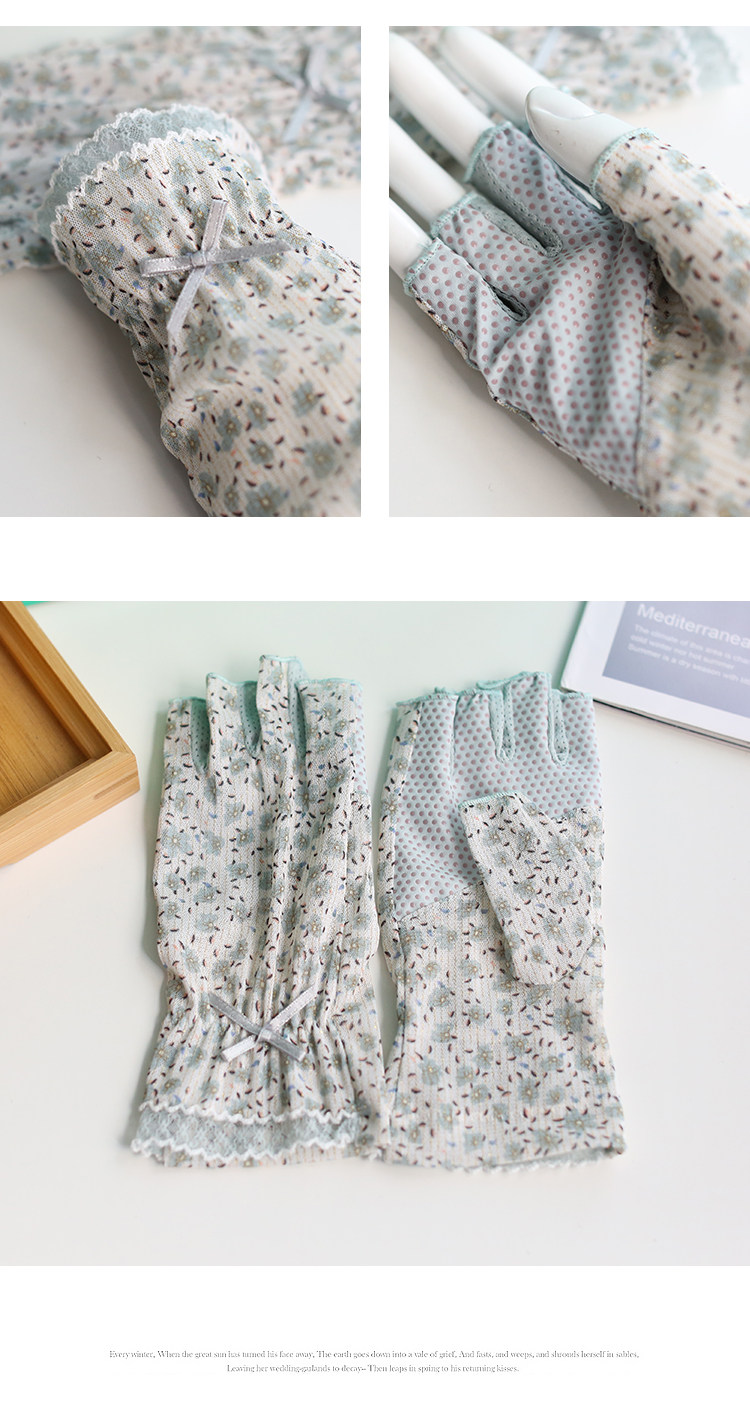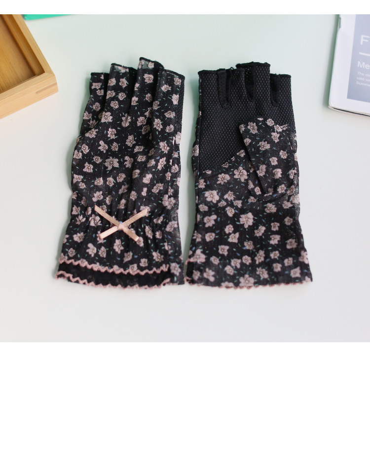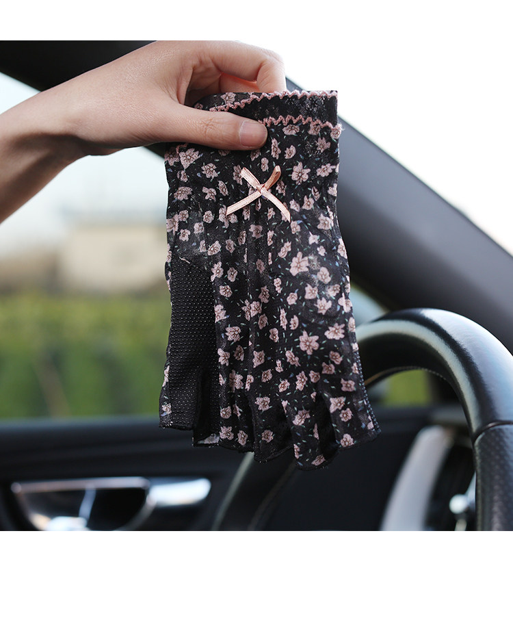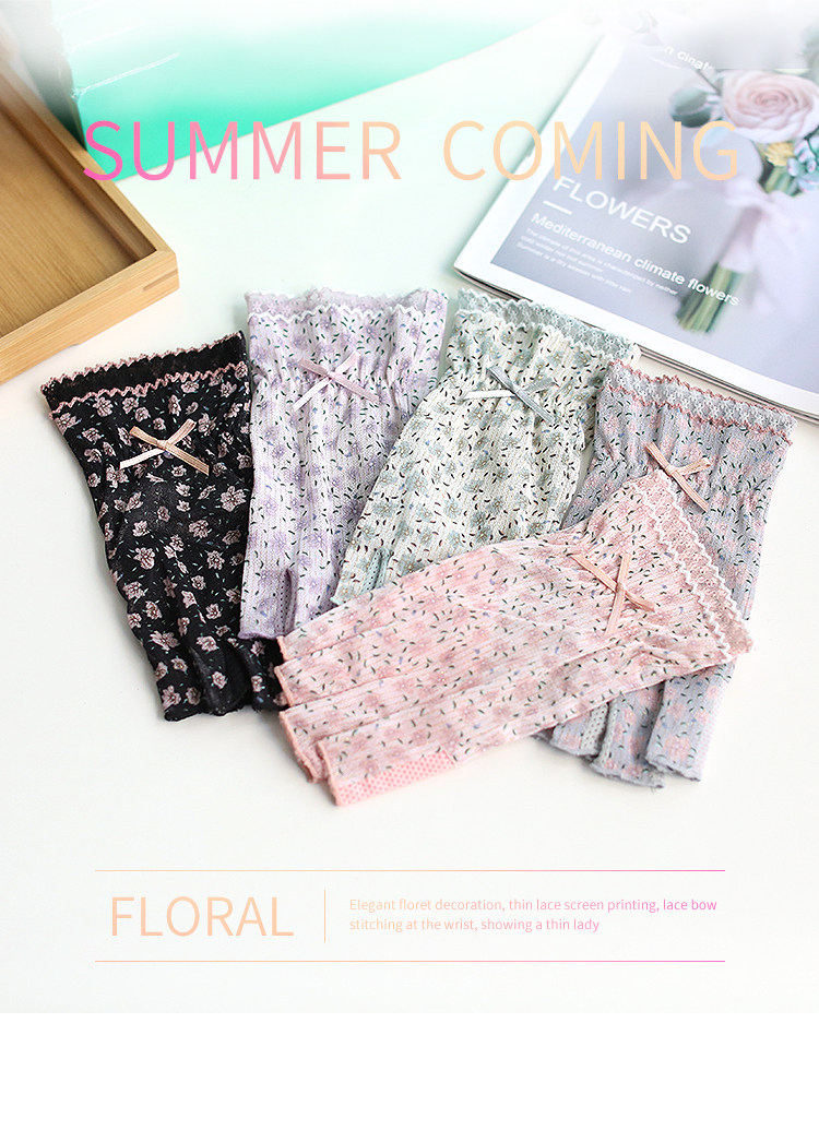 Модные эластичные тонкие летние нескользящие перчатки, цветочный принт, без пальцев