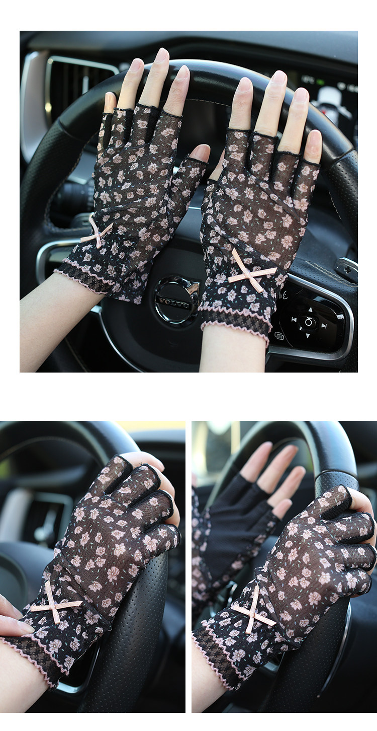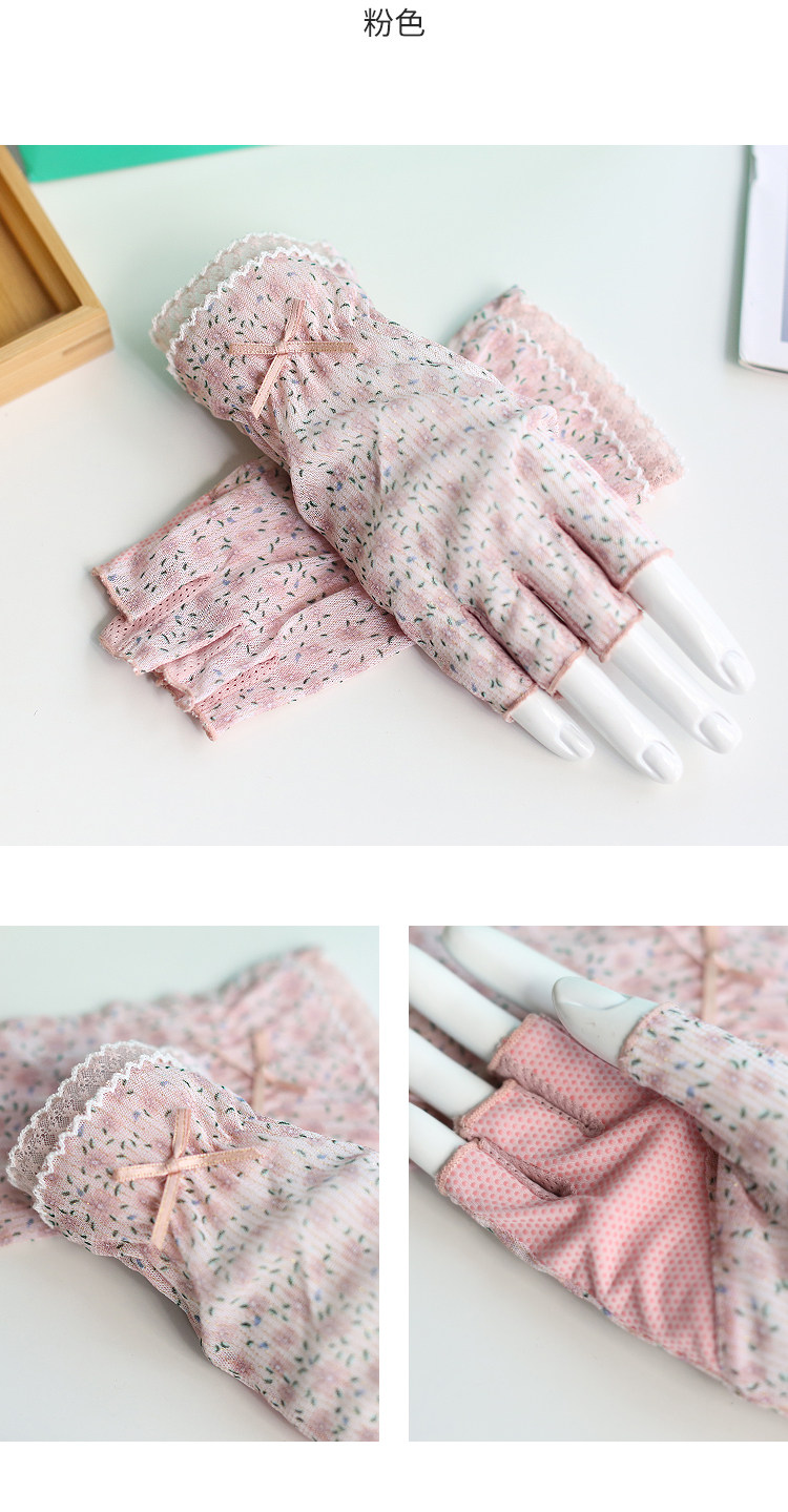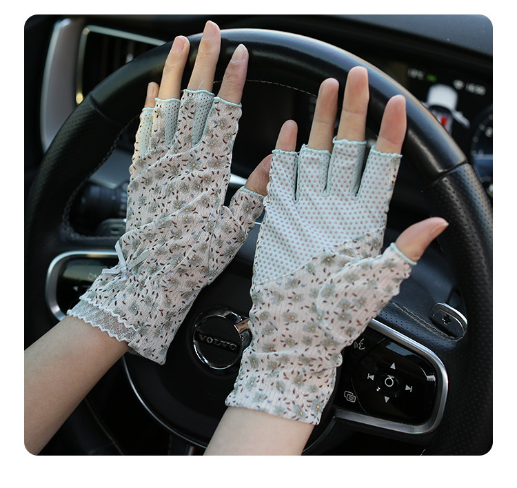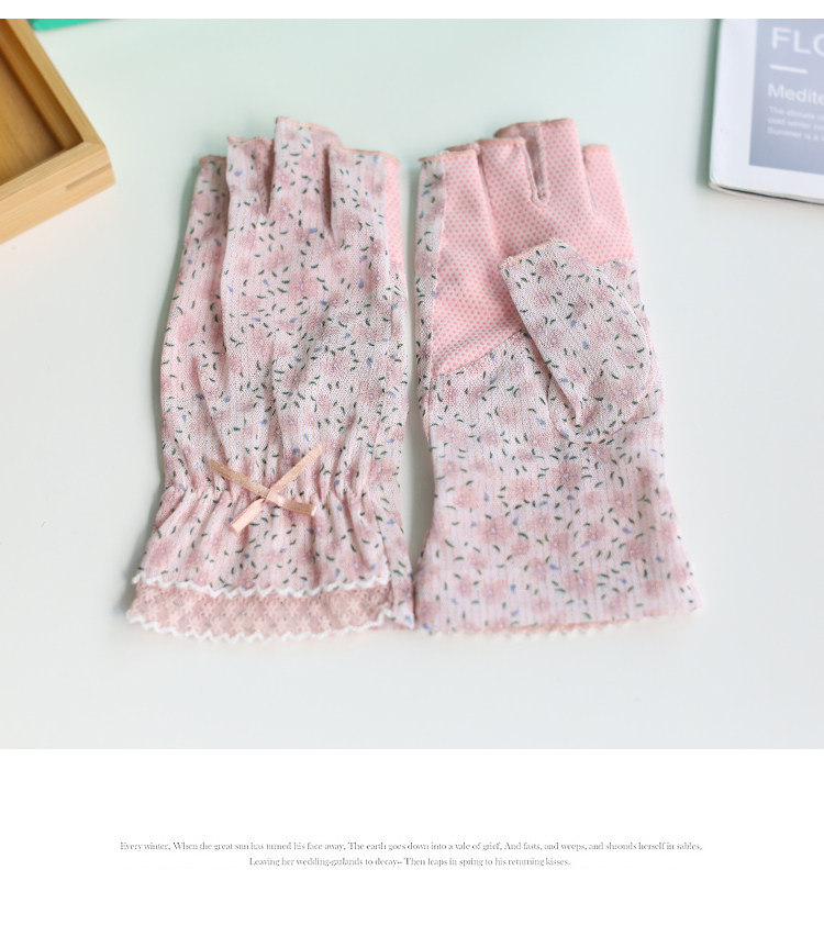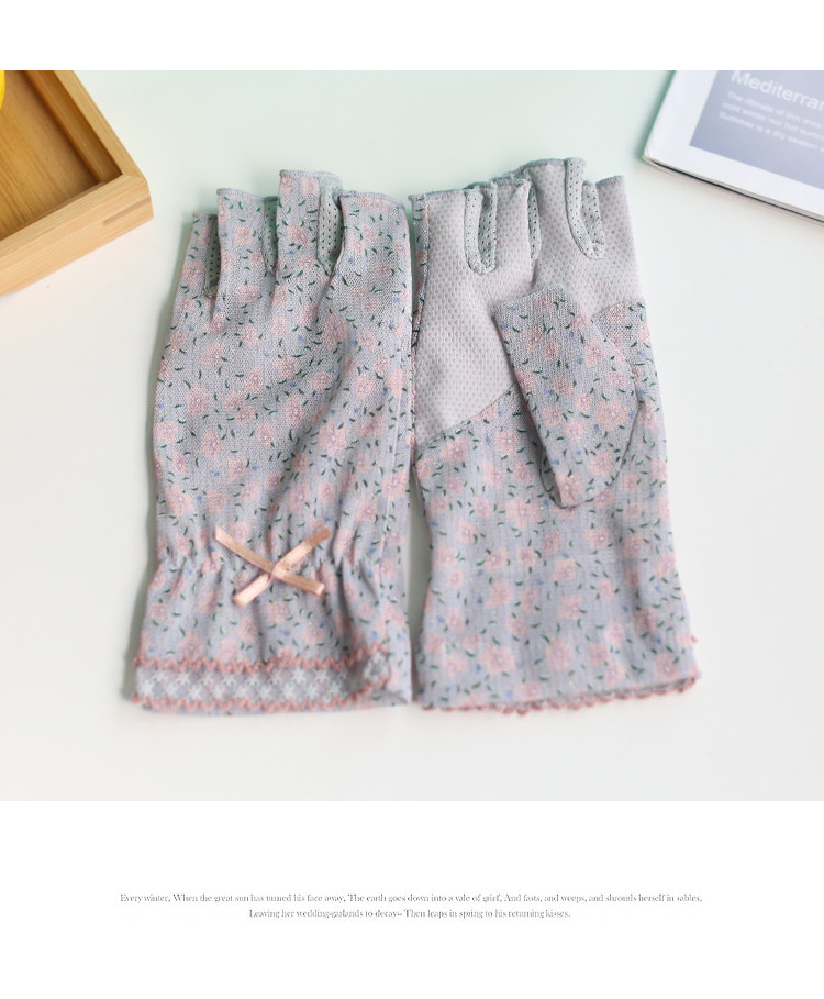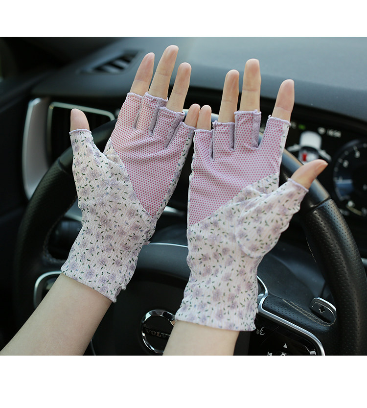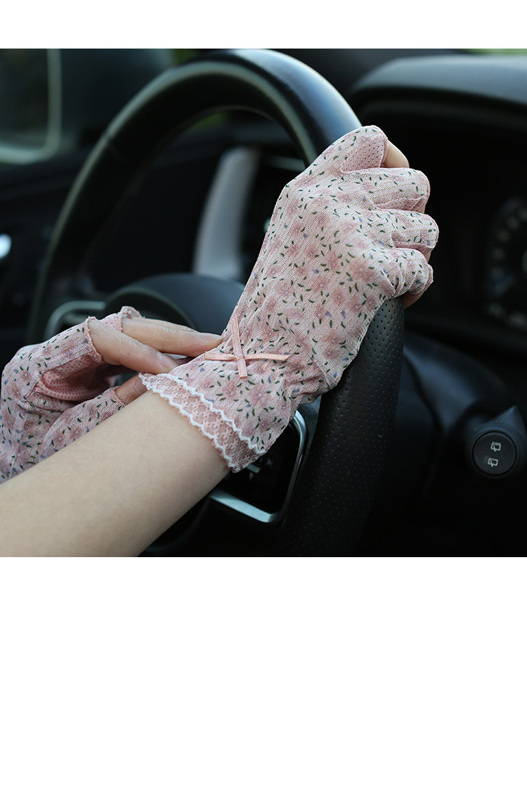 Модные эластичные тонкие летние нескользящие перчатки, цветочный принт, без пальцев