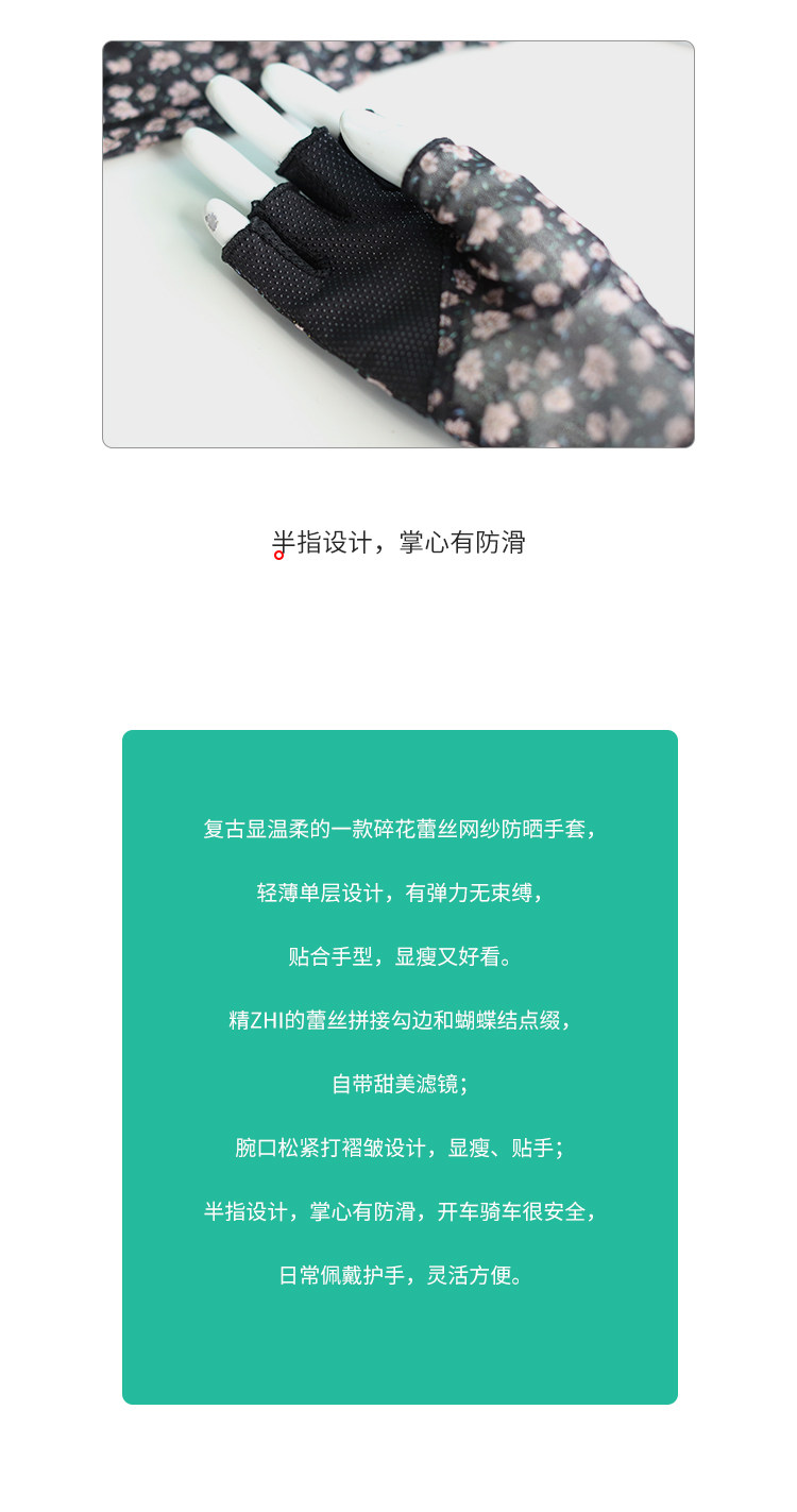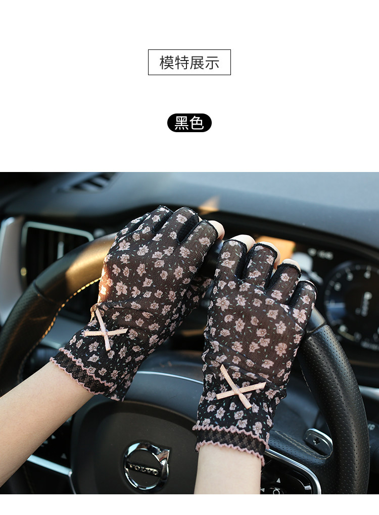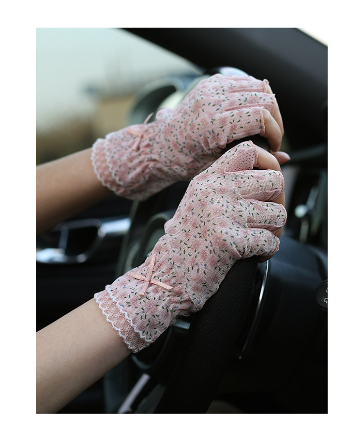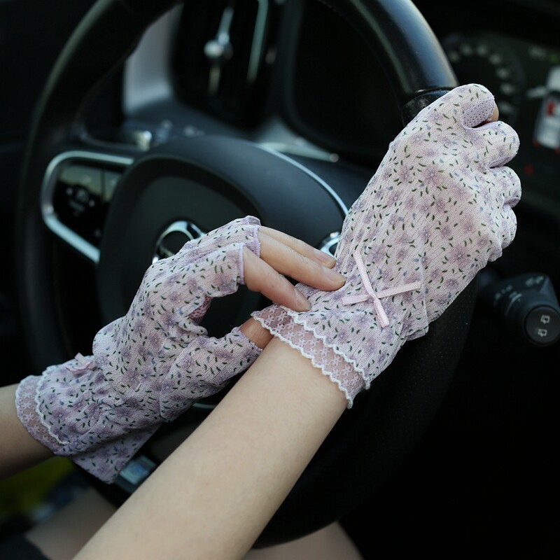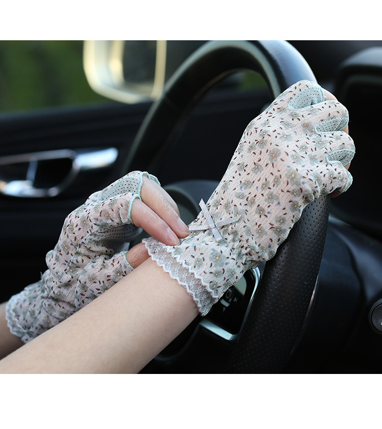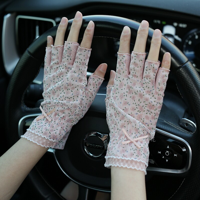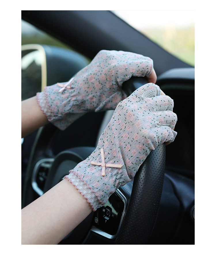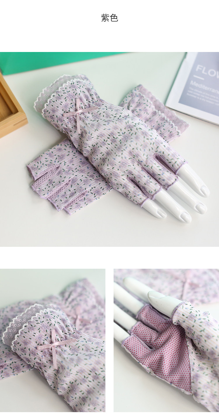 Модные эластичные тонкие летние нескользящие перчатки, цветочный принт, без пальцев