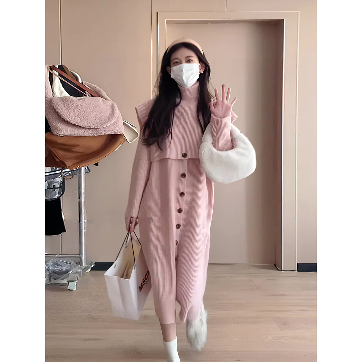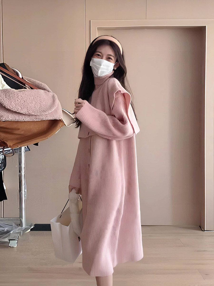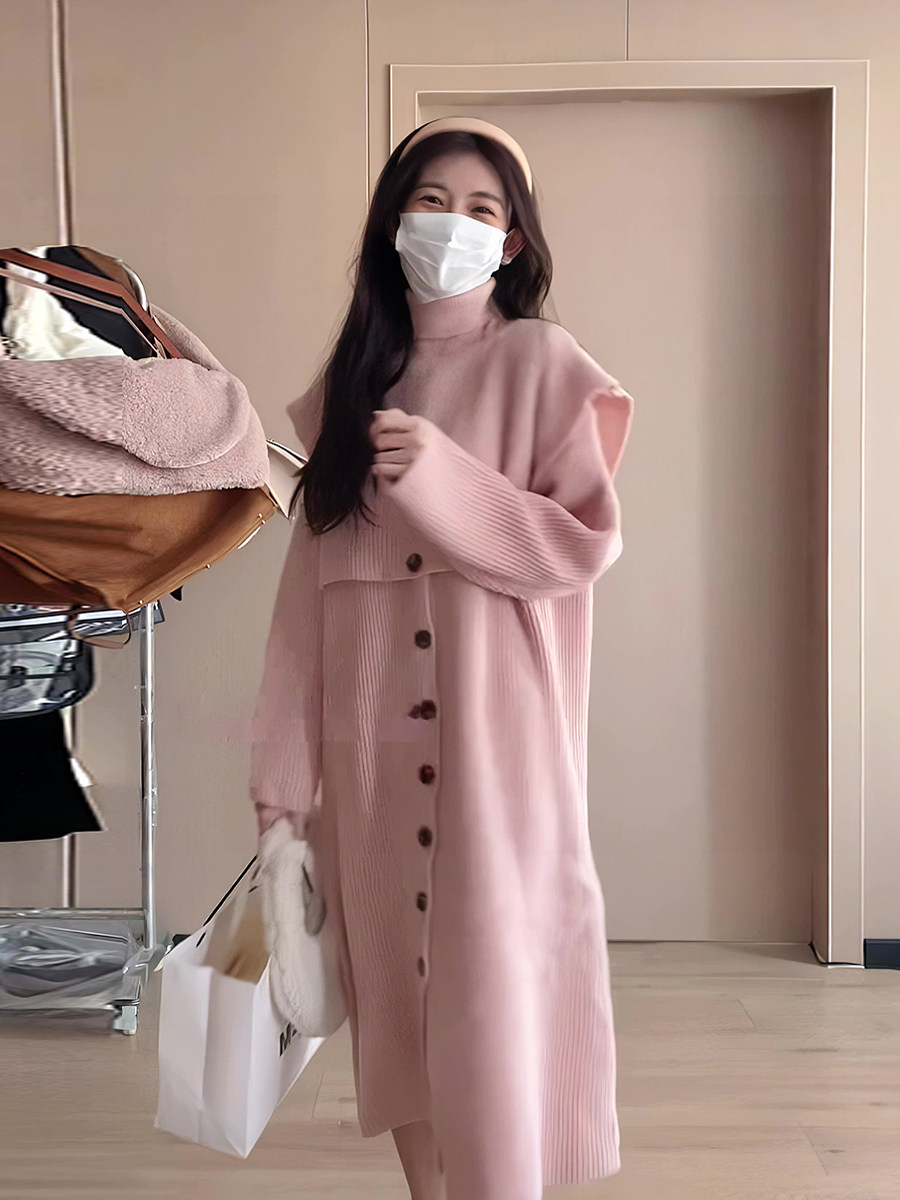 Длинный свитер, комплект, весенняя накидка с круглым воротником, платье, оверсайз, тренд сезона