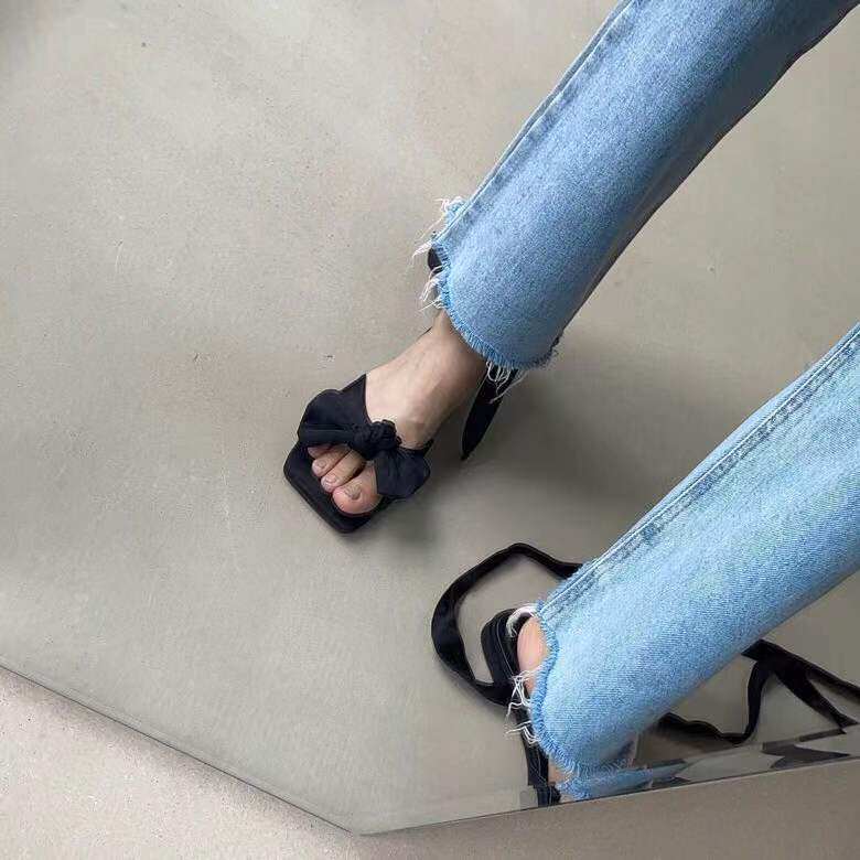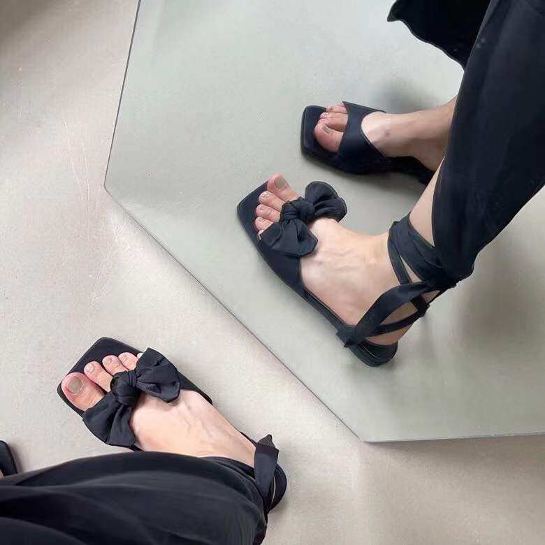 Сексуальная ретро обувь, летний ремень на каблуке с бантиком
