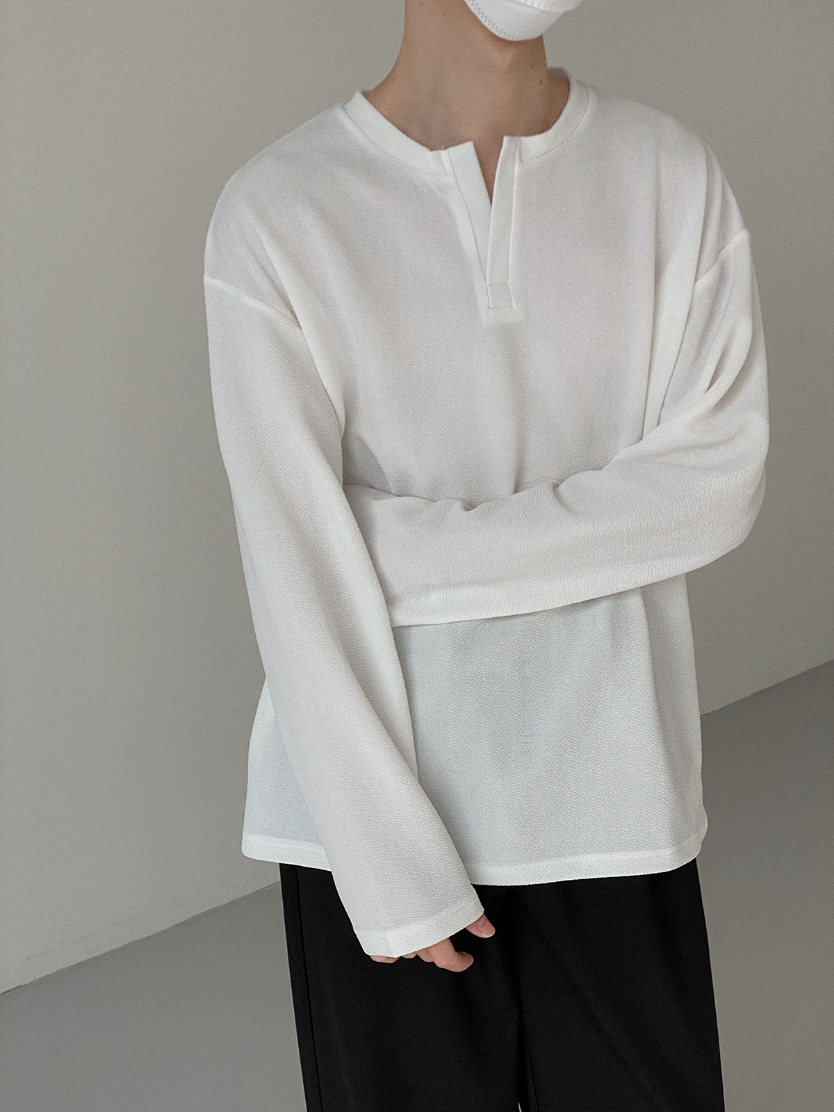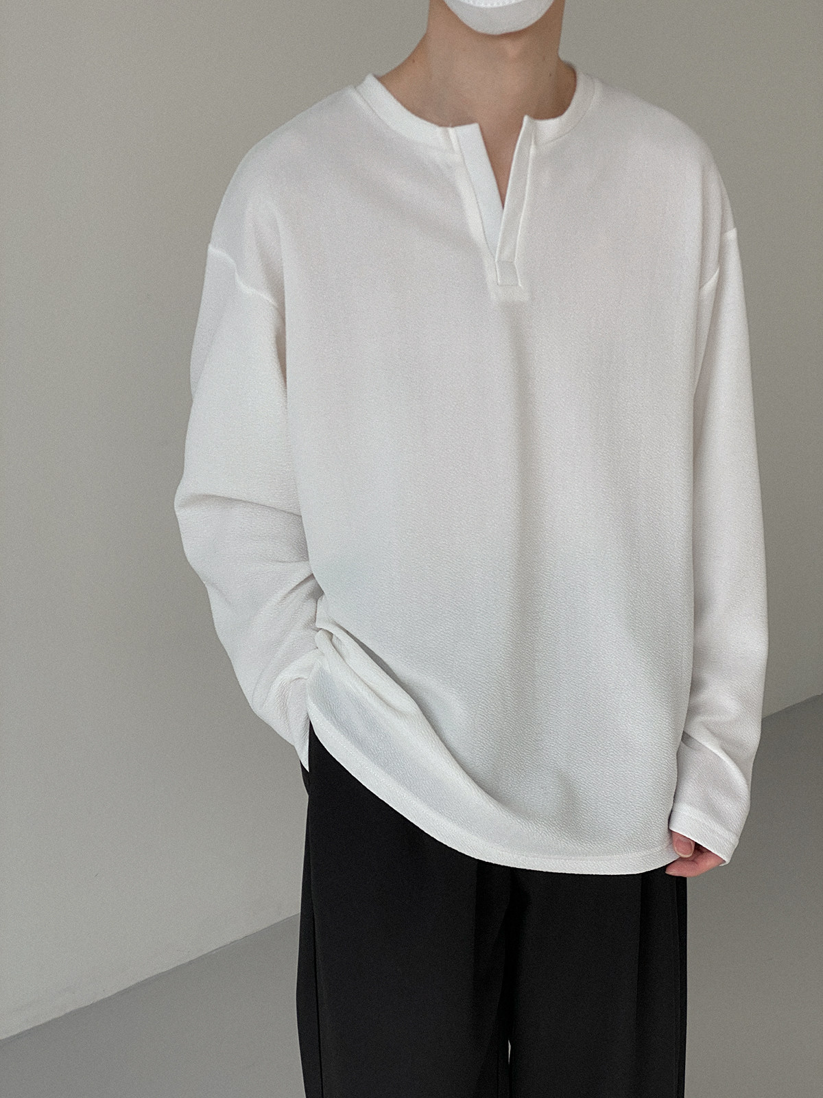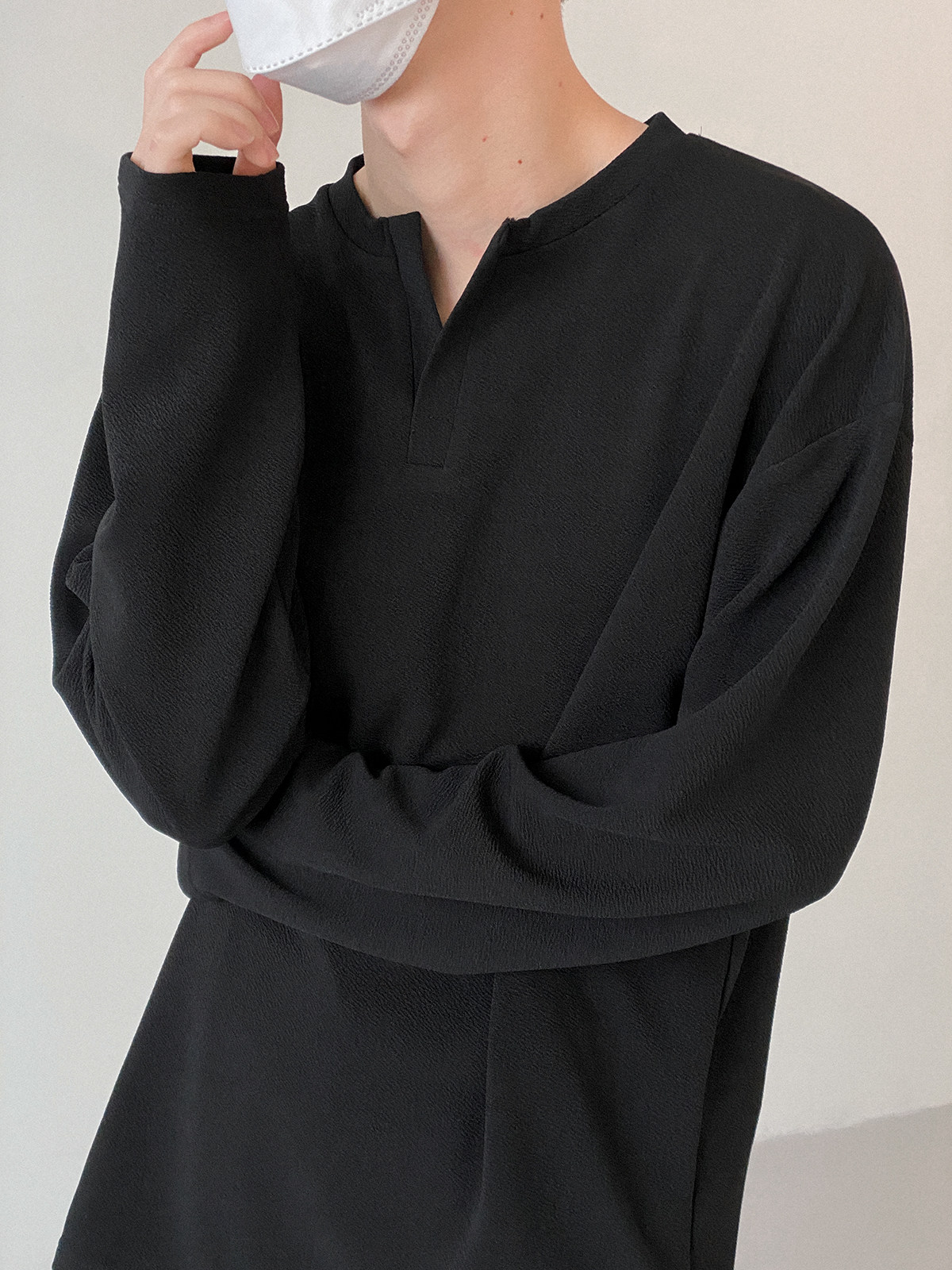 Футболка, базовый приятный телу трендовый дизайнерский брендовый лонгслив, изысканный стиль, свободный крой, высокий воротник, тренд сезона