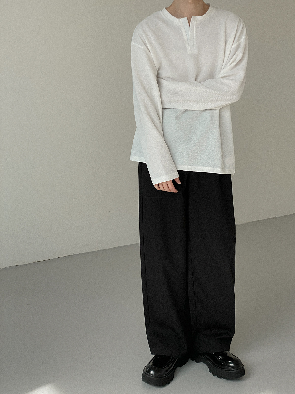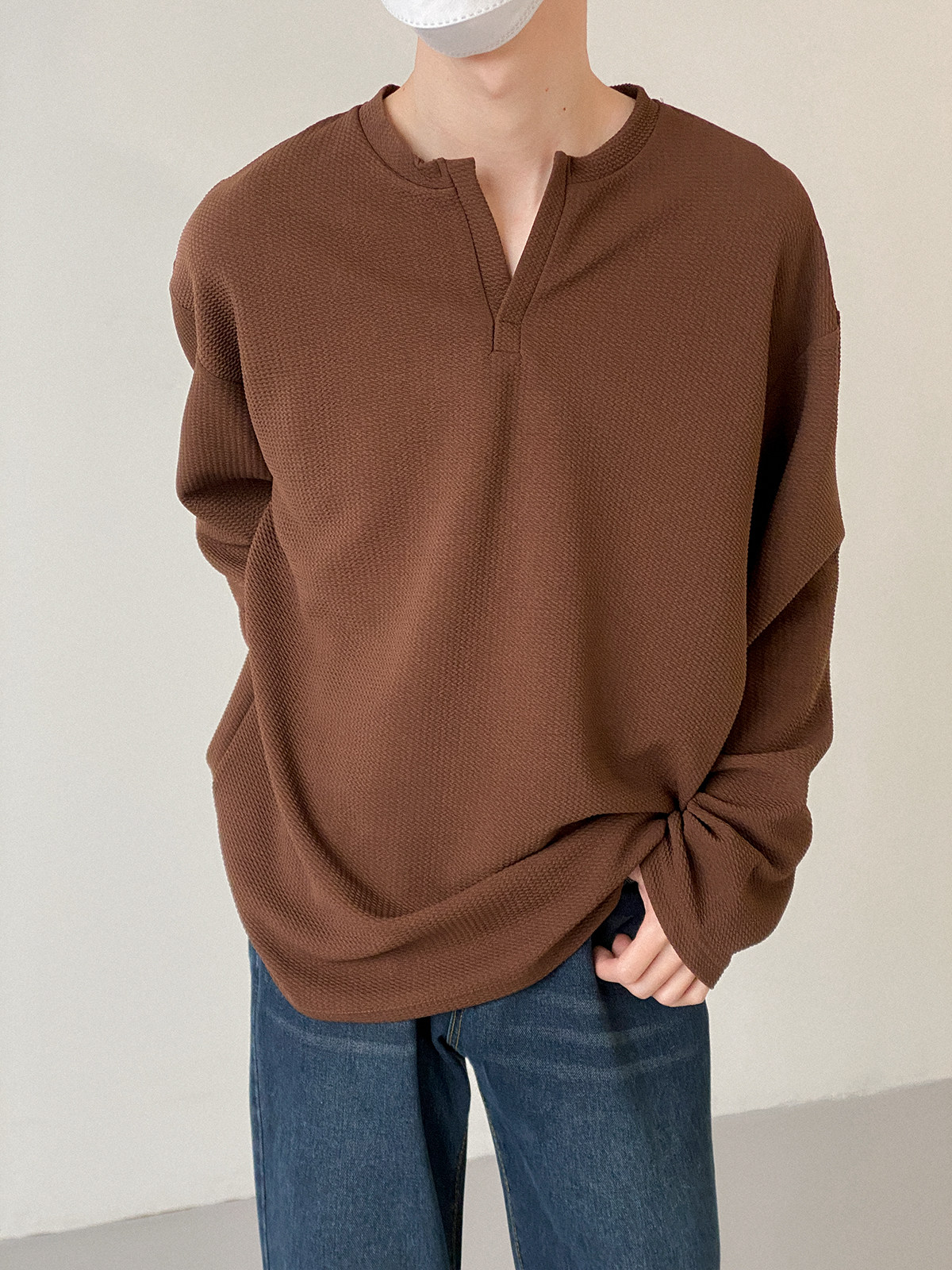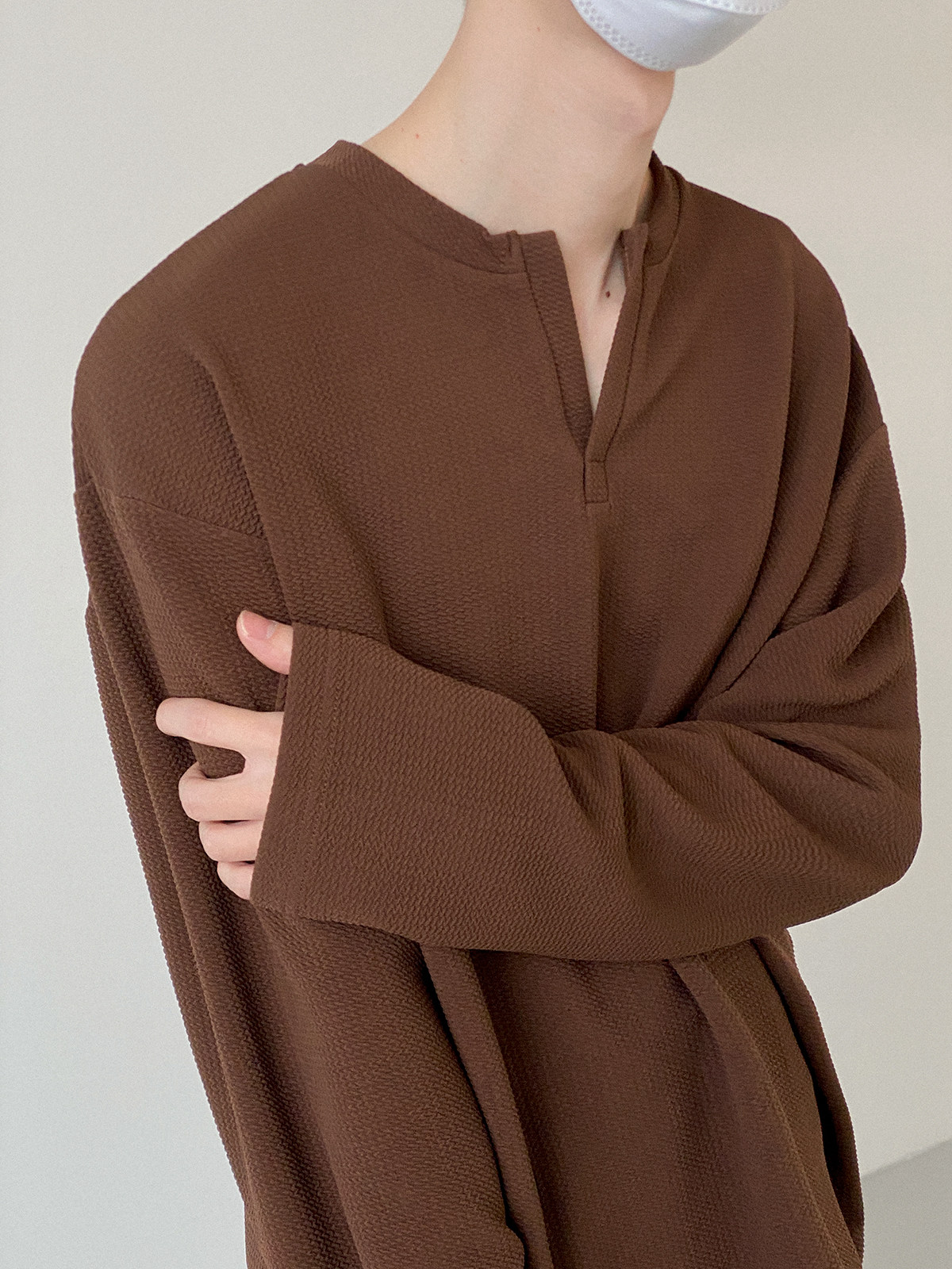 Футболка, базовый приятный телу трендовый дизайнерский брендовый лонгслив, изысканный стиль, свободный крой, высокий воротник, тренд сезона