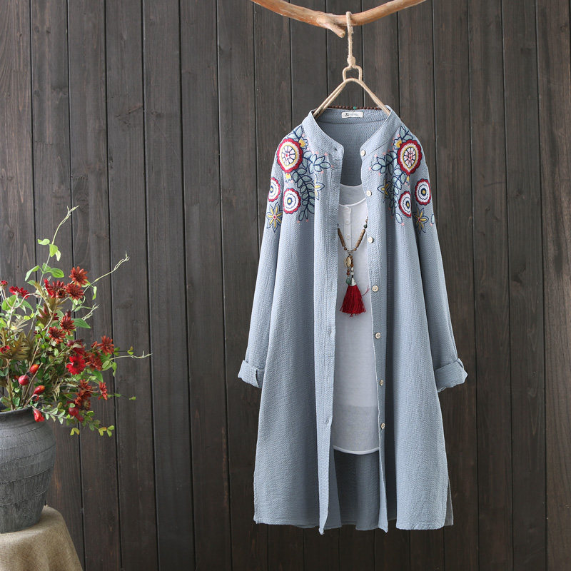 Осенняя длинная рубашка, тонкий кардиган, с вышивкой, китайский стиль