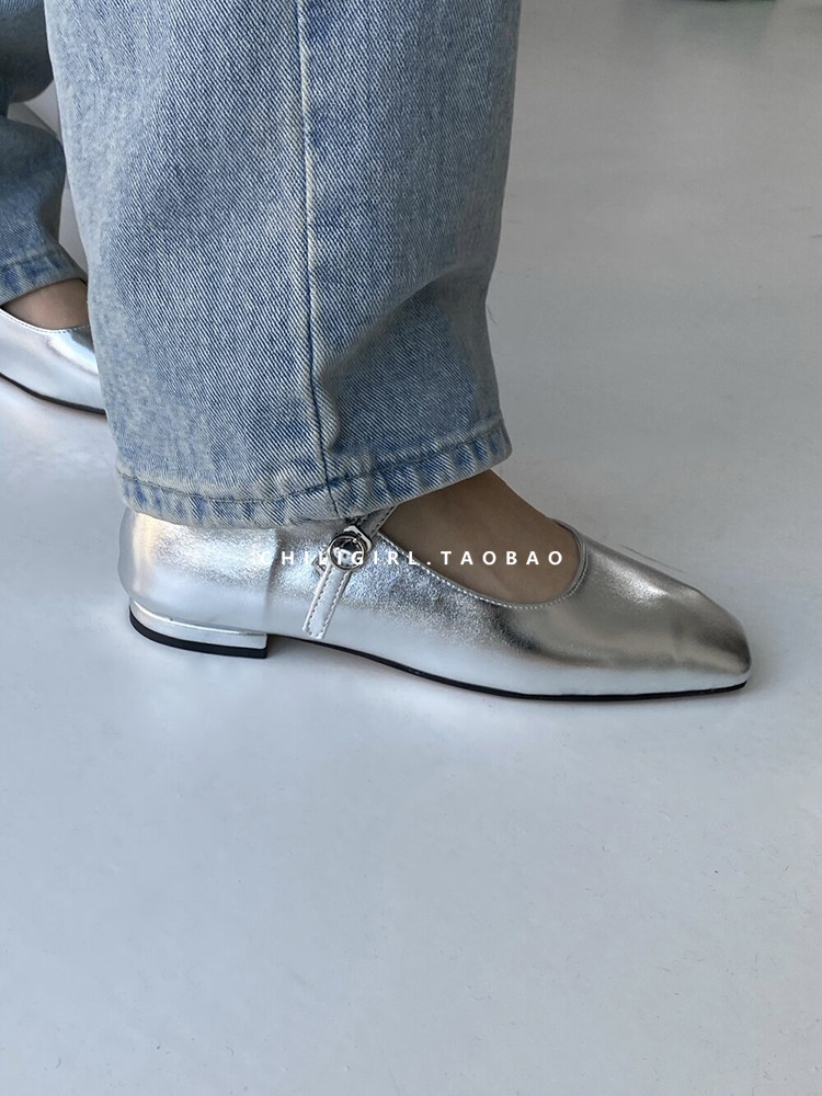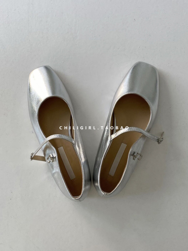 Chiligirl East Gate 2023 Весна и летняя неглубокая пряжка рта Мэри Чжэнь Обувь универсальна и все серебряные одиночные туфли