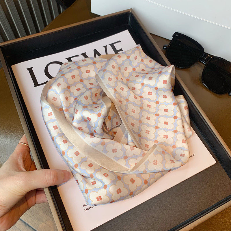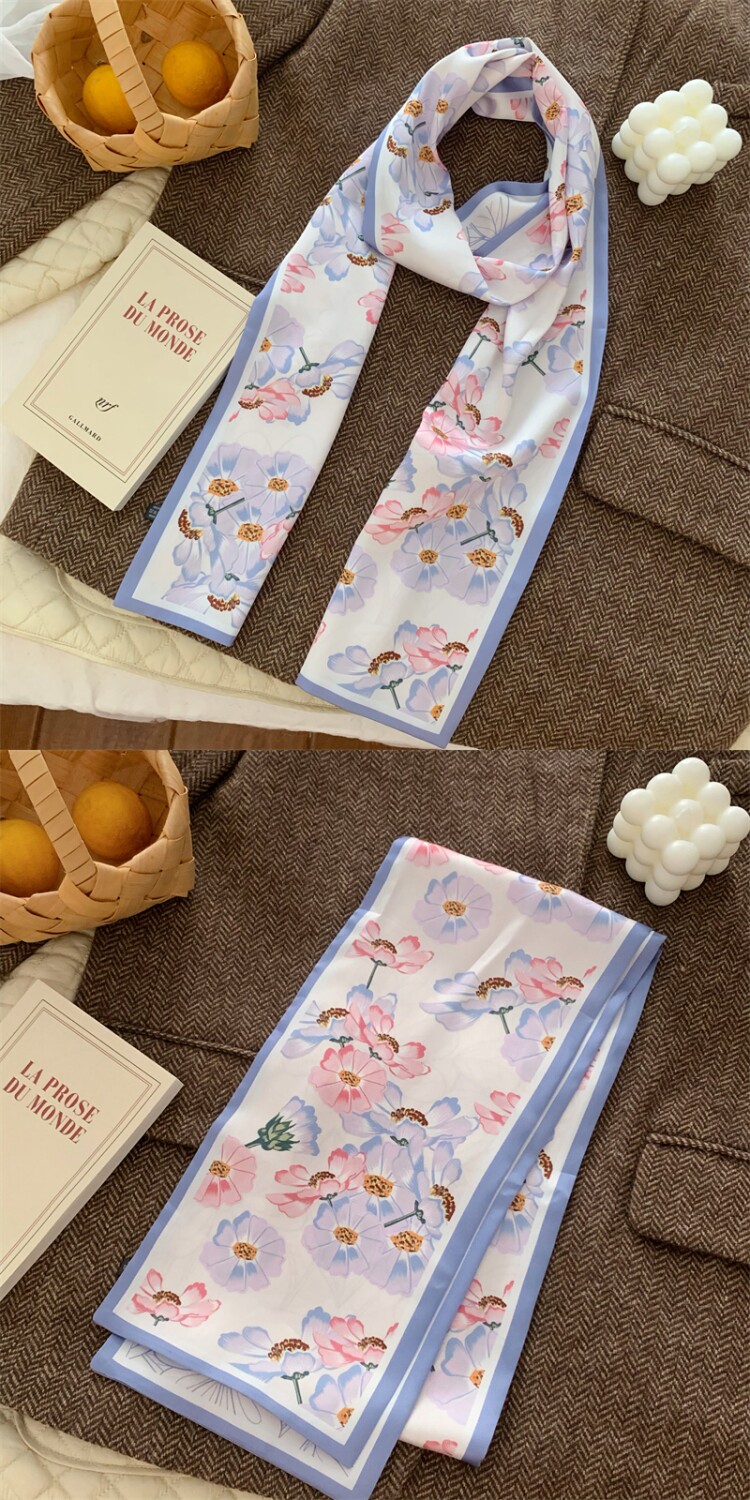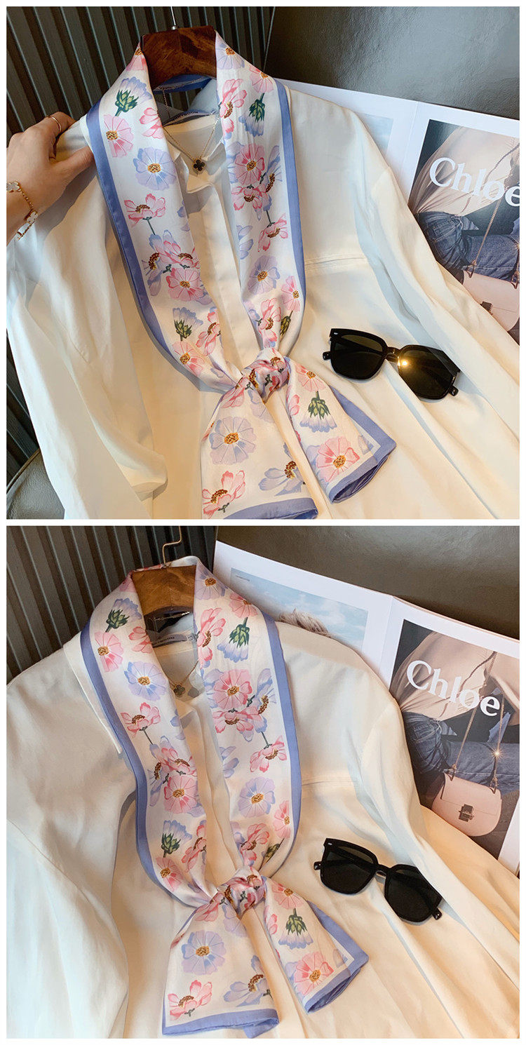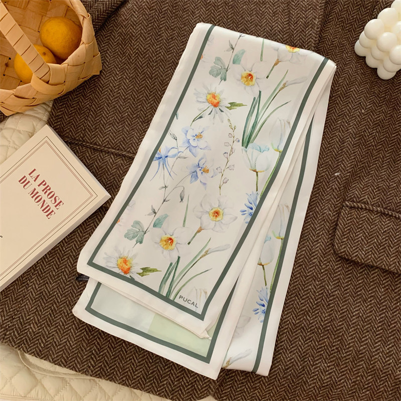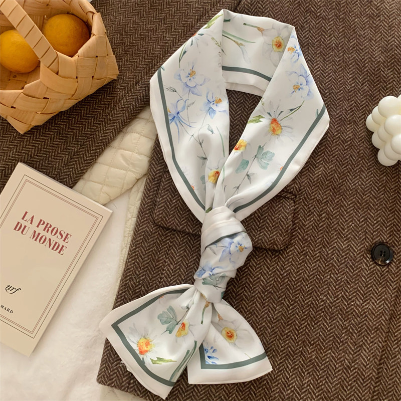 Свежий весенний универсальный шейный платок, шелковый шарф, сумка, в цветочек, Южная Корея