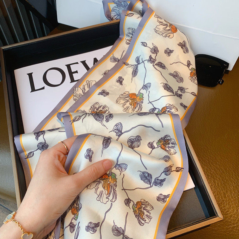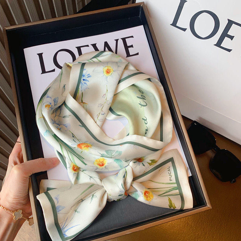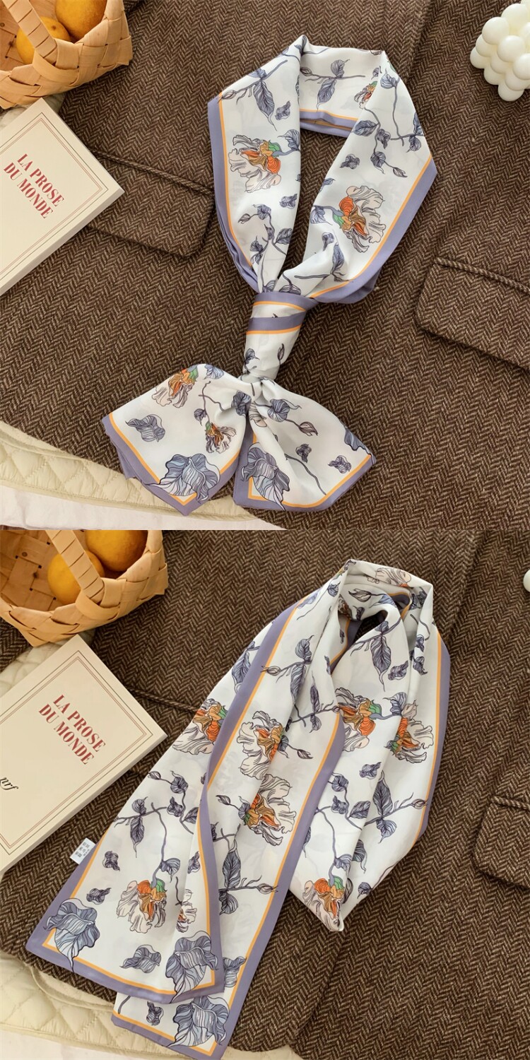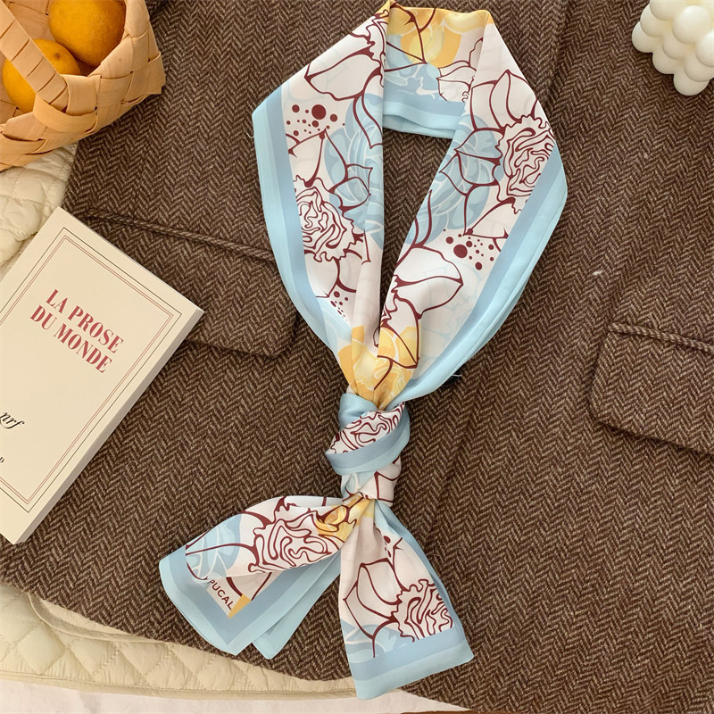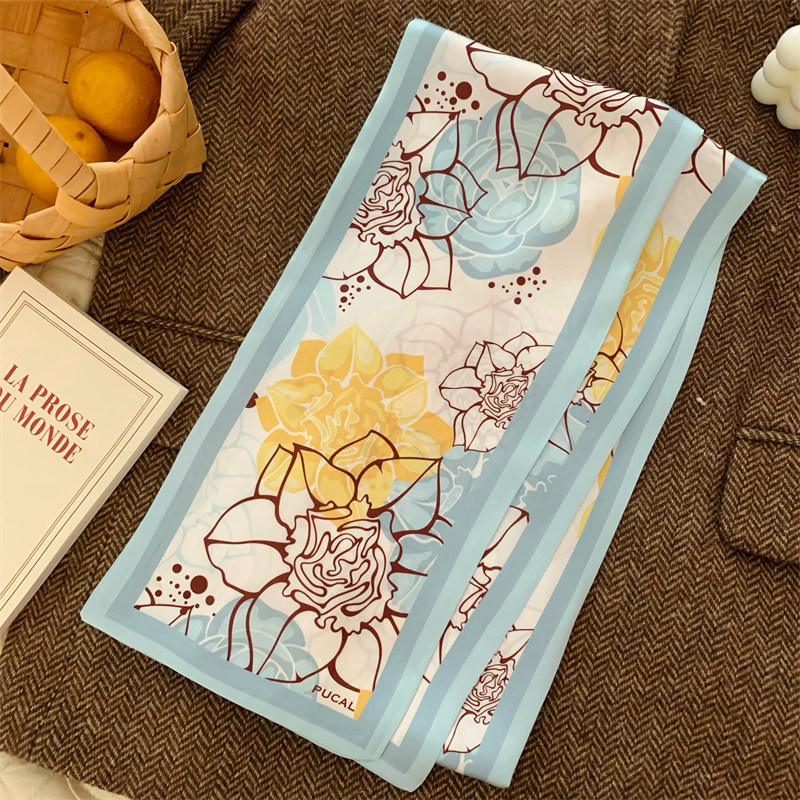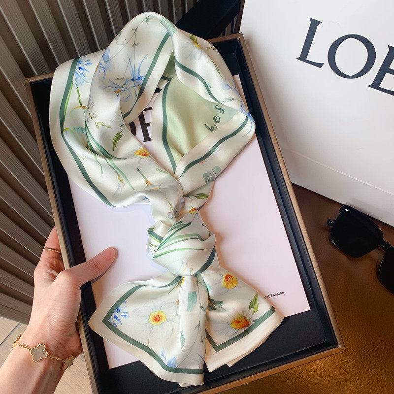 Свежий весенний универсальный шейный платок, шелковый шарф, сумка, в цветочек, Южная Корея