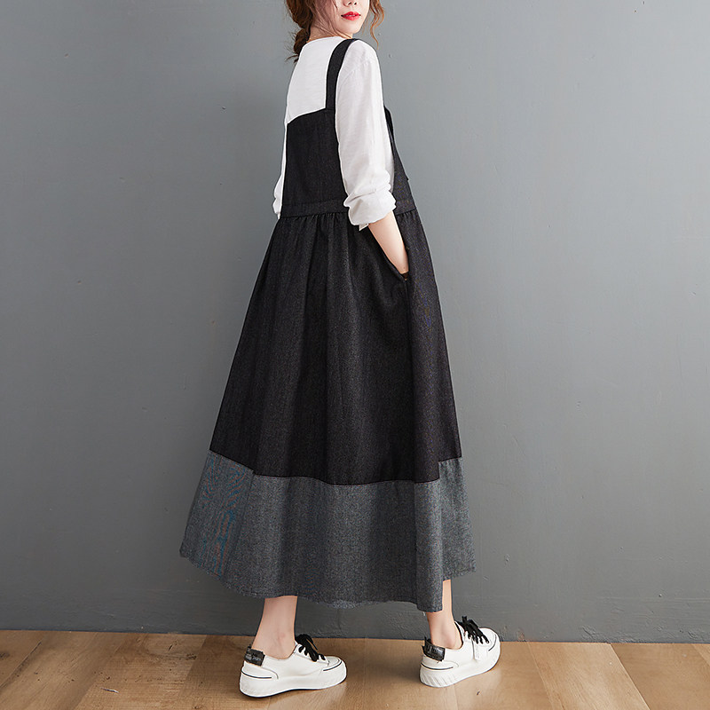 Милые подтяжки, весеннее ретро платье, в корейском стиле, большой размер, по фигуре