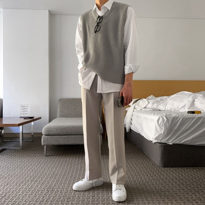 Весенние трендовые брендовые штаны, изысканный стиль, свободный прямой крой, в корейском стиле