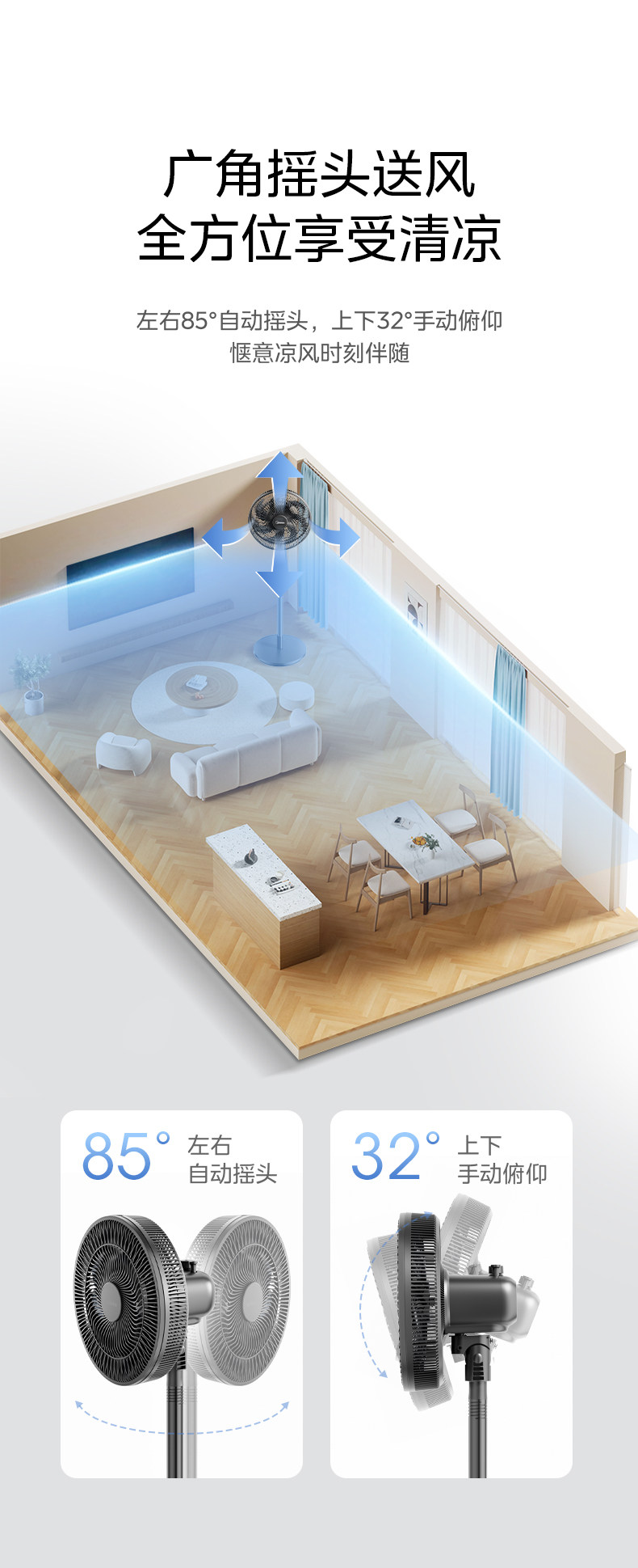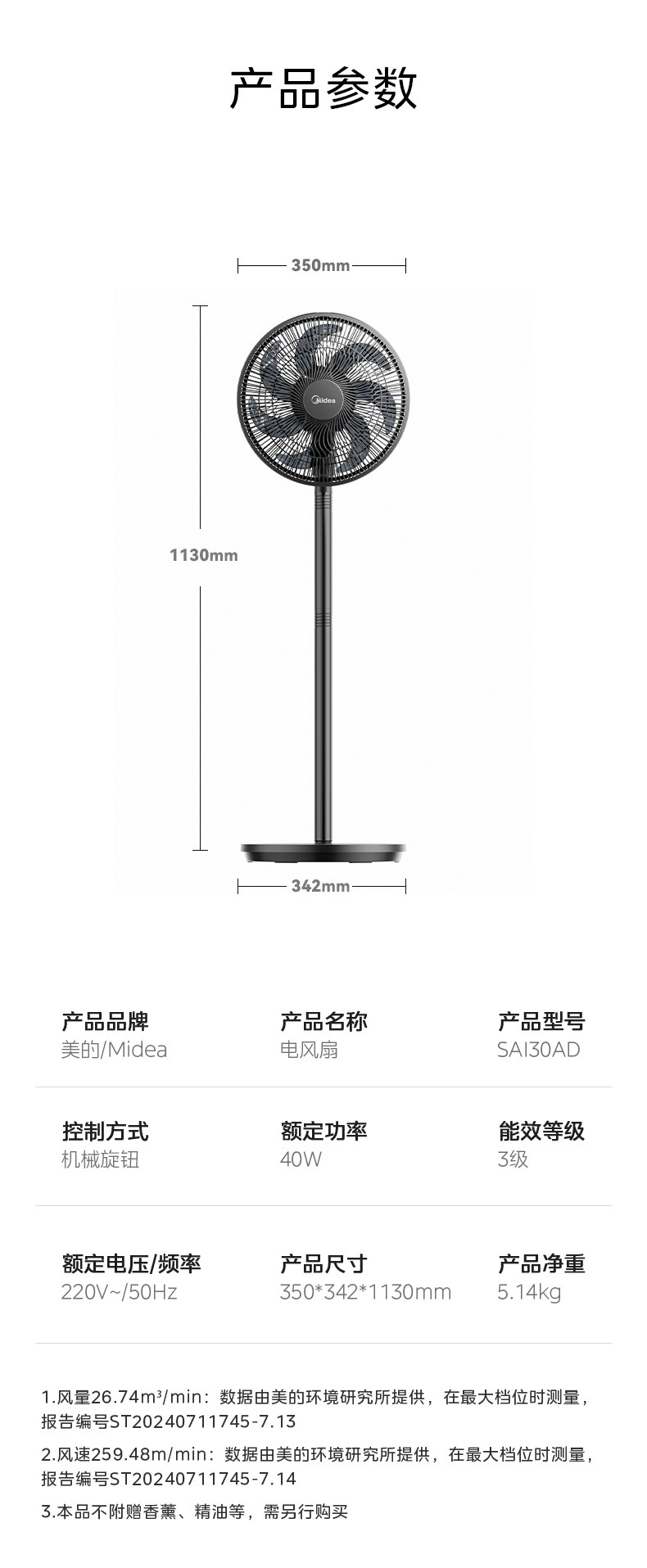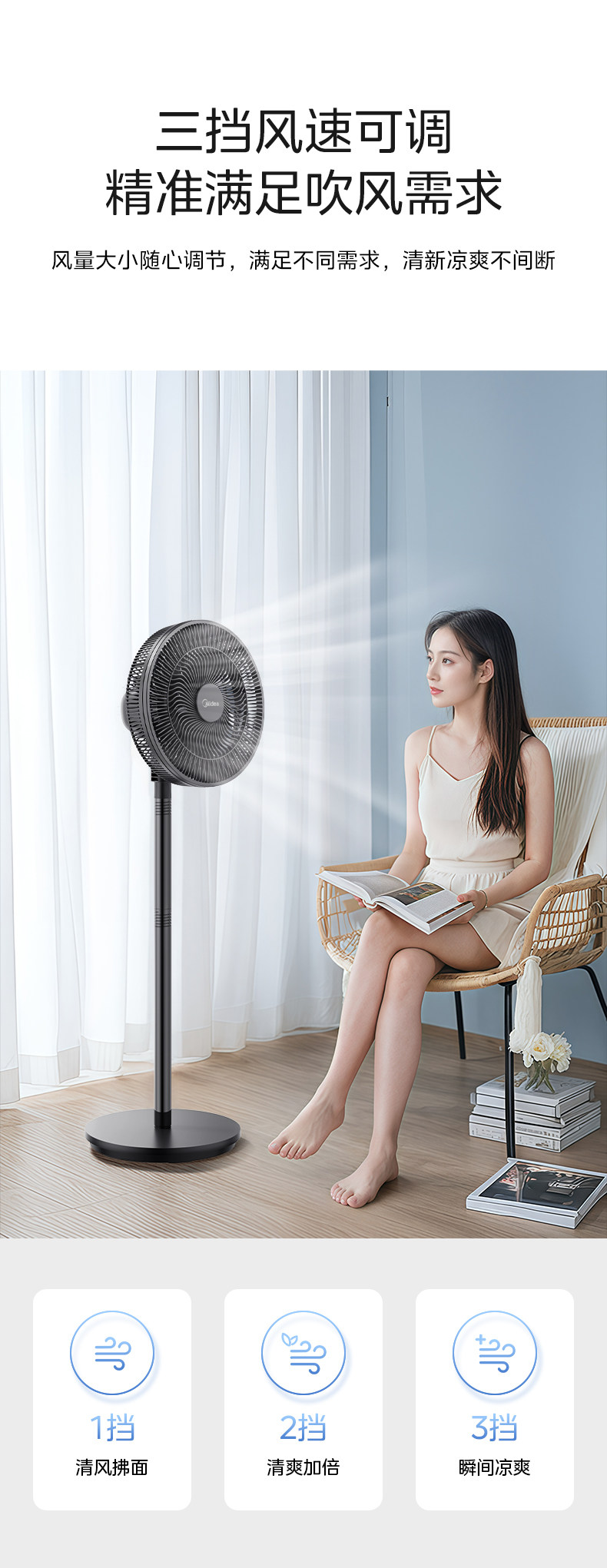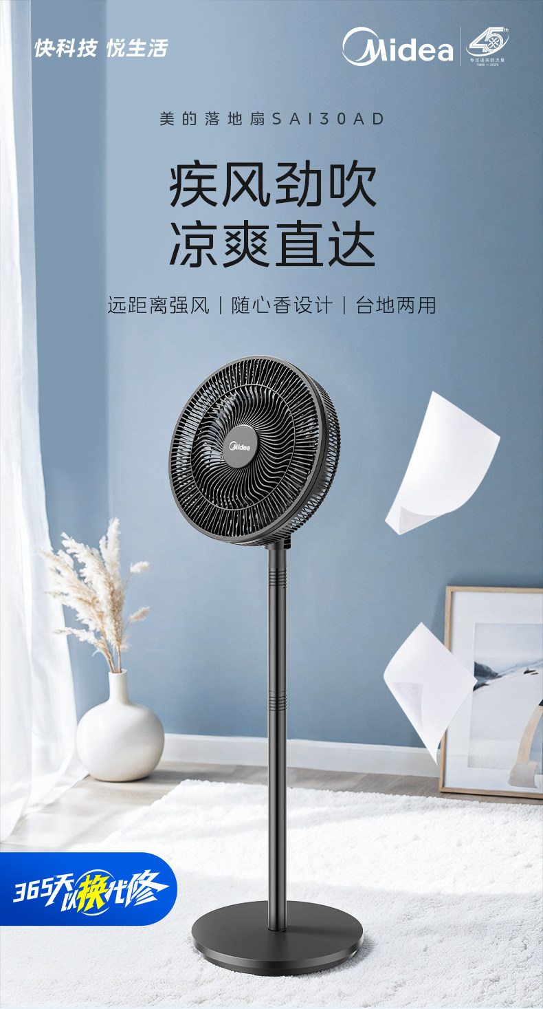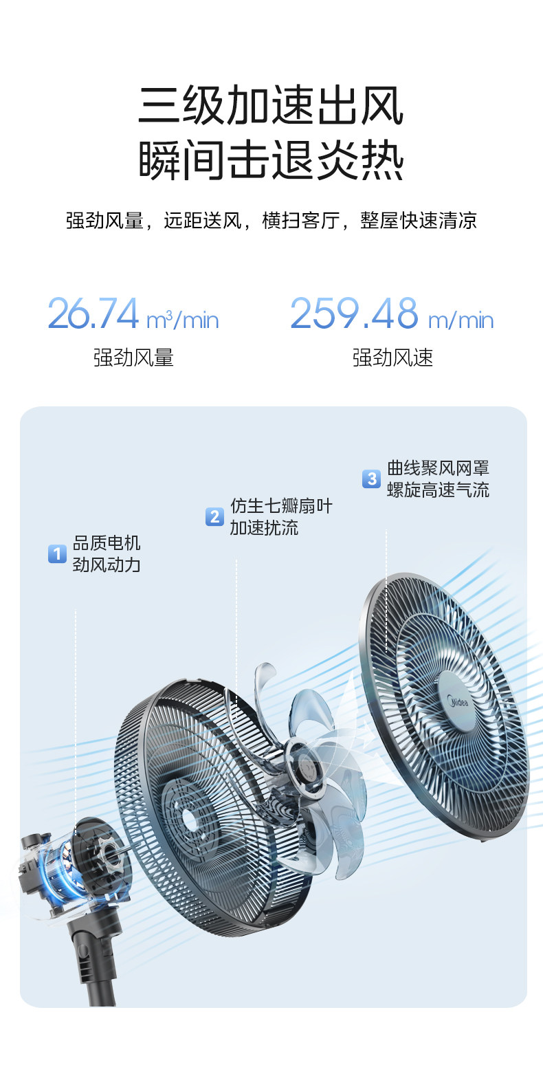 Midea Electric Fean 7 -Leaf -Type Большой объем воздуха.