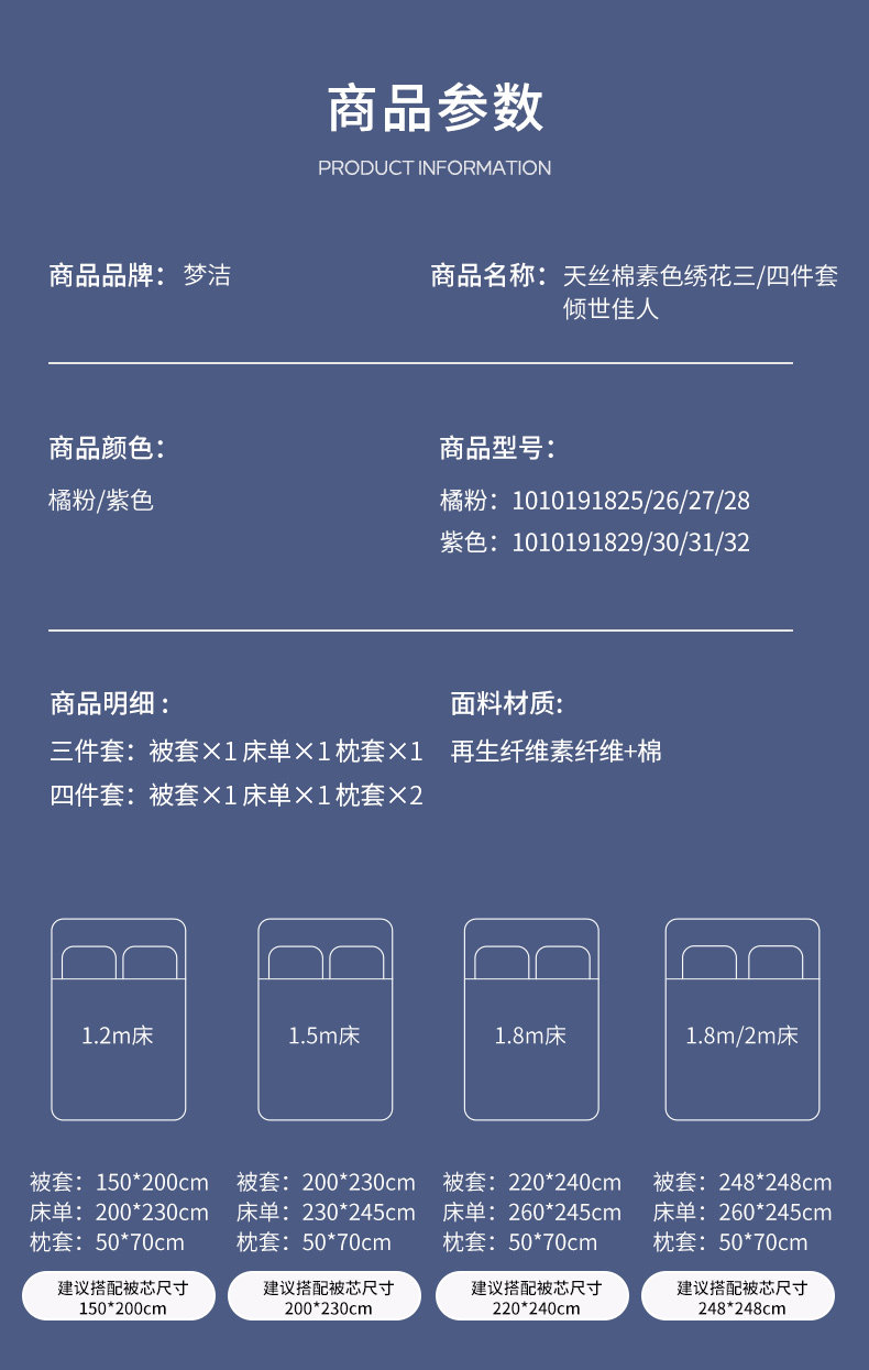 | Применимый размер кровати: | 1,2 м (150 × 200) костюм из трех, Подходит для кровати шириной 1,5 м, 200×230 см., Подходит для кровати длиной 1,8 м, 220×240 см., Подходит для кровати длиной 1,8 м, 248×248 см. |
