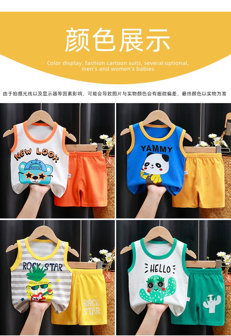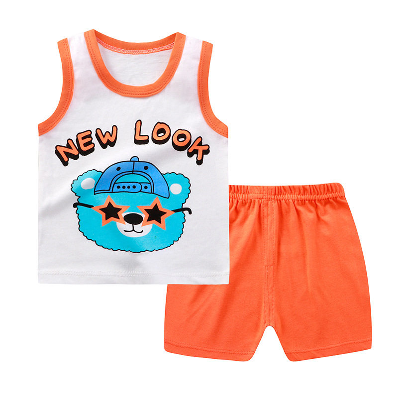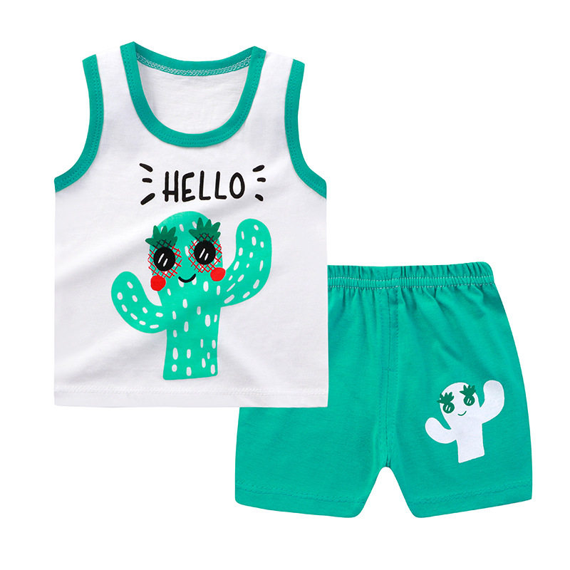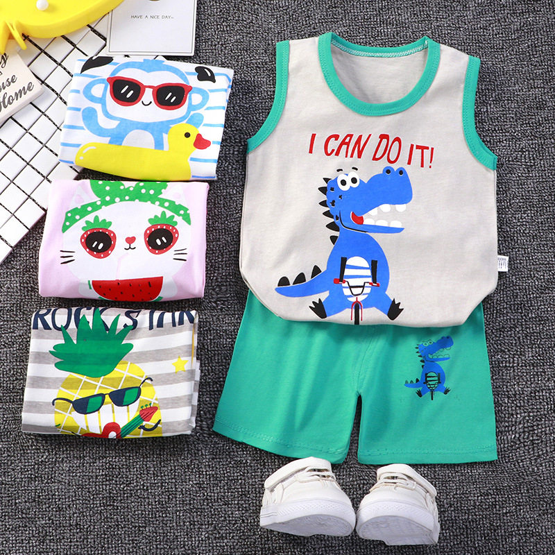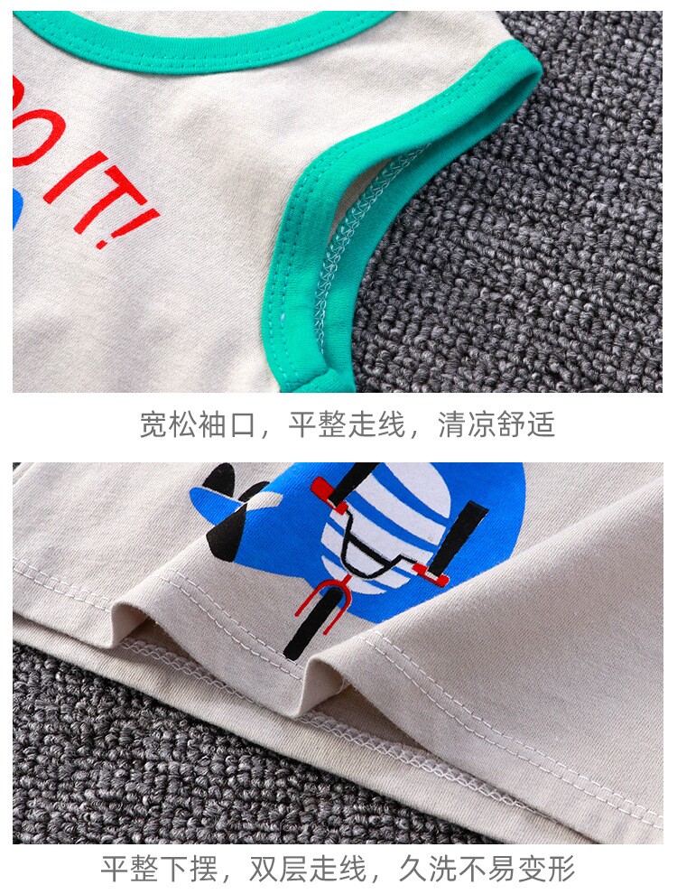 Детский жилет, летний хлопковый дышащий комплект для мальчиков, впитывает пот и запах, короткий рукав, в корейском стиле