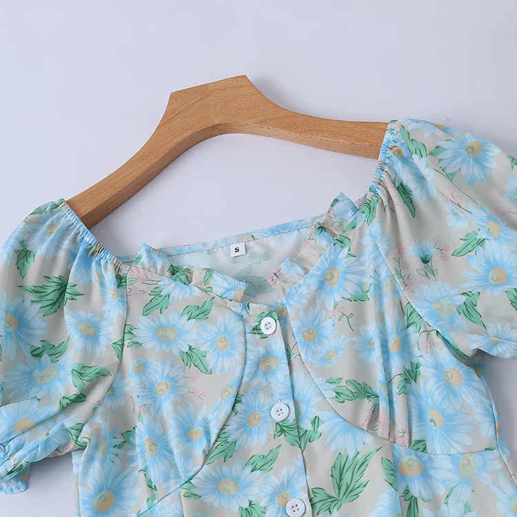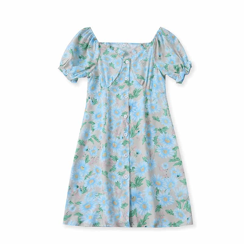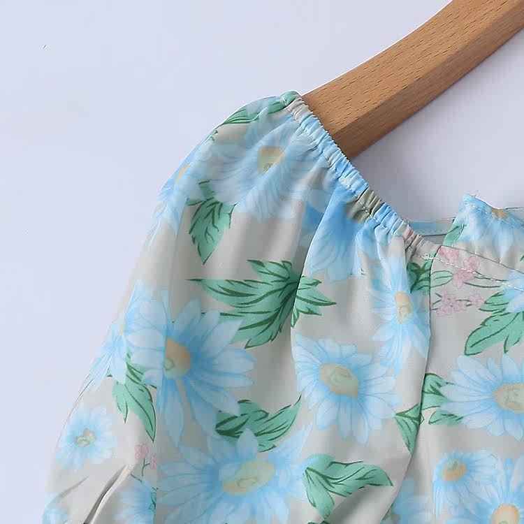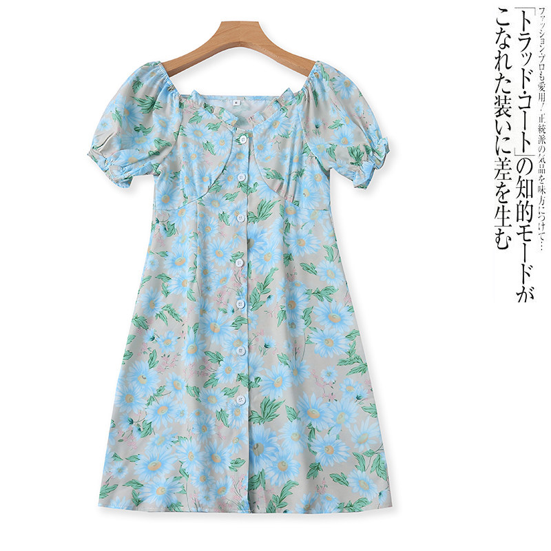 (Трансграничная торговля), летнее платье, свежая милая длинная юбка, короткий рукав, с рукавом, цветочный принт, средней длины