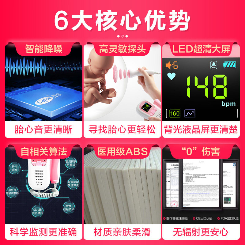 可孚 Медицинский прибор для мониторинга сердца плода для домашнего специального мониторинга инструментов Допплера Допплера прослушивание тестирования звука плода без излучения