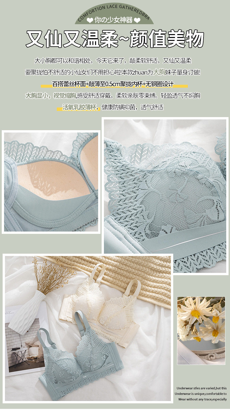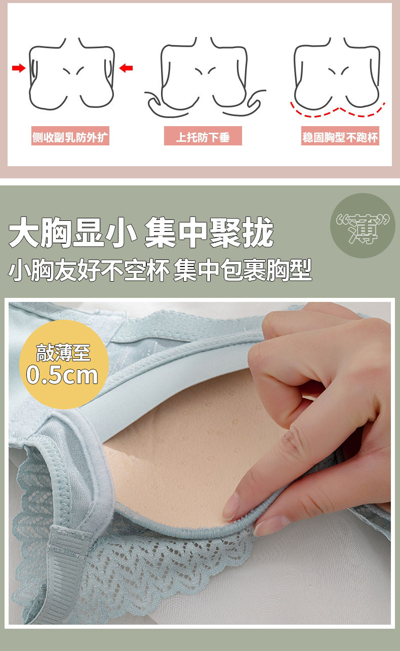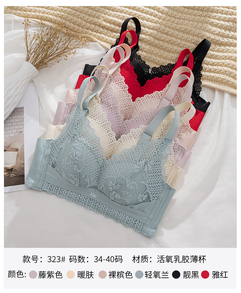天丝娜 323 Латексный хлопок, чашка B, средний тонкий бюстгальтер, бесшовное кружево без магнитов, вмещающее вторичную грудь, маленькая грудь, не пустая чашка, бюстгальтер