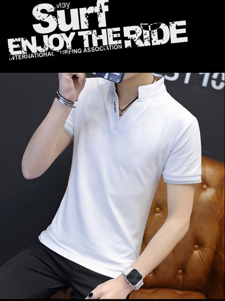 Трендовая шелковая дышащая хлопковая футболка с коротким рукавом, V-образный вырез, облегающий крой