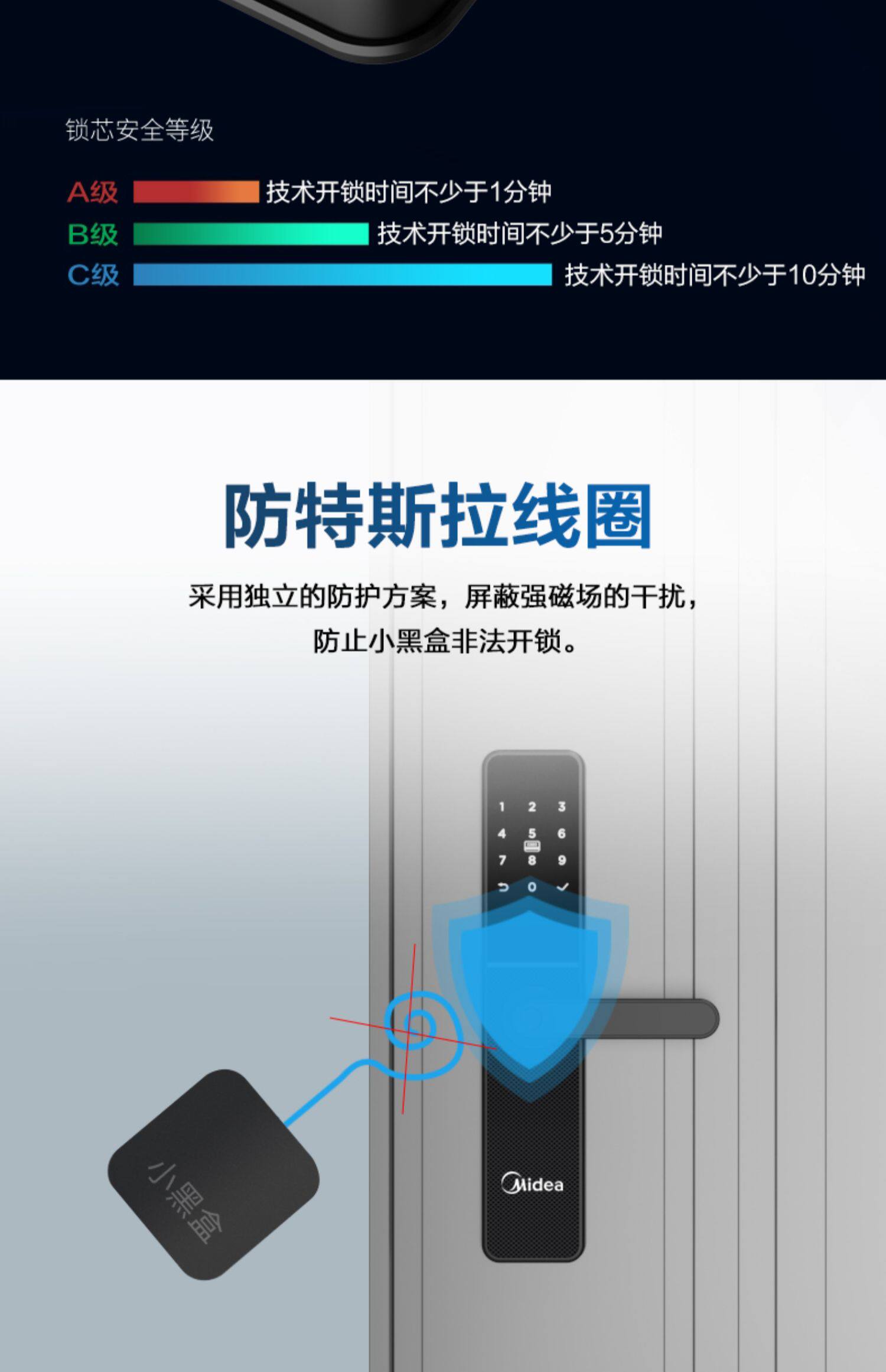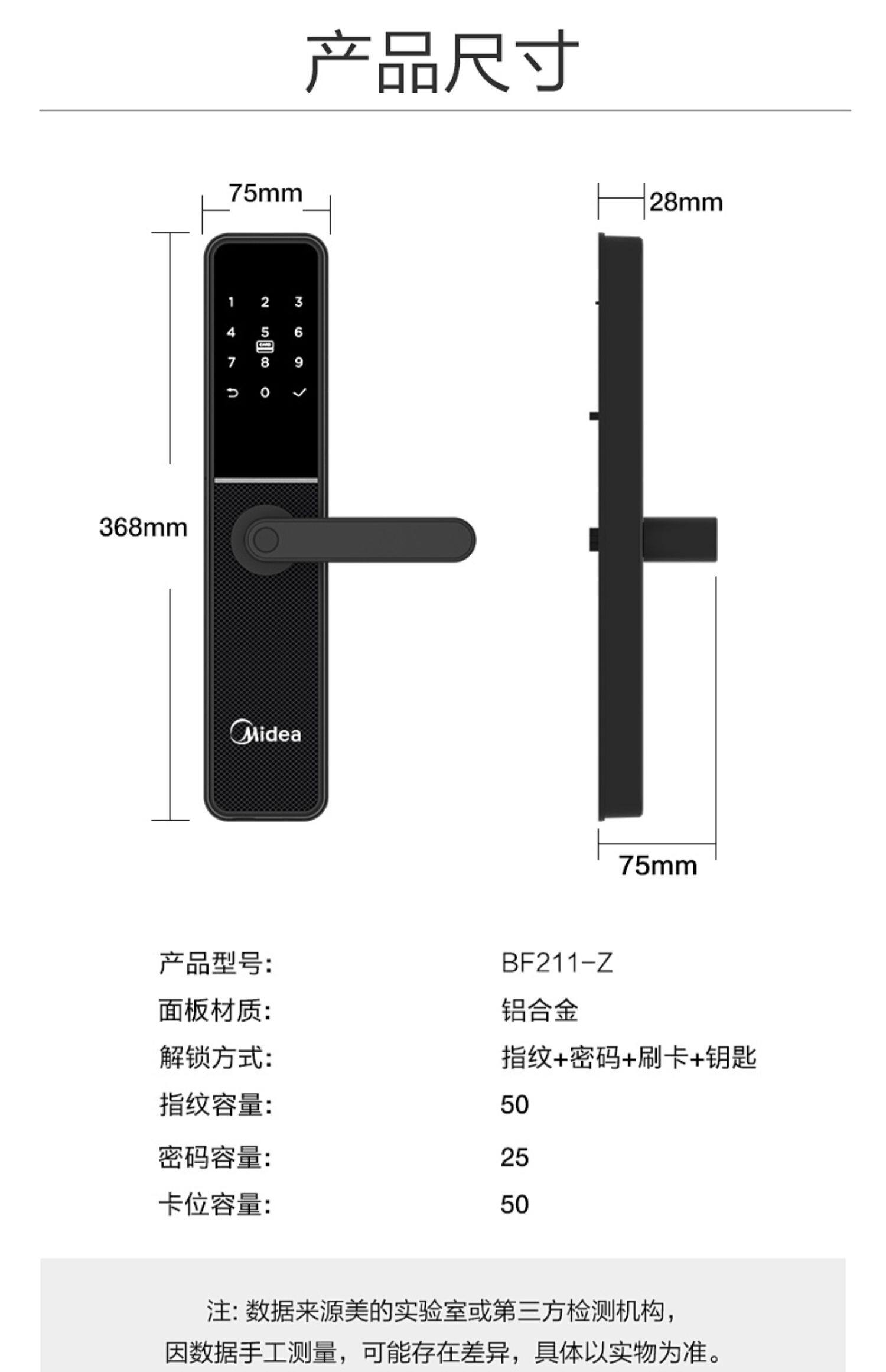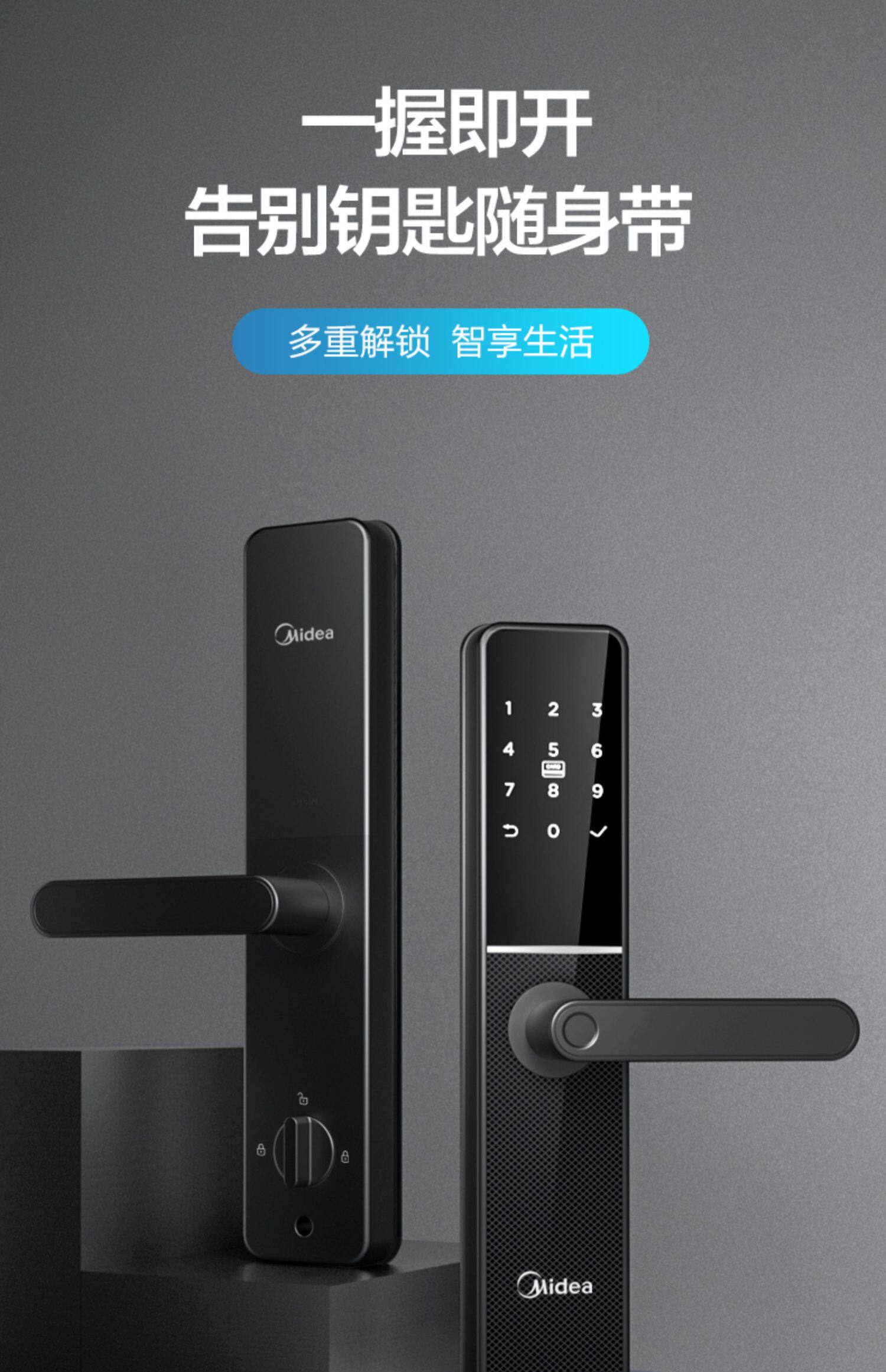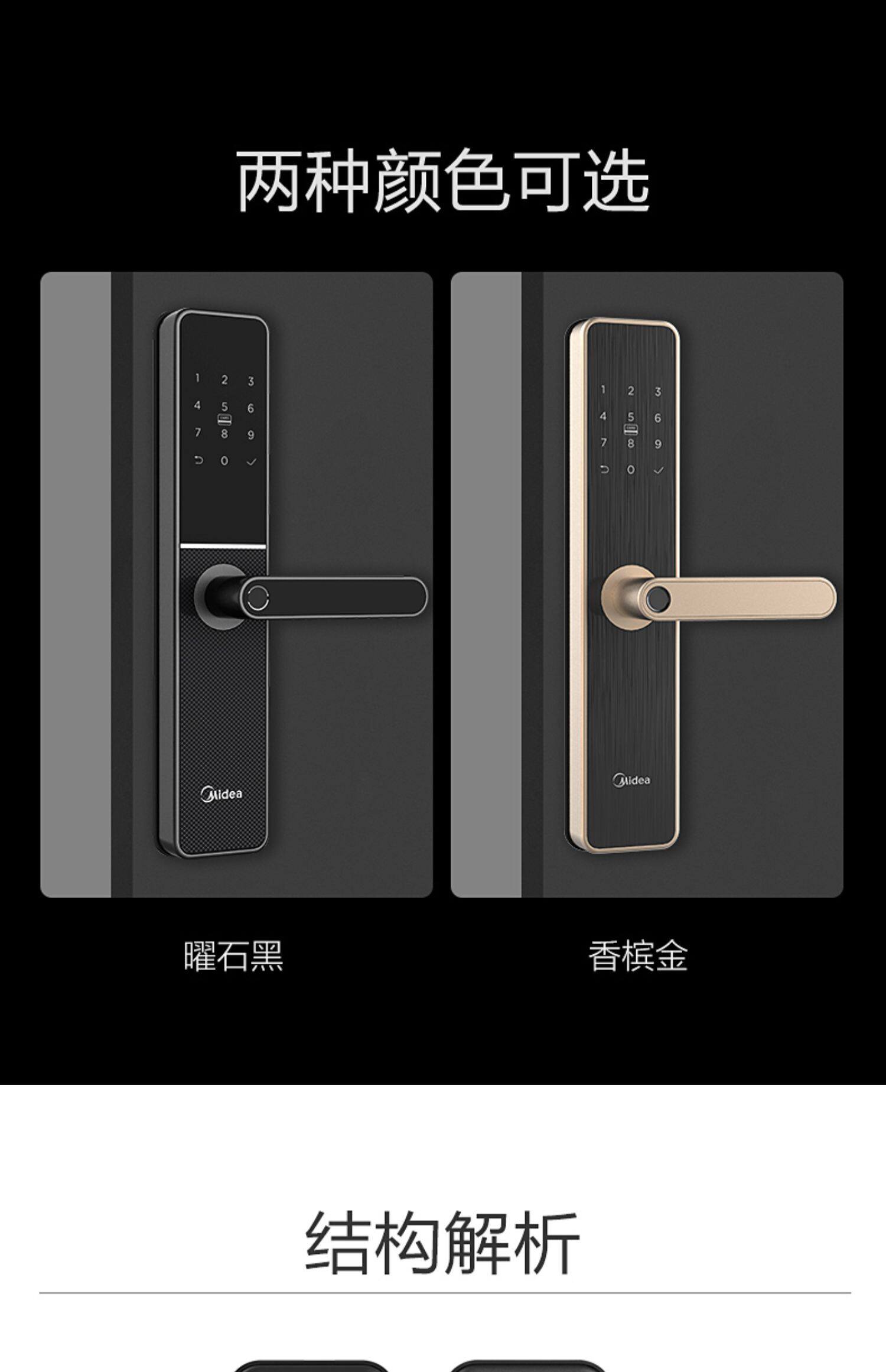 Midea's Pinger -Lock Home -Matheft Door Password Lock Electronic Lock Smart Door Lock Smart Lock Деревянный дверной дверной анти -мощный черный ящик