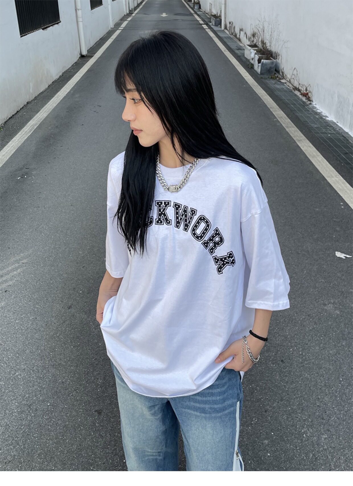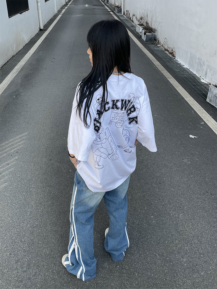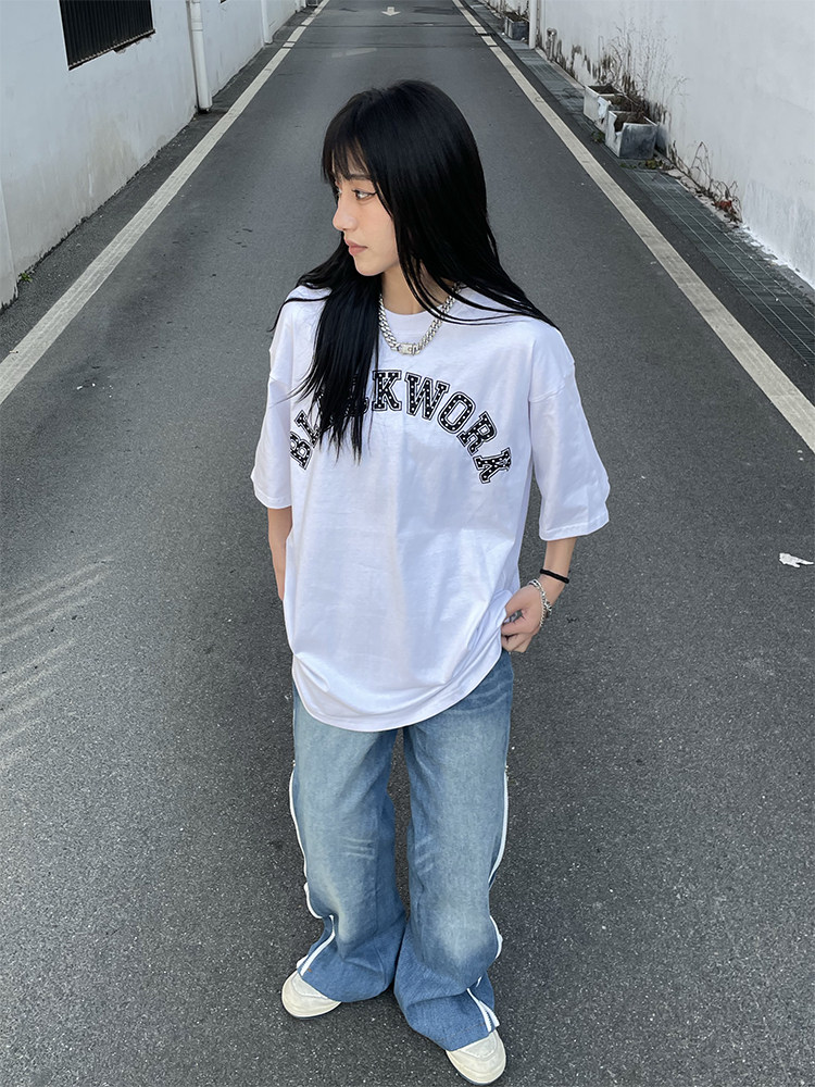 Футболка с коротким рукавом, в американском стиле, с вышивкой, свободный крой, коллекция 2022