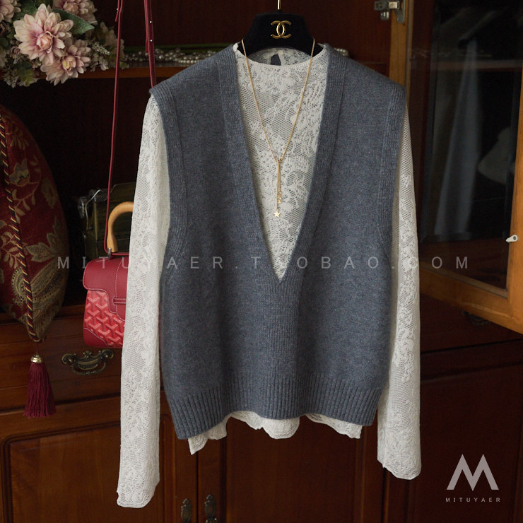 Кашемировый трикотажный шерстяной жилет, V-образный вырез, в корейском стиле