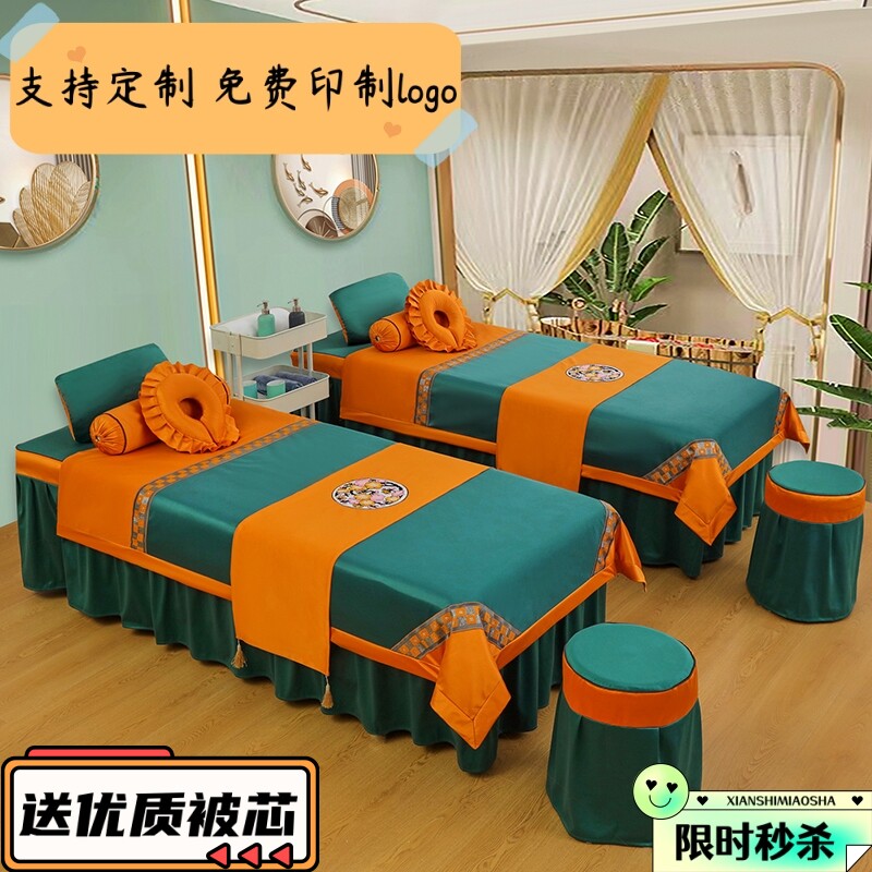 Высококлассное косметическое покрывало, универсальный хлопковый комплект, косметический массажер, легкий роскошный стиль, 4 предмета, простой и элегантный дизайн, из хлопка и льна, для салонов красоты, популярно в интернете