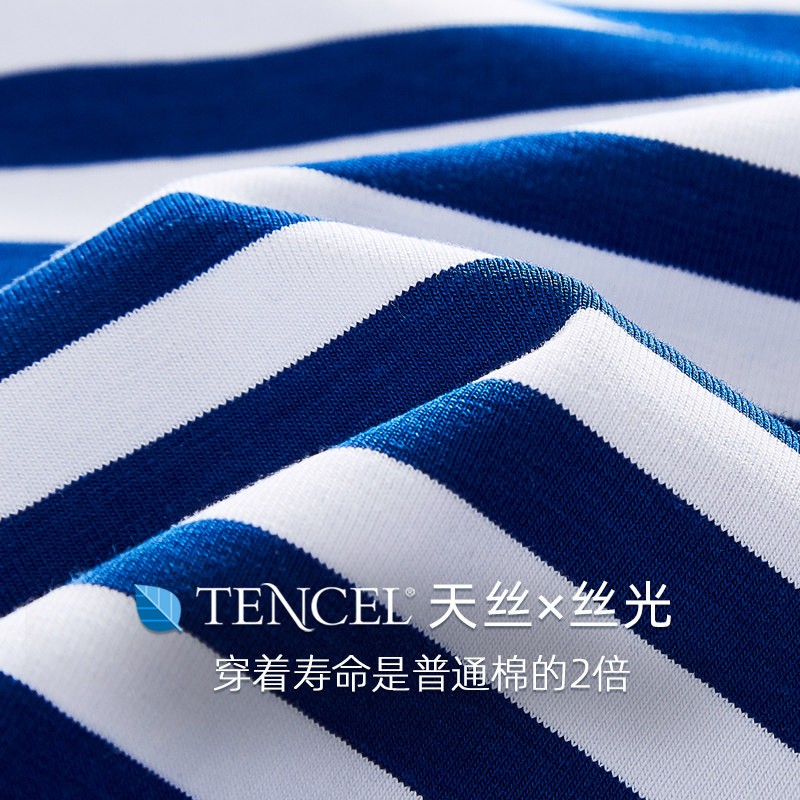 Хлопковая футболка из тенселя, женская полосатая рубашка, рубашка для стариков, рубашка «морская душа», лиоцелл с круглым вырезом, французский матросский костюм с половиной рукавов