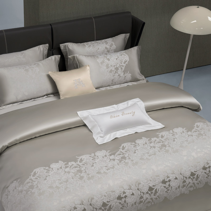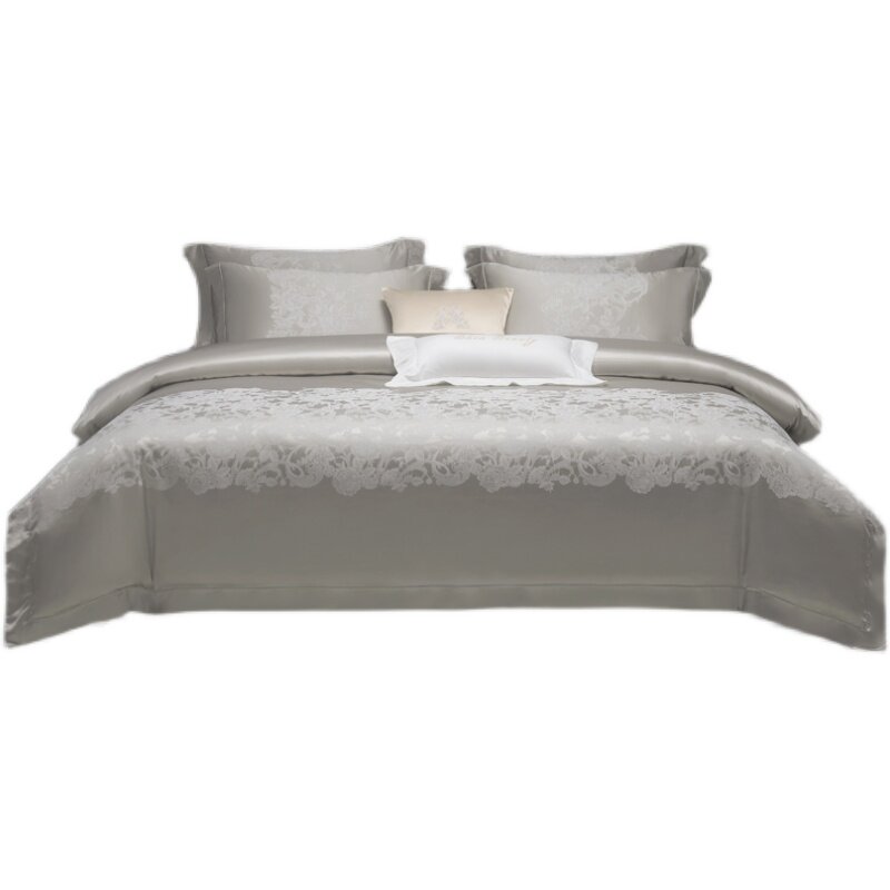 Шелковый комплект, покрывало, серебряная вилла, пододеяльник, 4 предмета, легкий роскошный стиль, европейский стиль, простой и элегантный дизайн