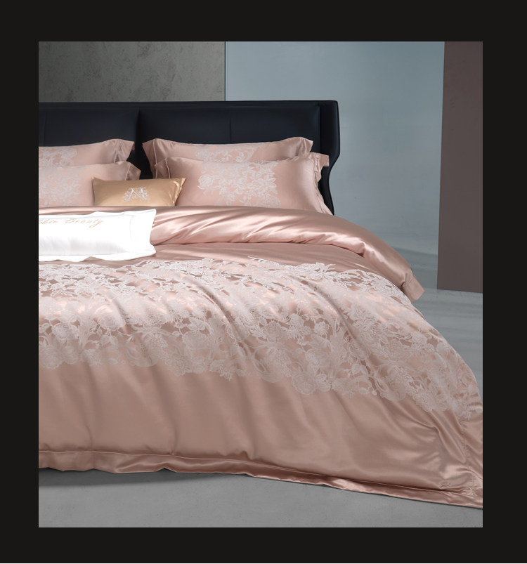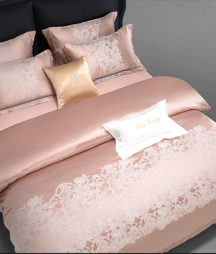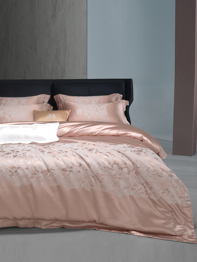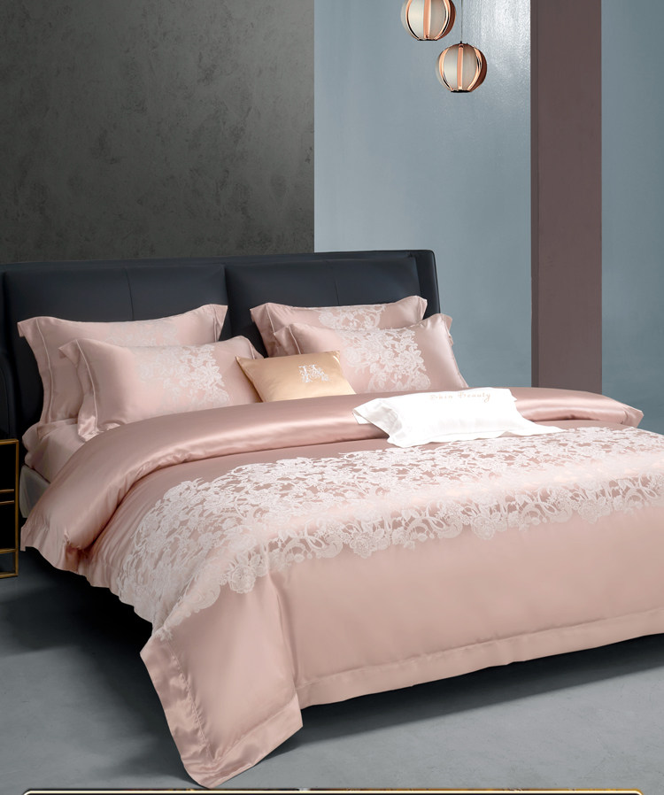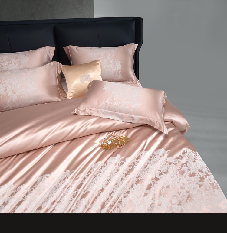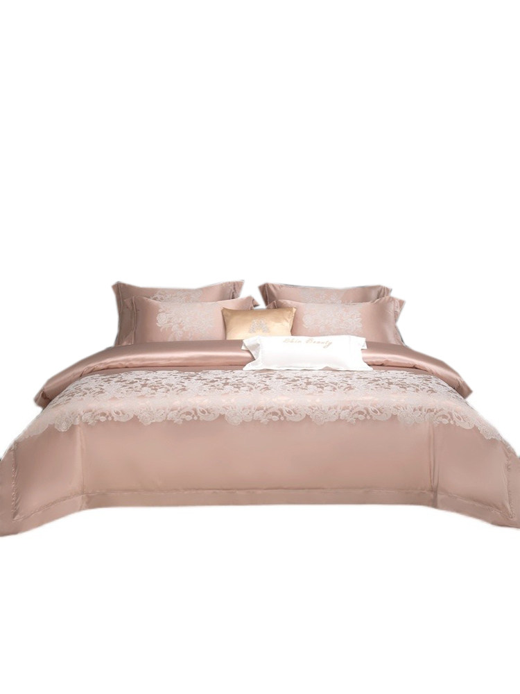 Элитный шелковый комплект, розовое покрывало, вилла, пододеяльник, легкий роскошный стиль, 4 предмета, европейский стиль