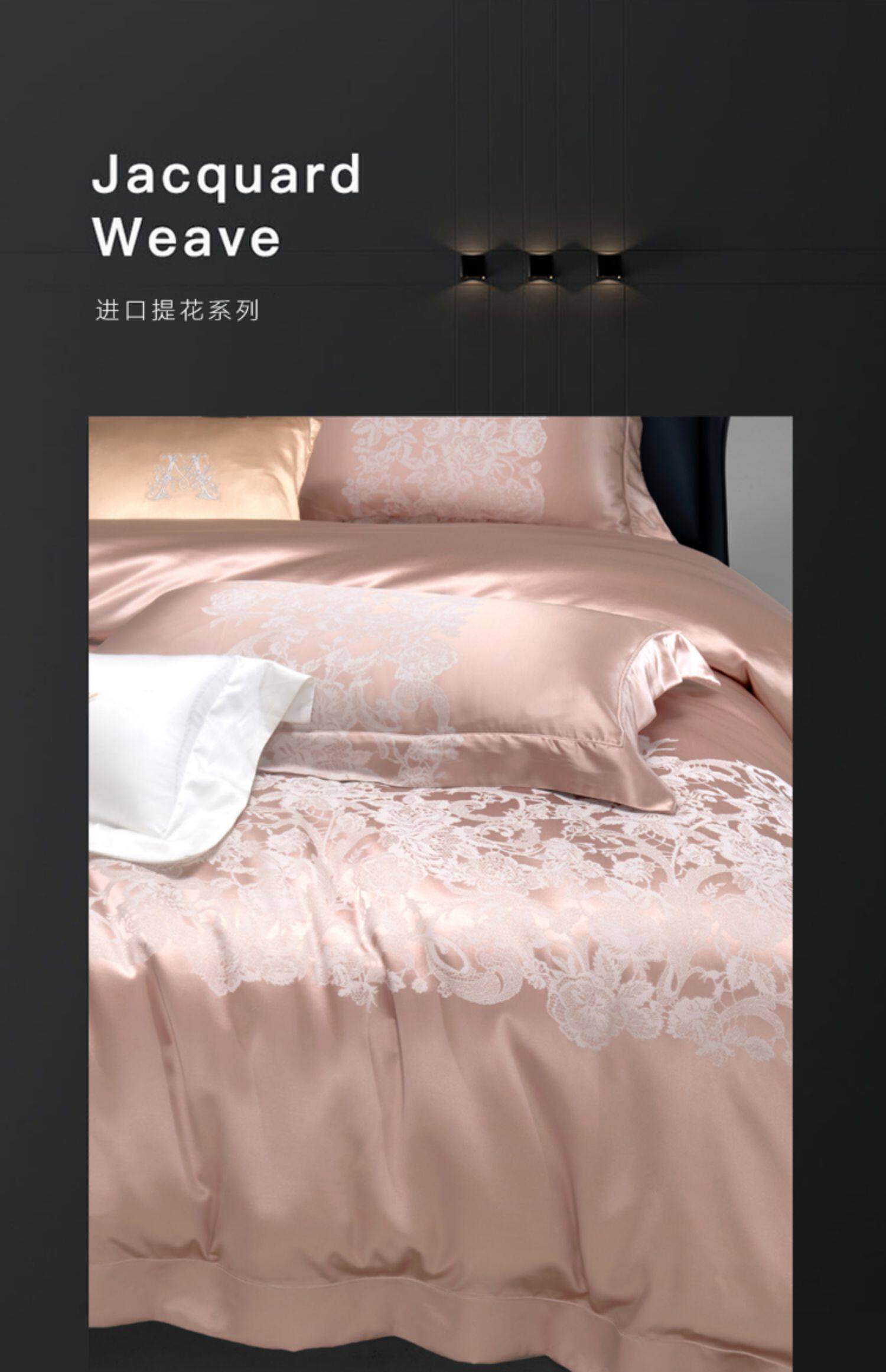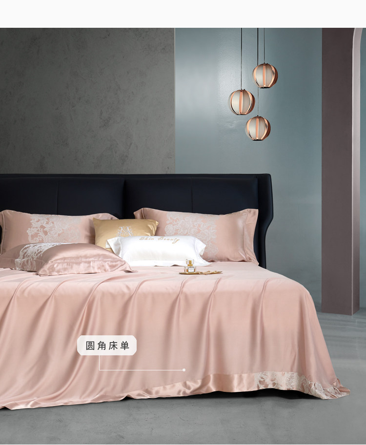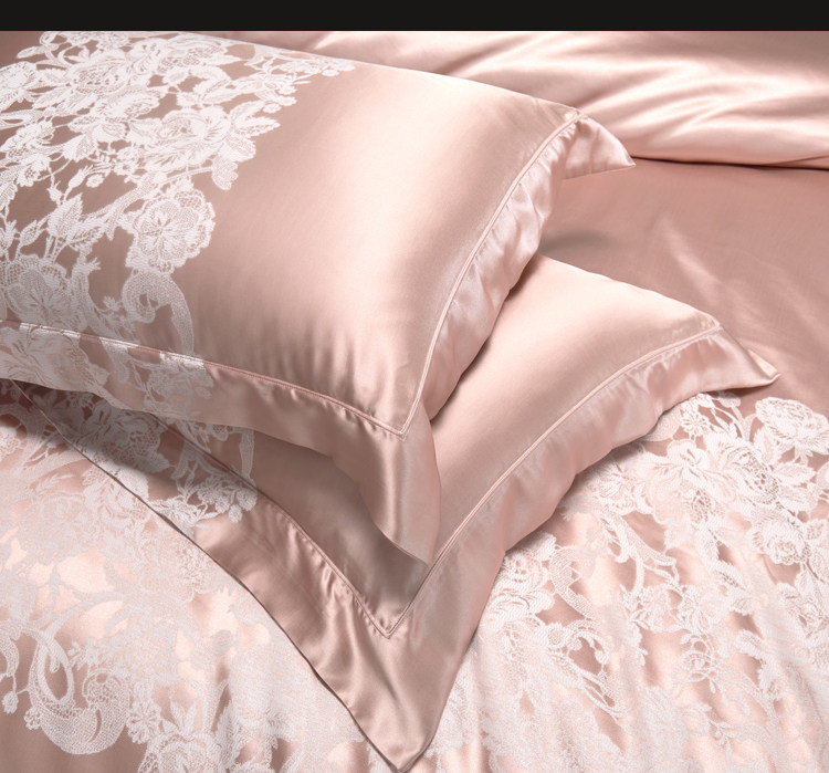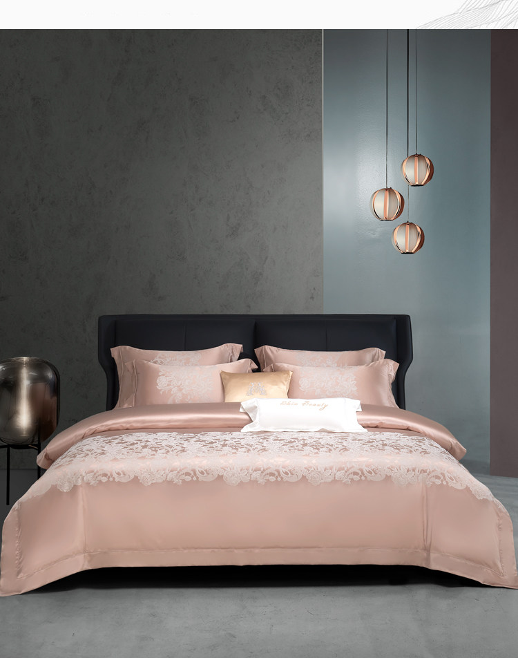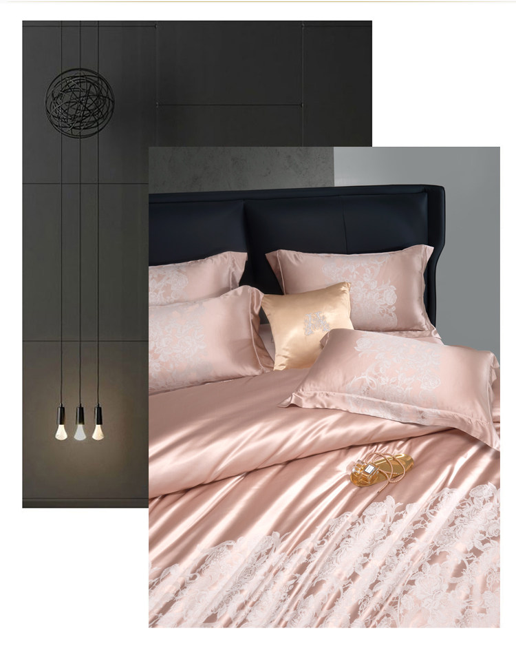 Элитный шелковый комплект, розовое покрывало, вилла, пододеяльник, легкий роскошный стиль, 4 предмета, европейский стиль