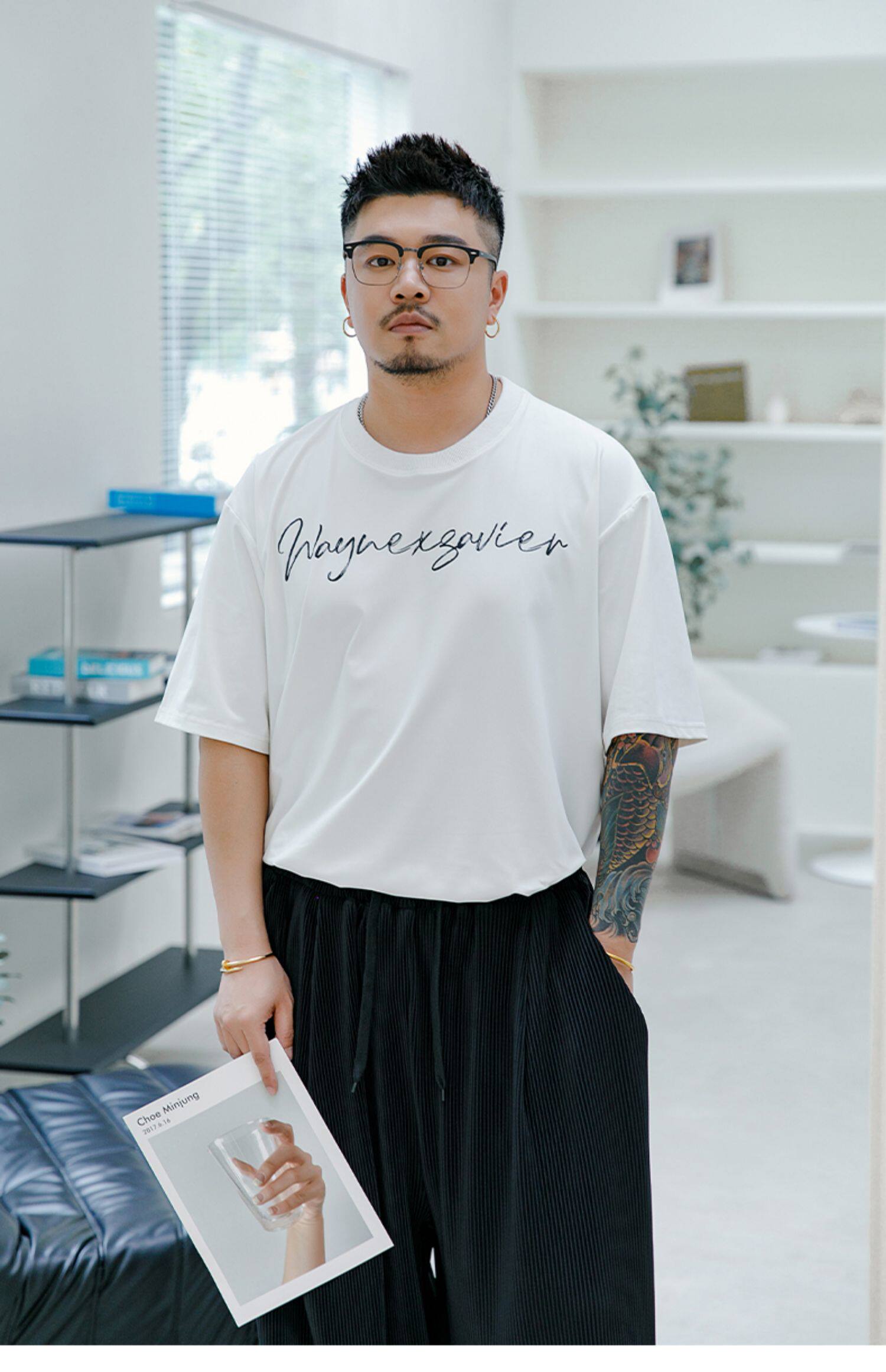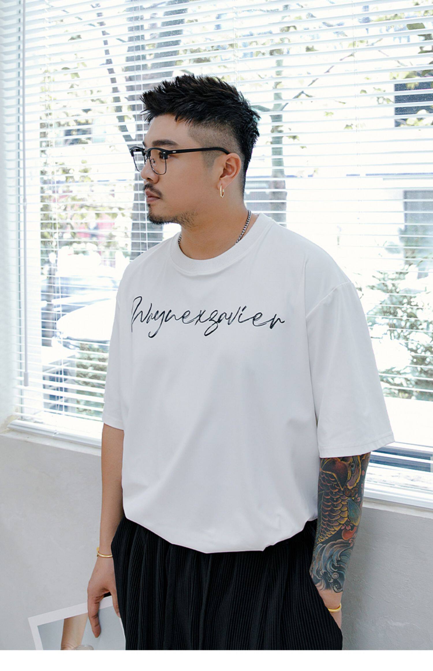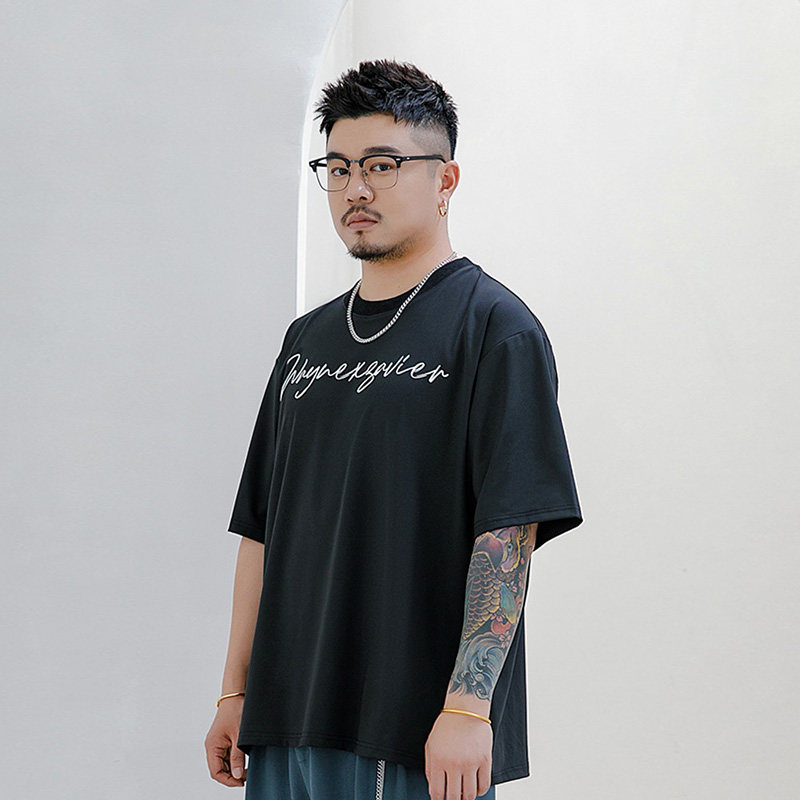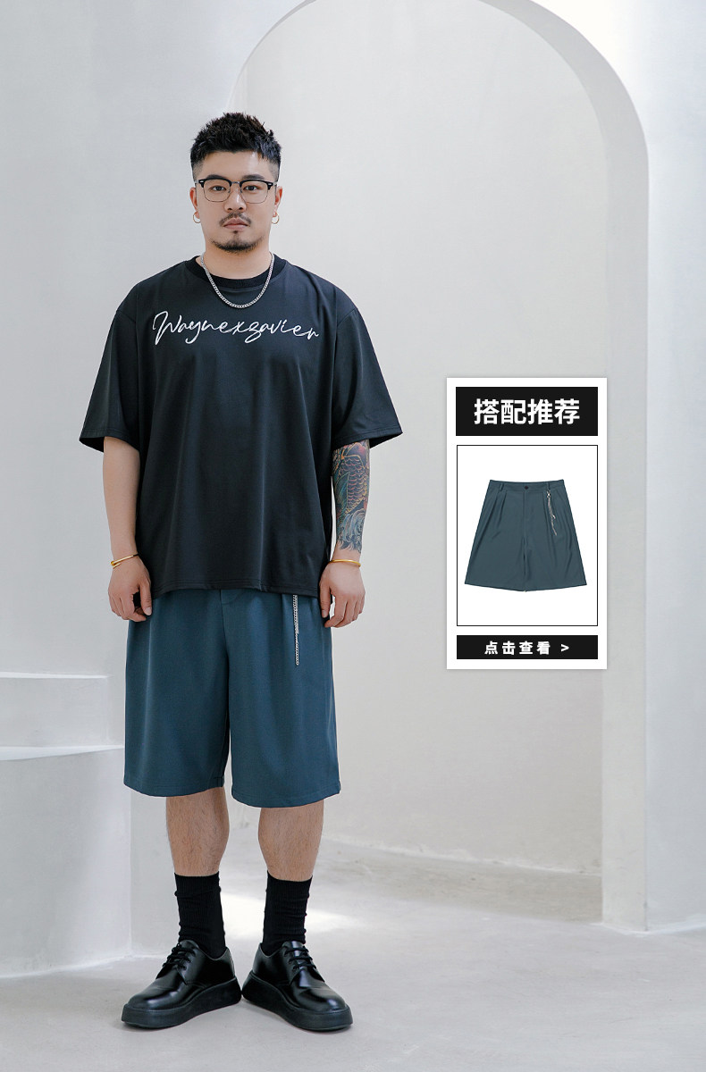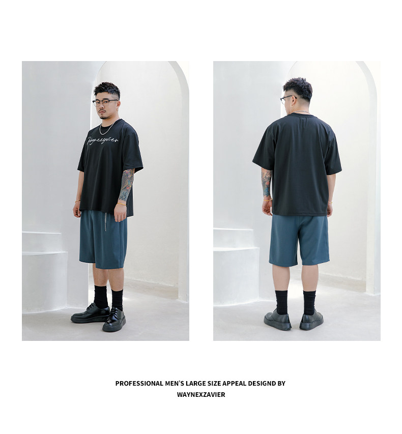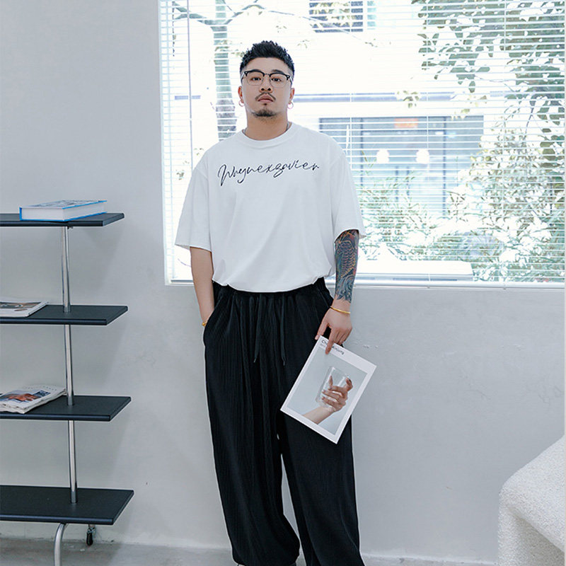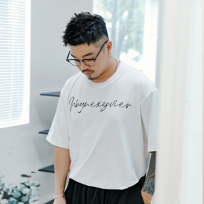Wenenzeville Fat Big Size White T -Fork Men's Men's Menship Летом плюс удобрения увеличивает простой уличный короткий