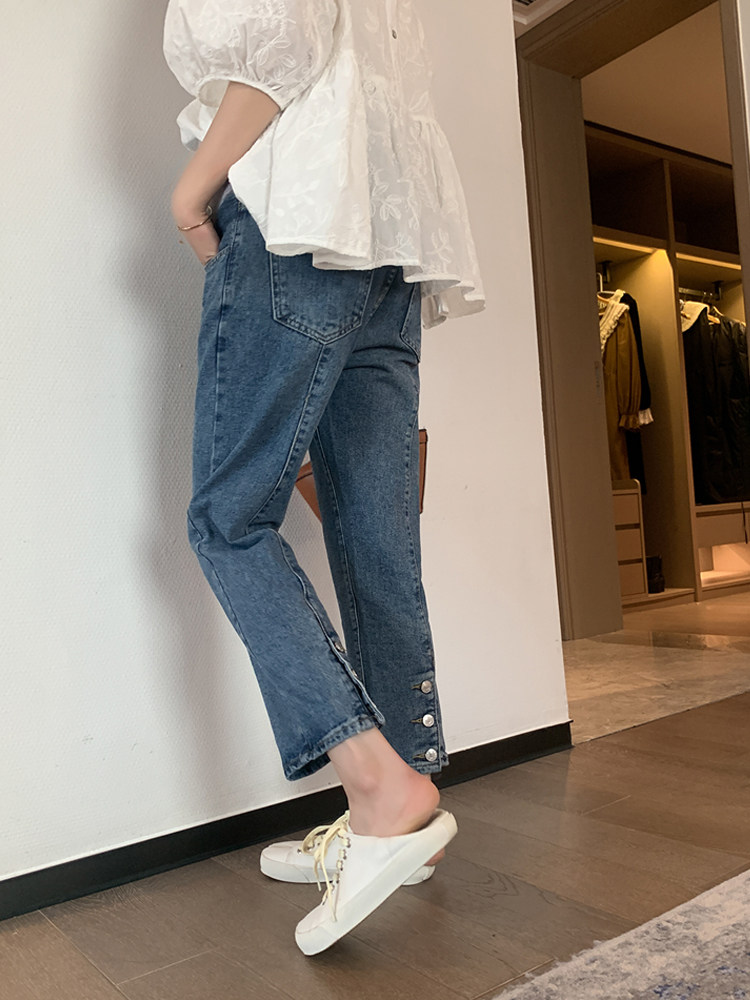 Джинсовые дизайнерские темно-синие штаны для беременных с поддержкой живота, свободный прямой крой