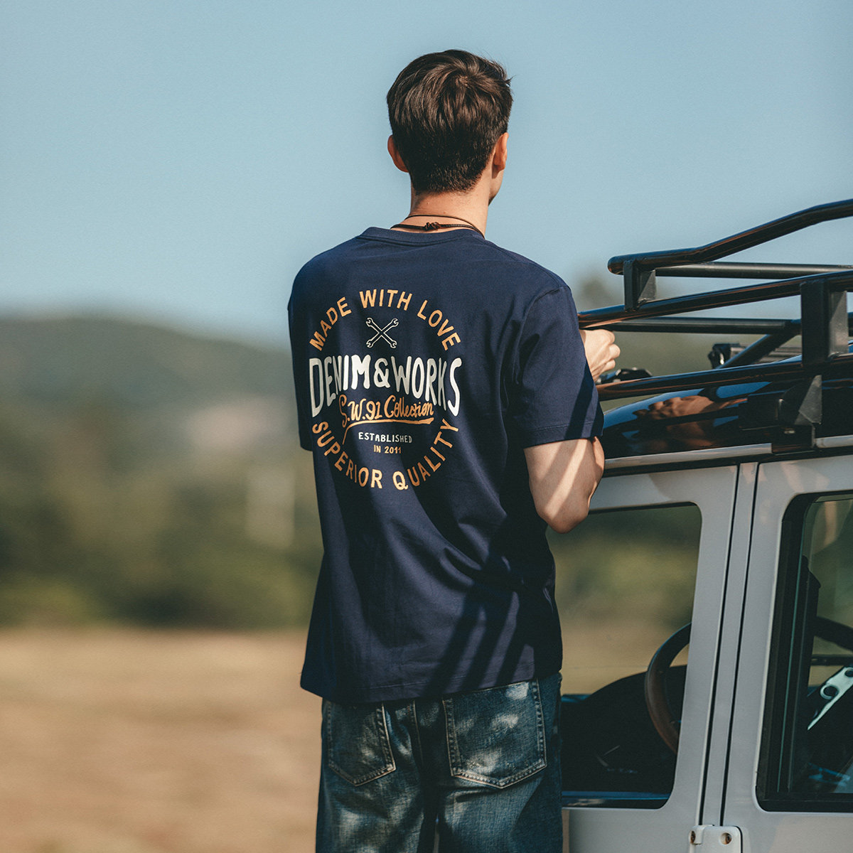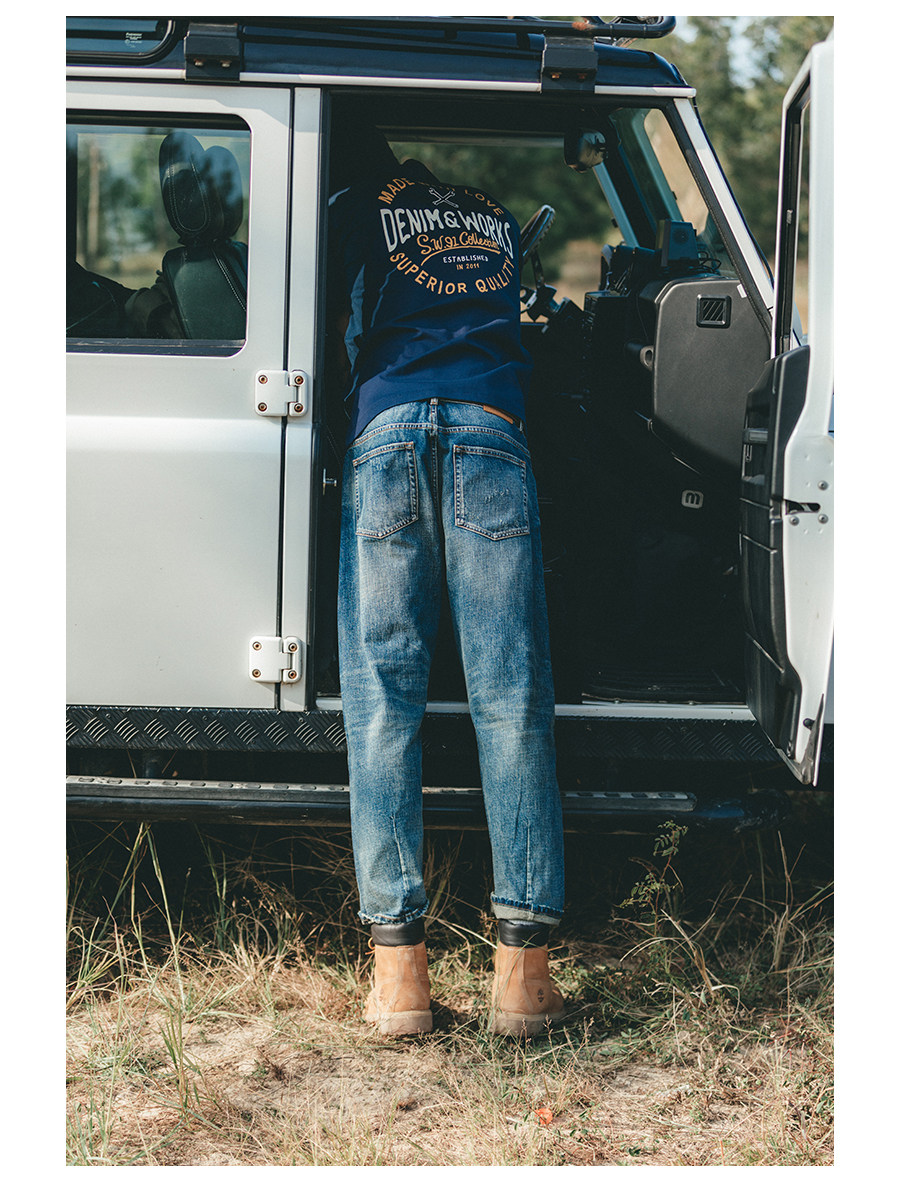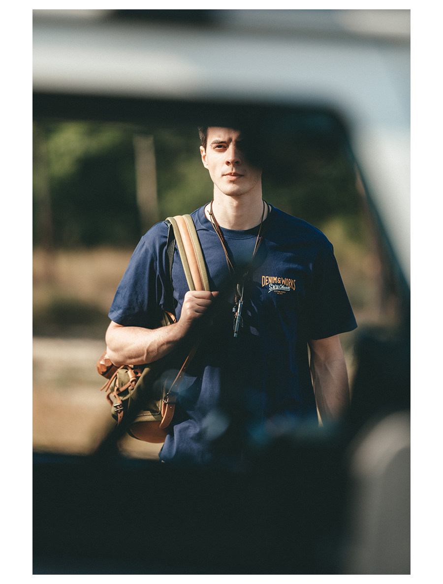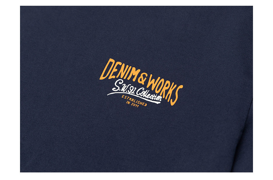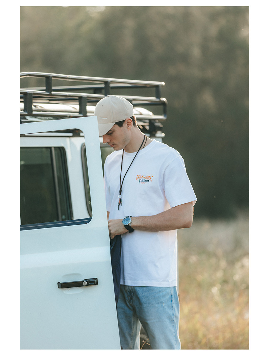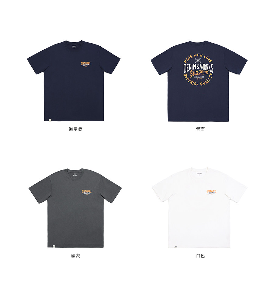 Simwood Простая деревянная мужская одежда [Стандартный свободный] Летний новый продукт 240 г Тяжелая футболка с круглым вырезом и коротким рукавом с принтом сзади