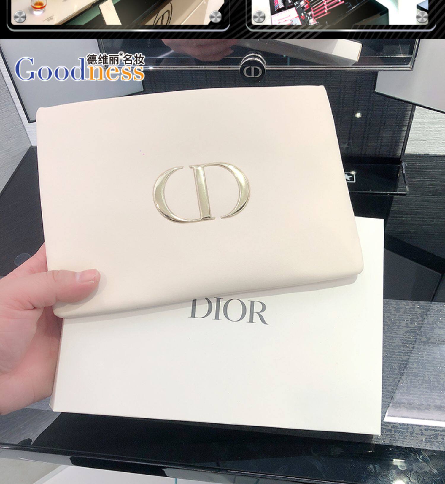 Dior, золотая косметичка, маленькая сумка клатч, сумка-органайзер, лента, с печатью вашего логотипа