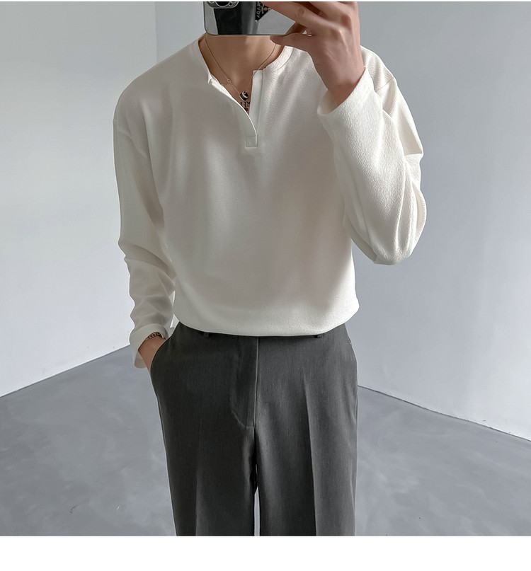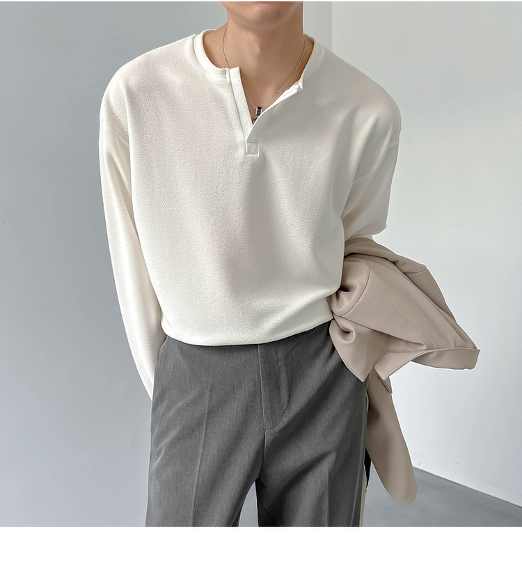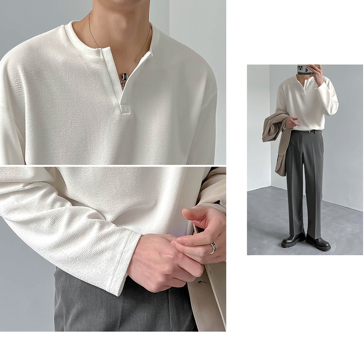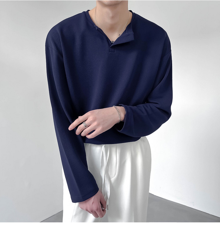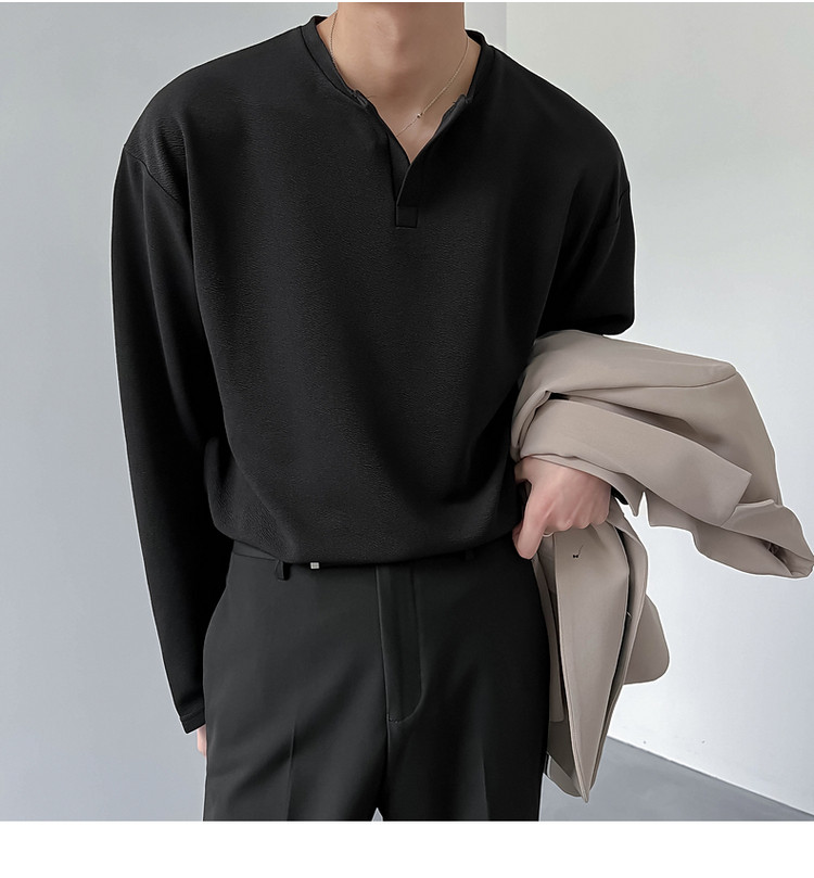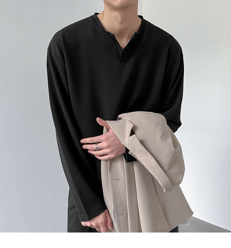 Tide, мужской весенний базовый приятный телу небольшой лонгслив, в корейском стиле, V-образный вырез