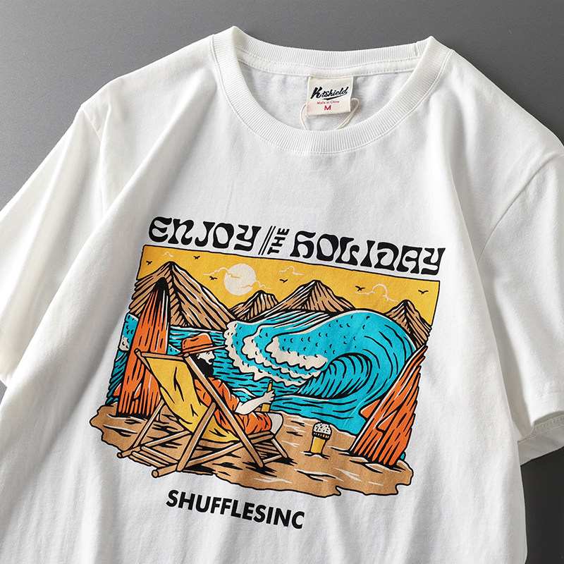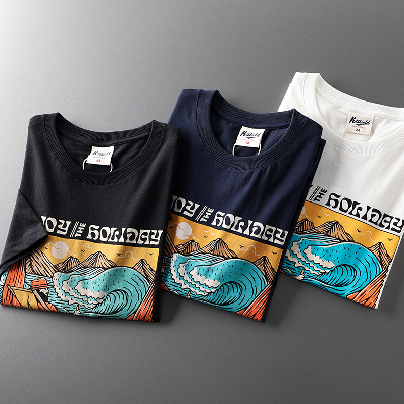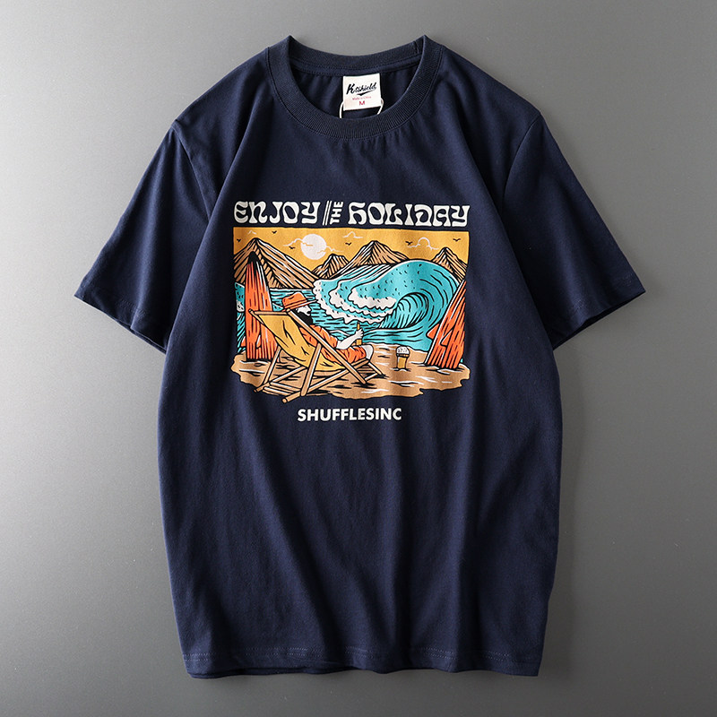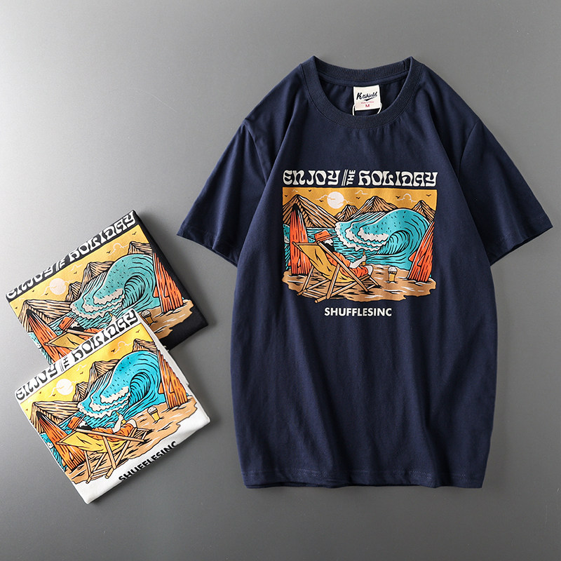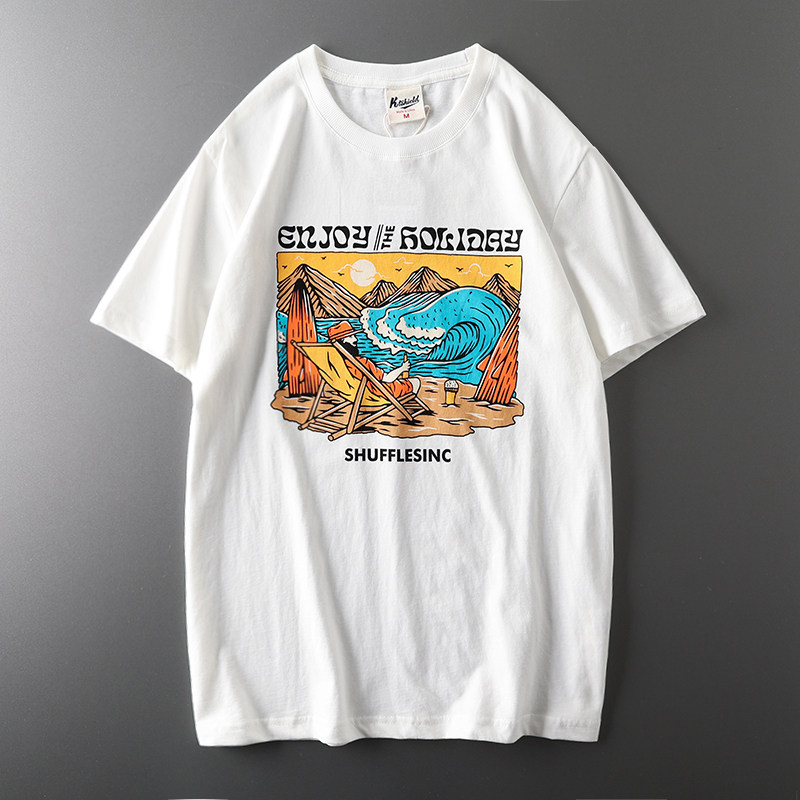 (Трансграничная торговля), мужская хлопковая универсальная футболка с коротким рукавом, в американском стиле
