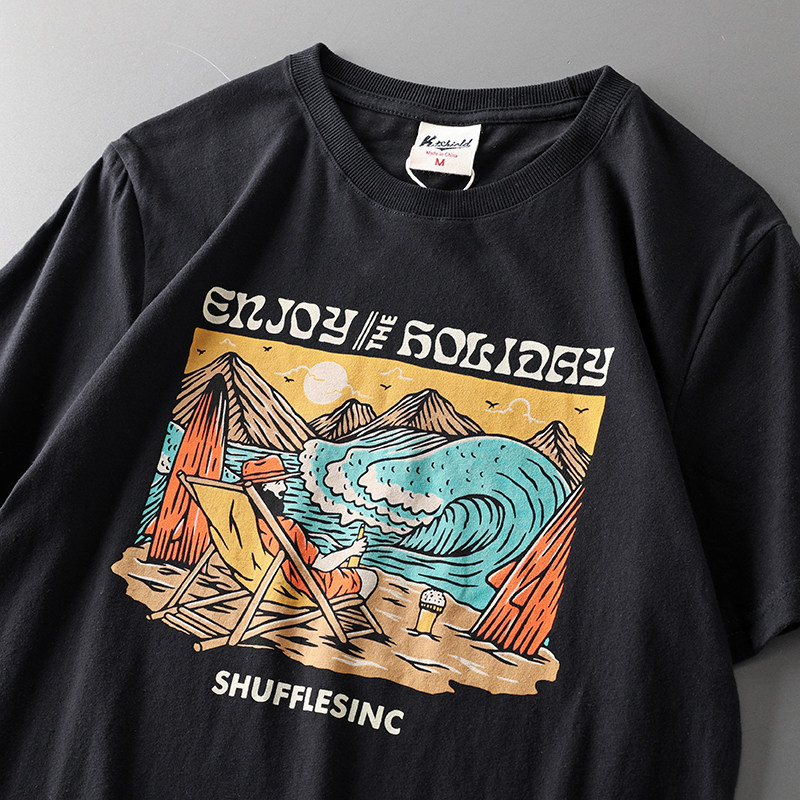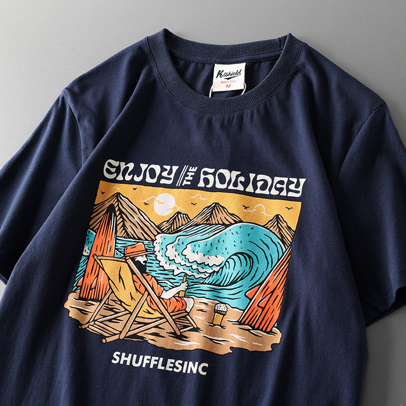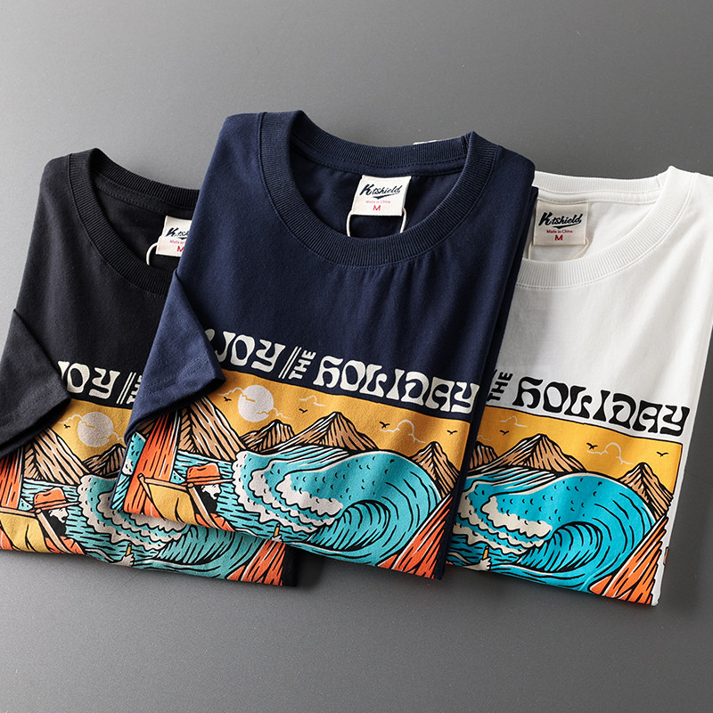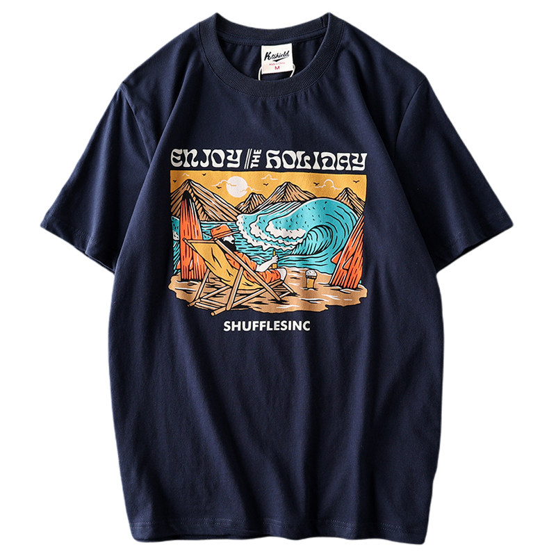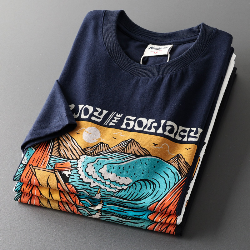 (Трансграничная торговля), мужская хлопковая универсальная футболка с коротким рукавом, в американском стиле