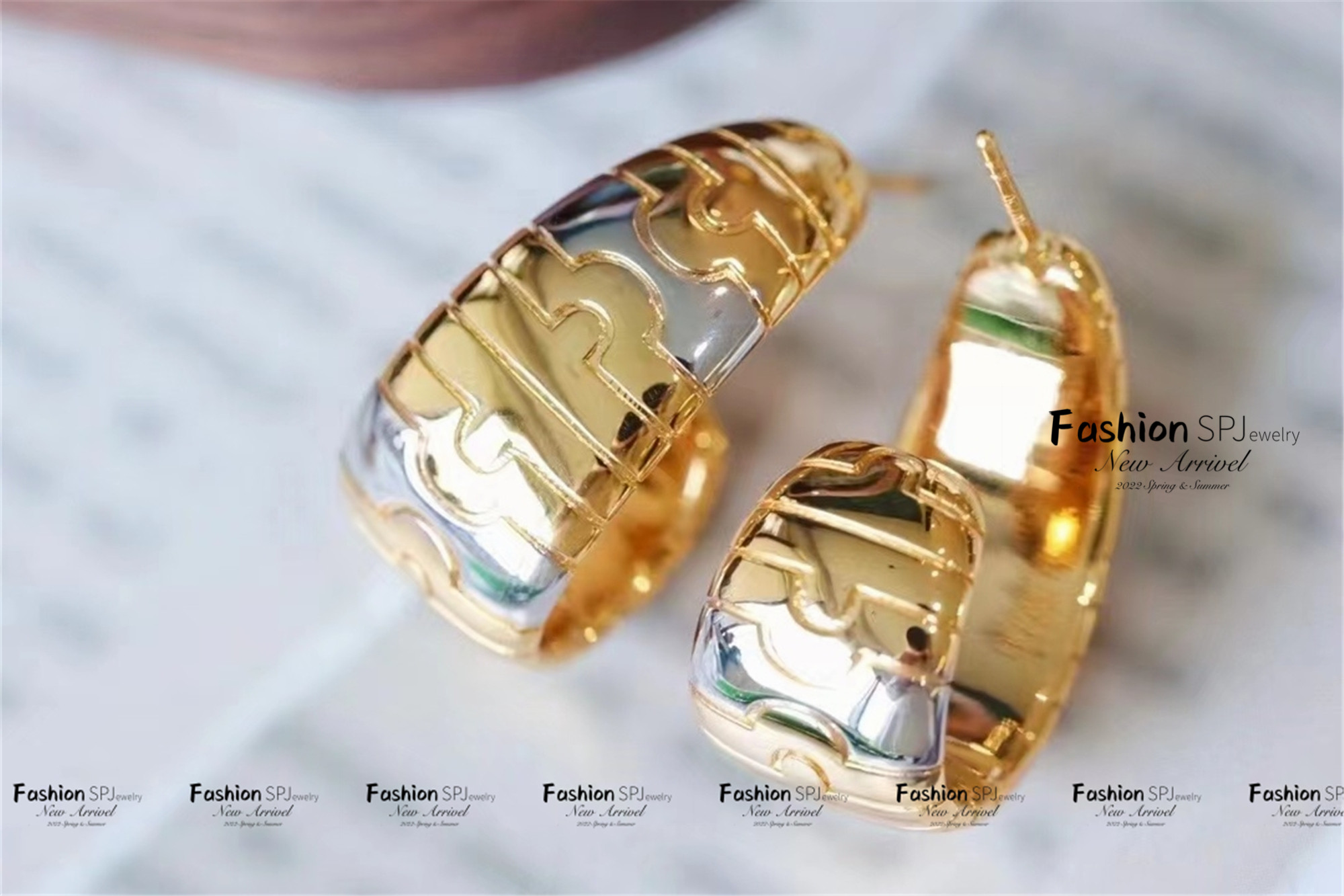 SPJ 18K Золотой полумесяц разделение C-образное ретро-ретро серьги Petal Wavy Curly Gold Double Comuting