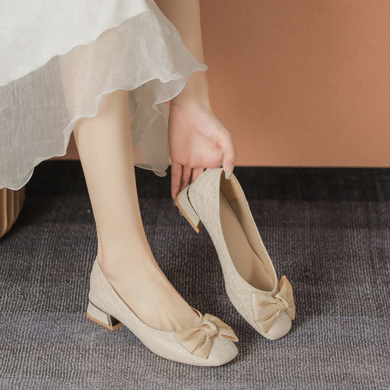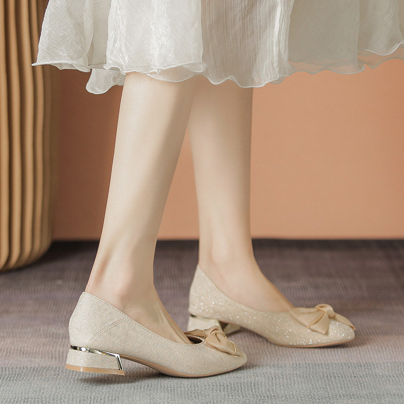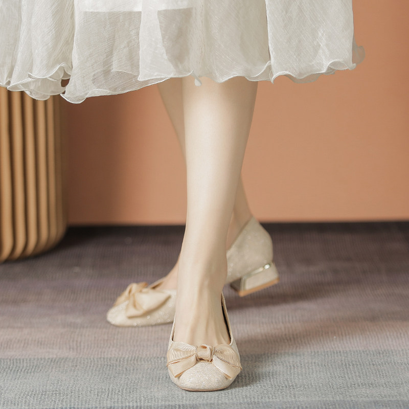 Нежные женские туфли на высоком каблуке «Вечерний ветерок», лето 2023, новая модель «Фея» с юбкой, туфли на среднем толстом каблуке, 43 размера, туфли из фасоли большого размера