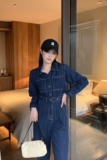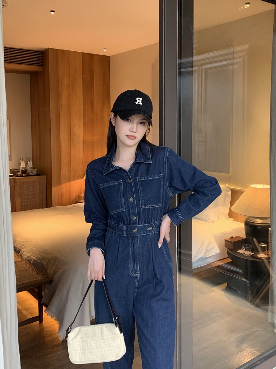Синий комбинезон, весенние штаны, лонгслив, джинсы