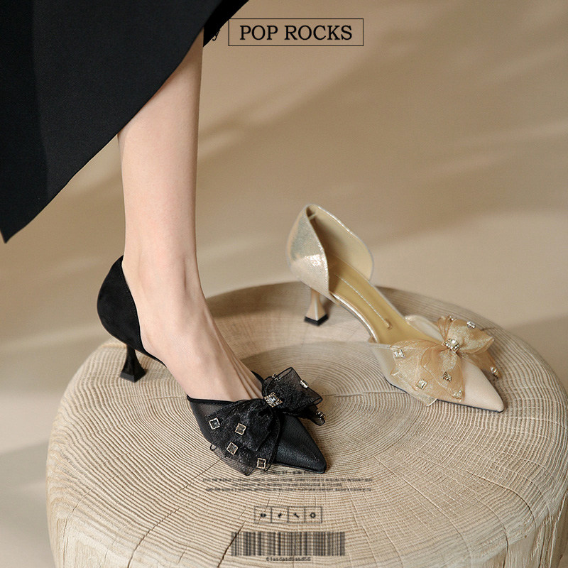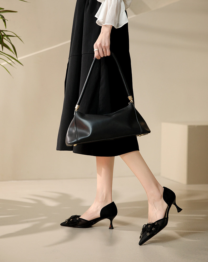 Сетчатые универсальные туфли на высоком каблуке с бантиком, 2023 года, тренд сезона, из натуральной кожи