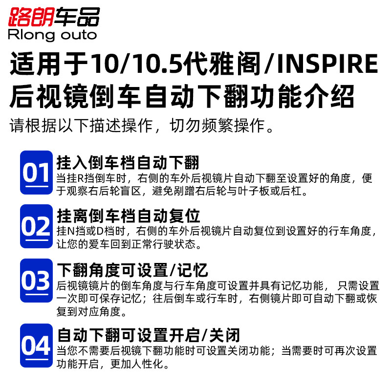 | Цвет: | 10/10.5 Dai Accor, Йингси Пай автоматически реверсирует зеркало заднего вида (справа) |