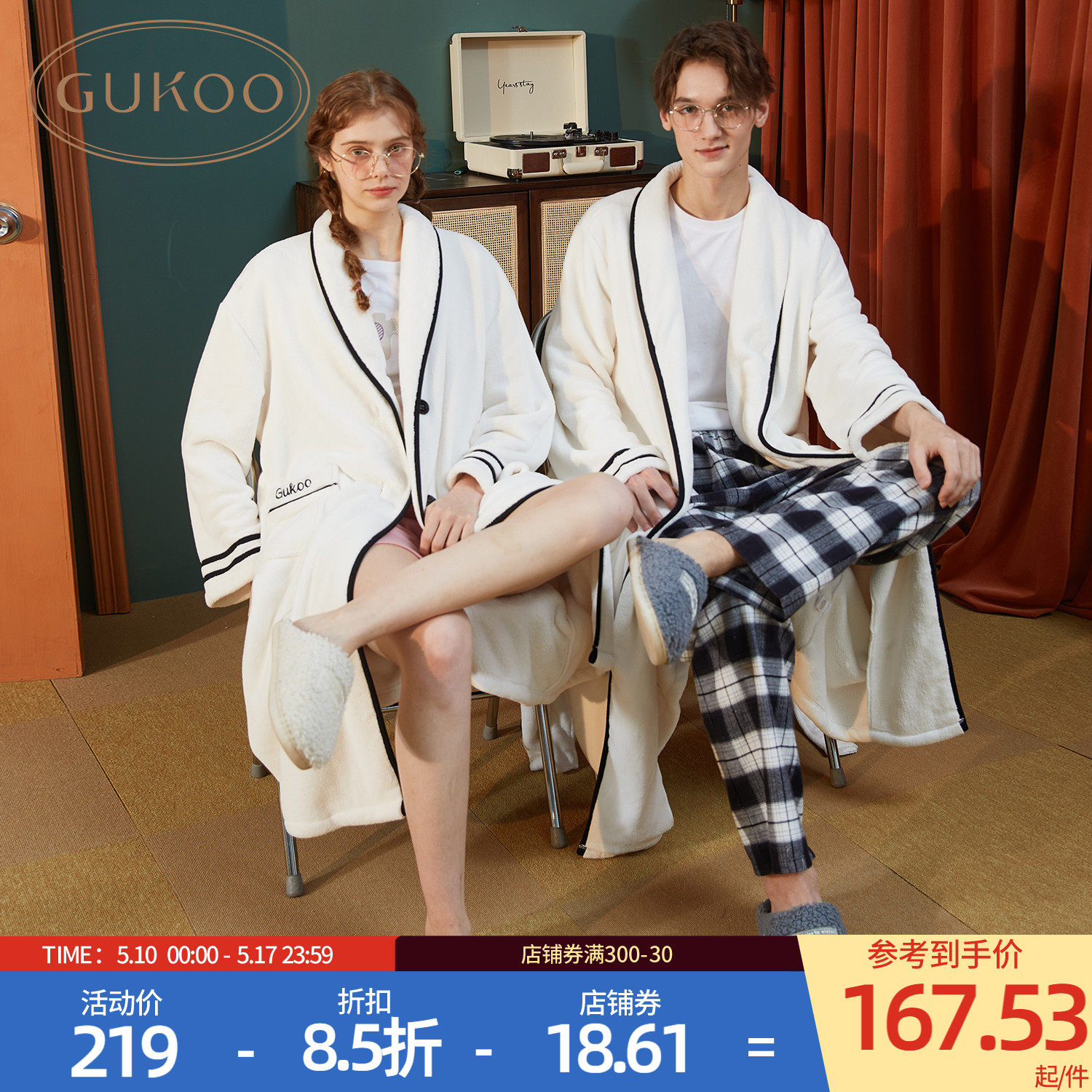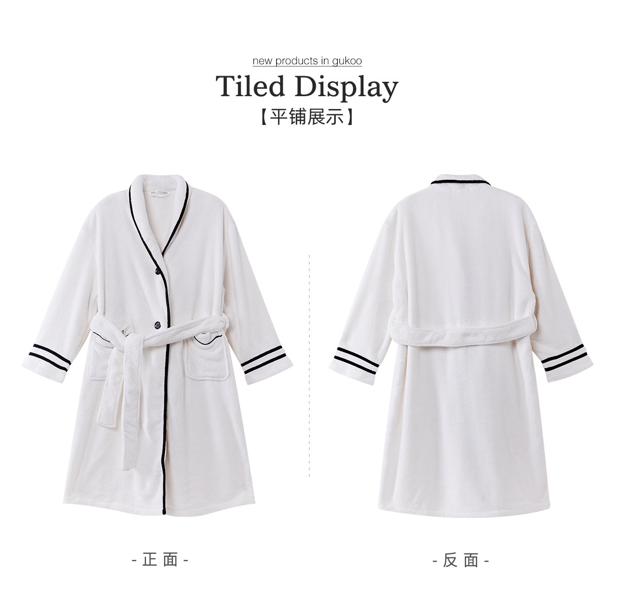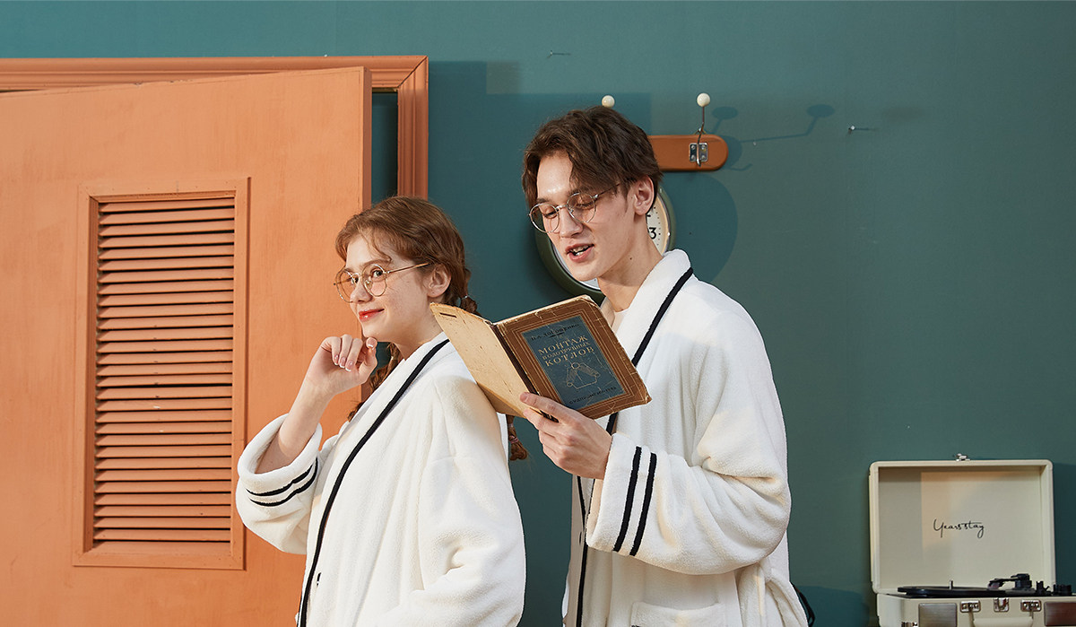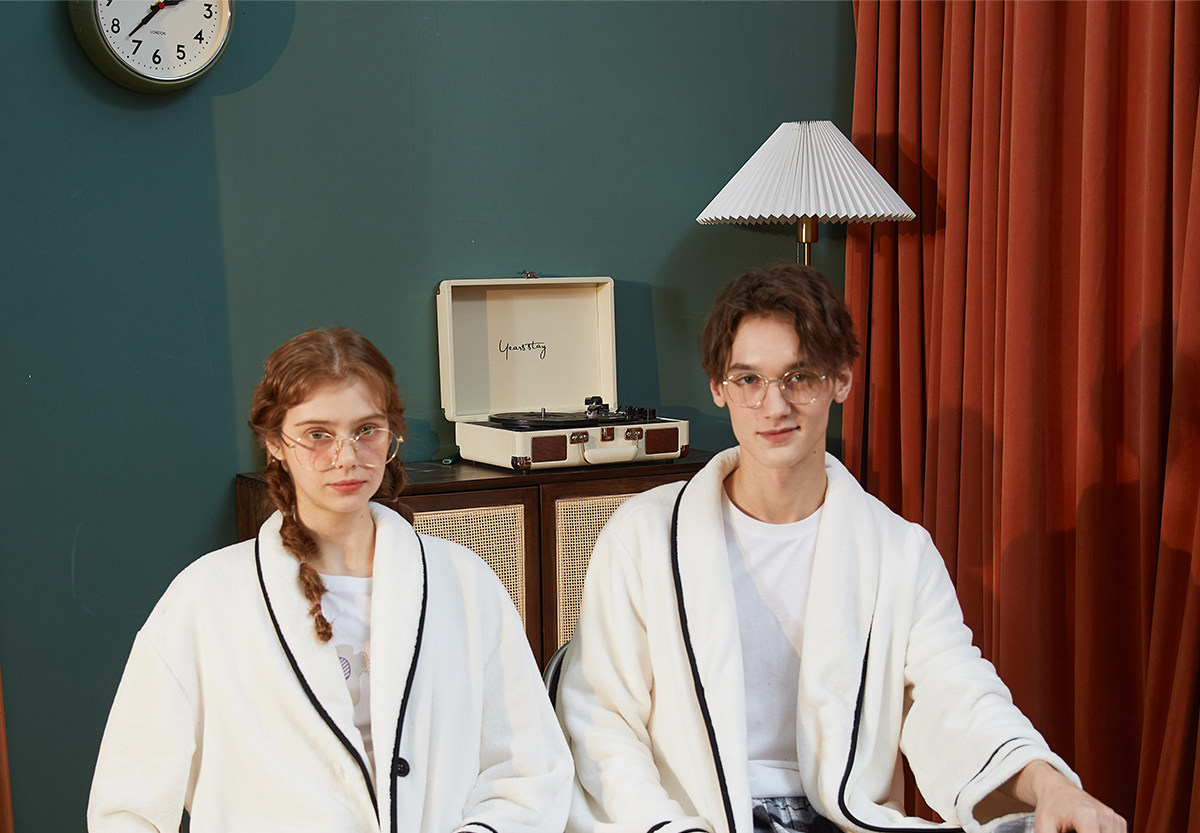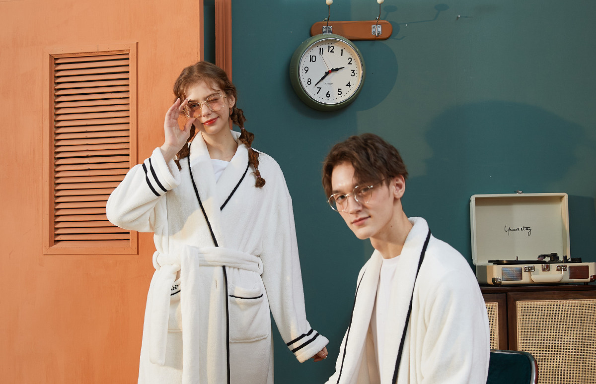 Gukoo/果壳 Демисезонный осенний банный халат для влюбленных, ремень, простой и элегантный дизайн