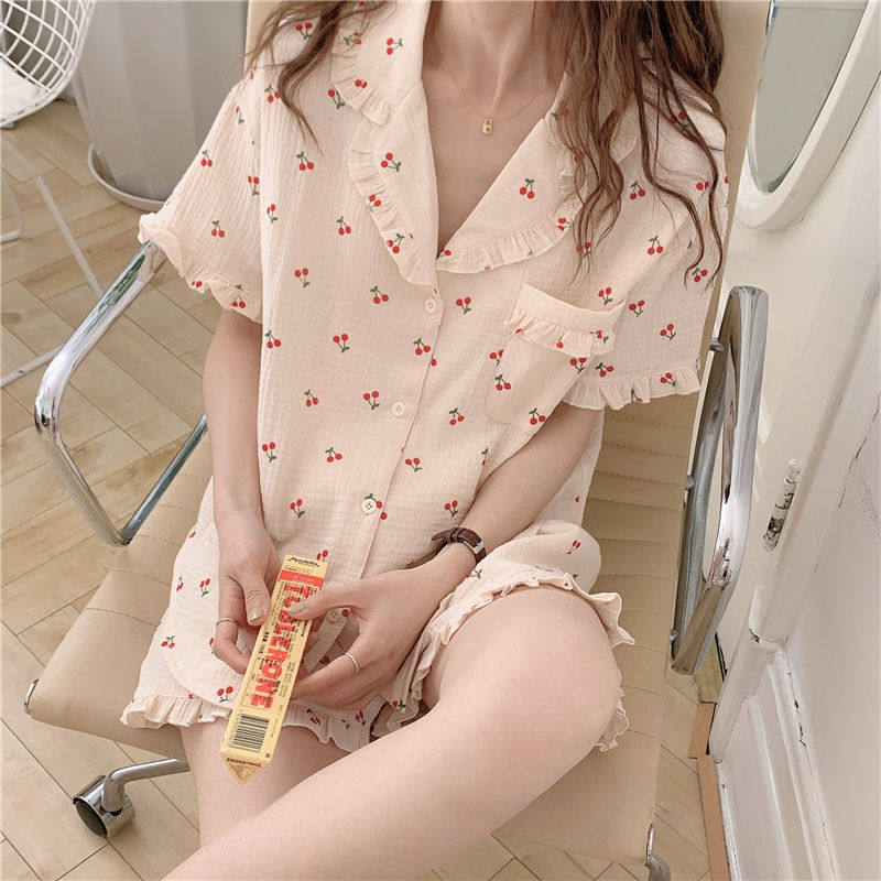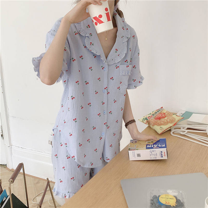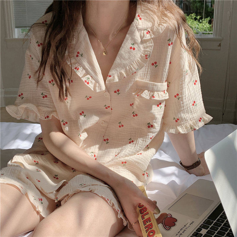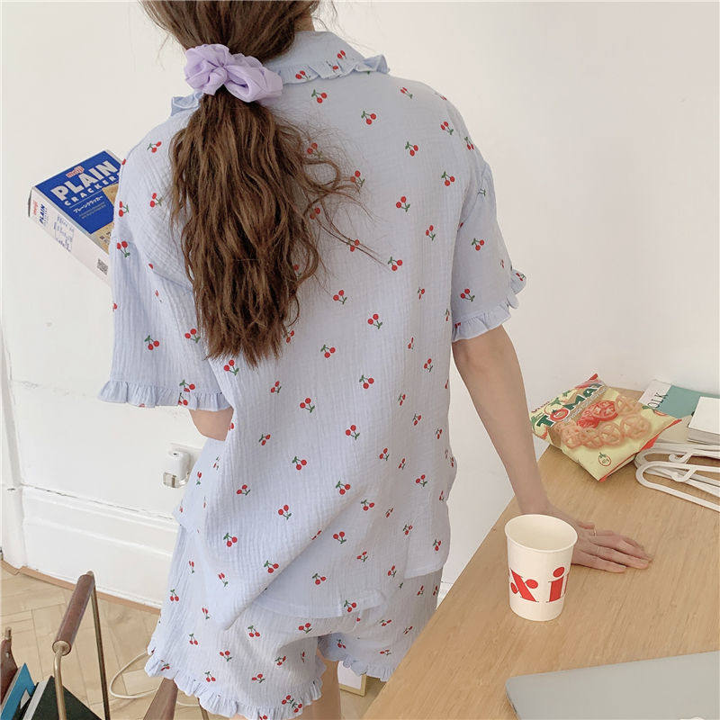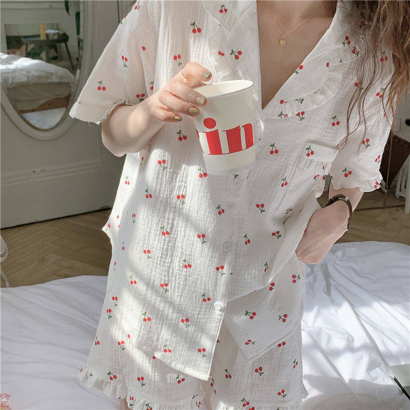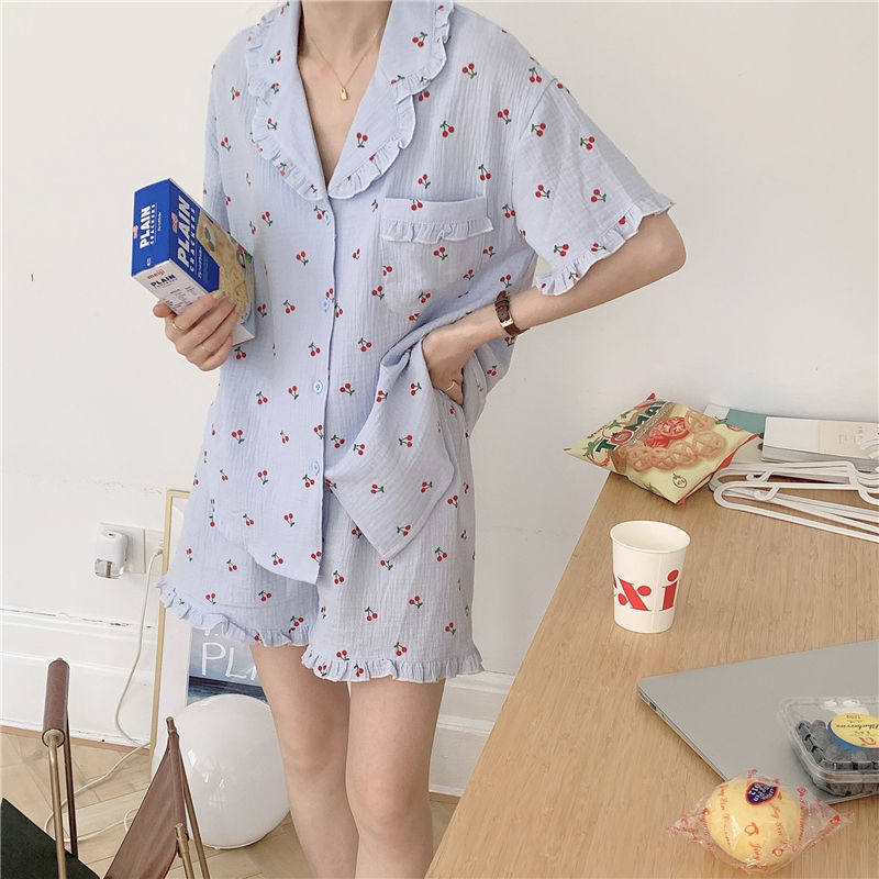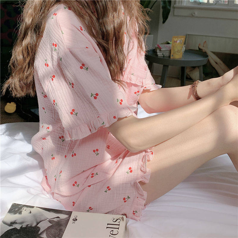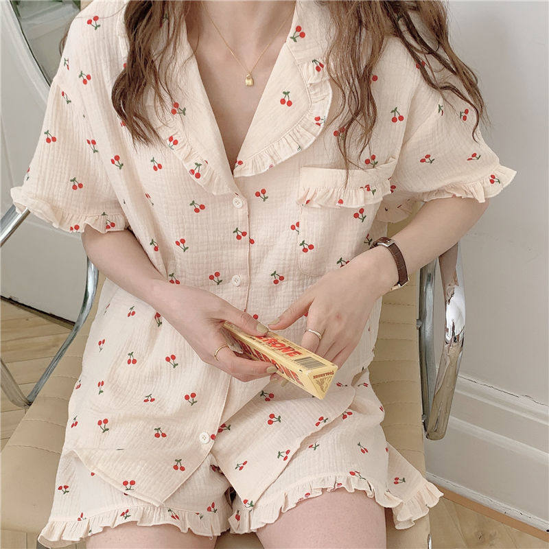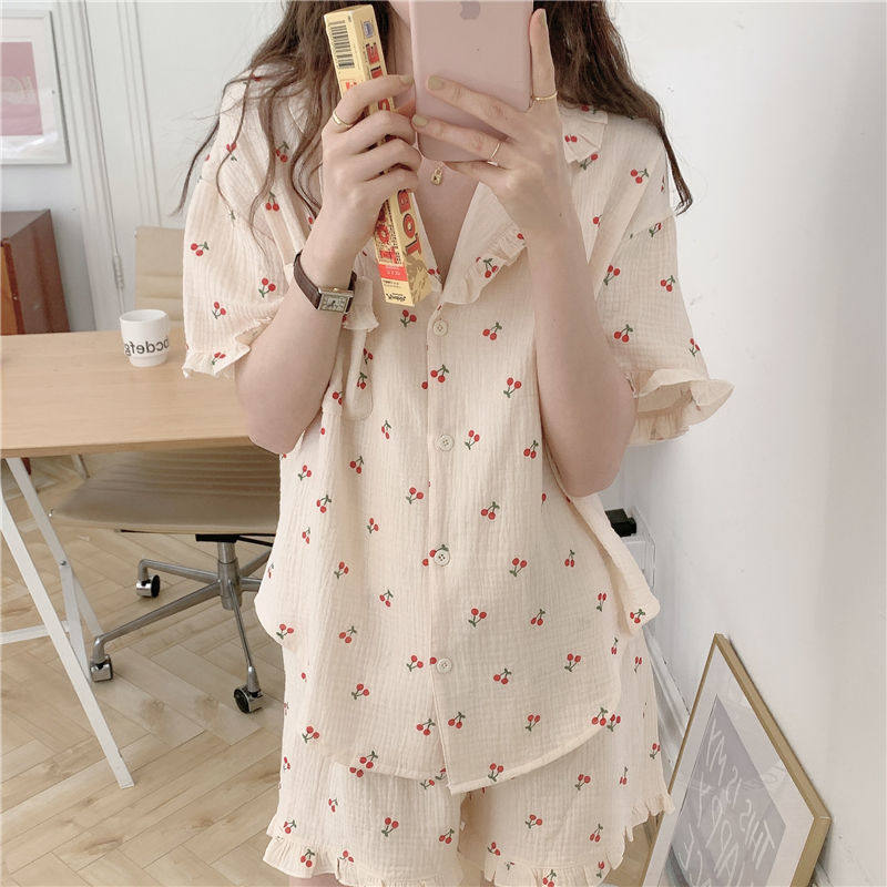 Милые шорты, пижама, милый летний комплект для школьников и студентов, цветочный принт, короткий рукав