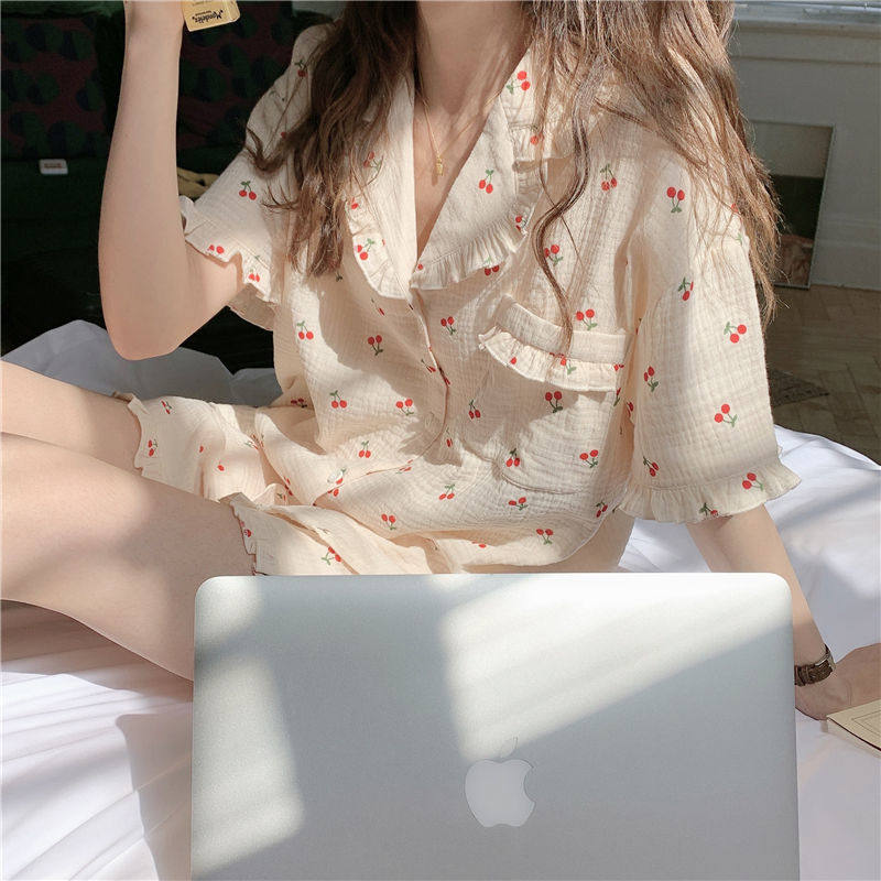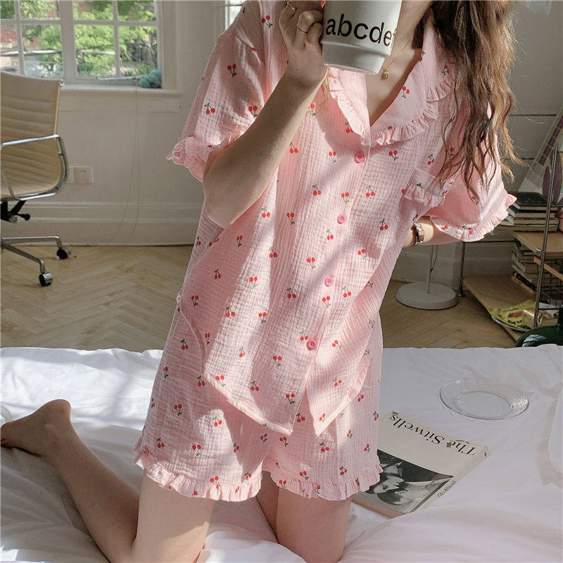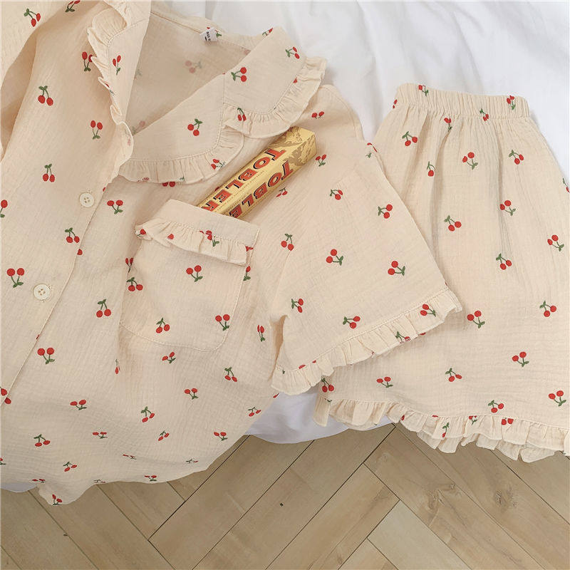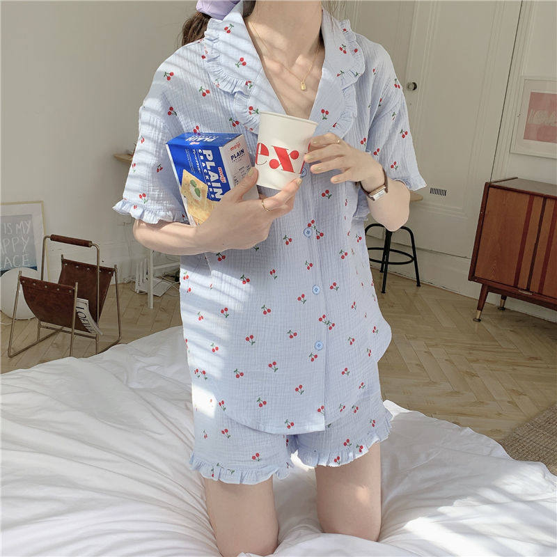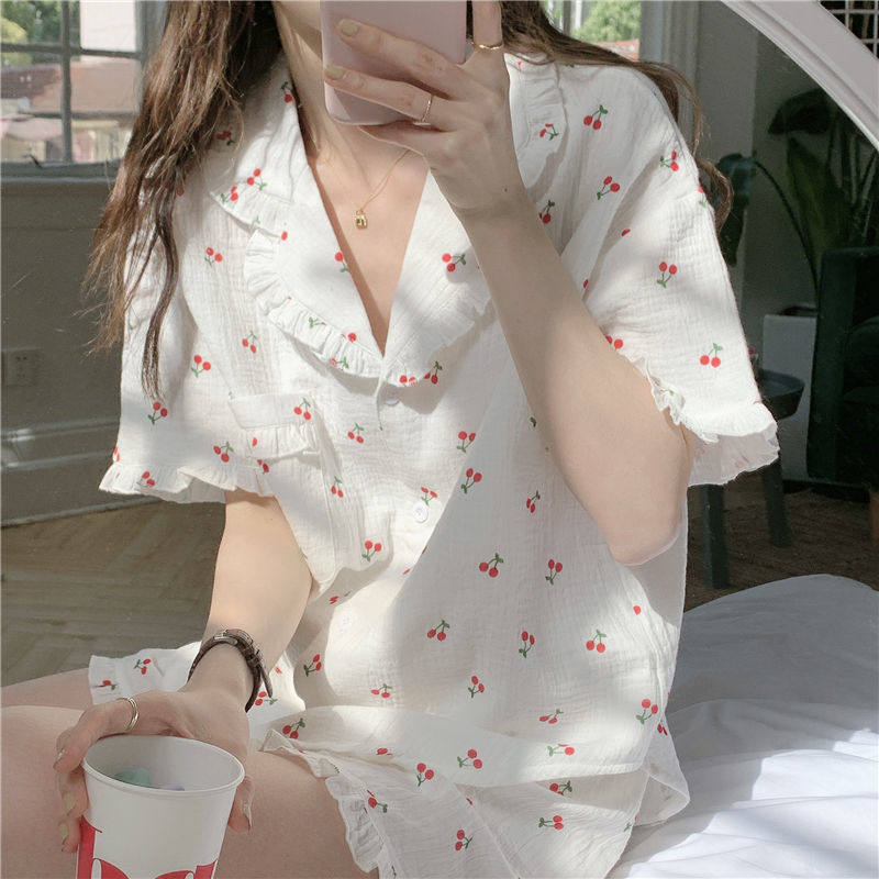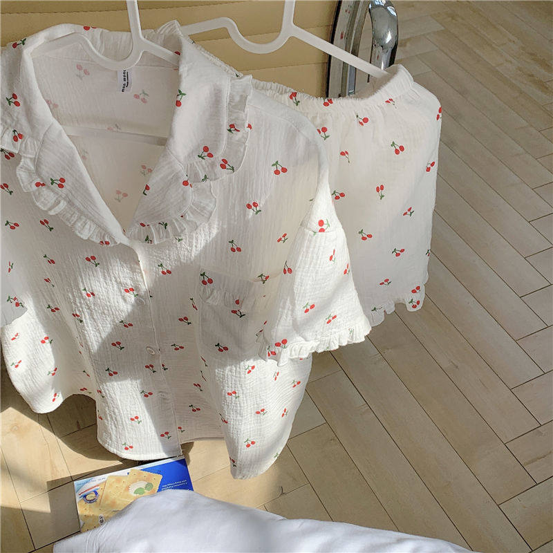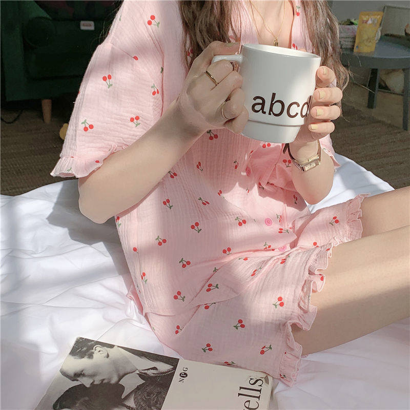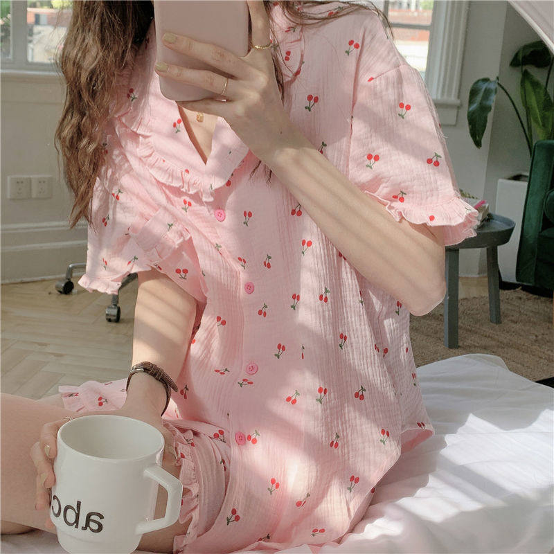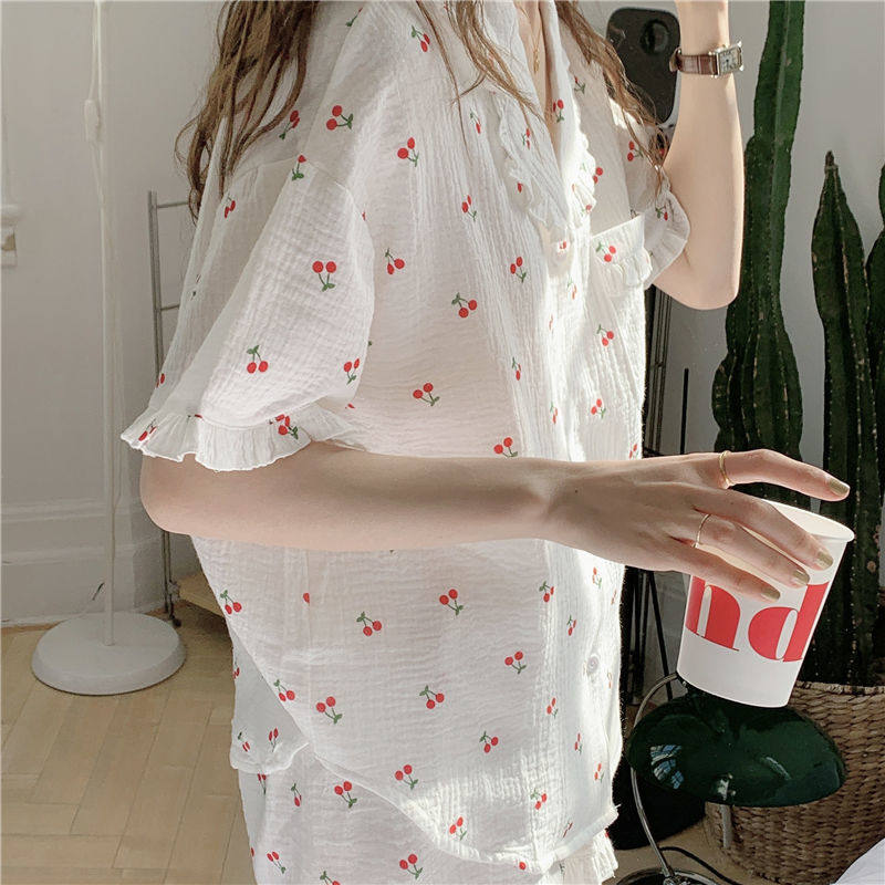 Милые шорты, пижама, милый летний комплект для школьников и студентов, цветочный принт, короткий рукав