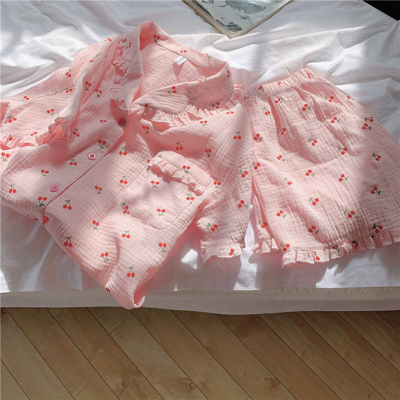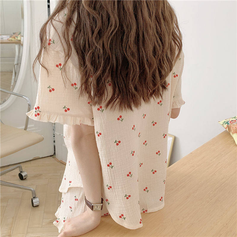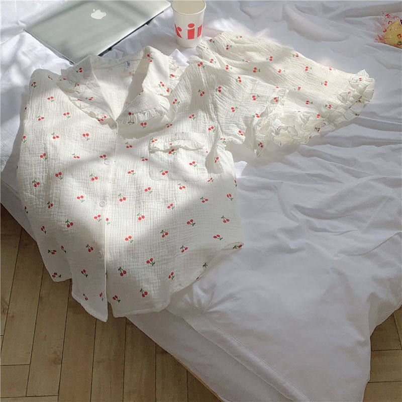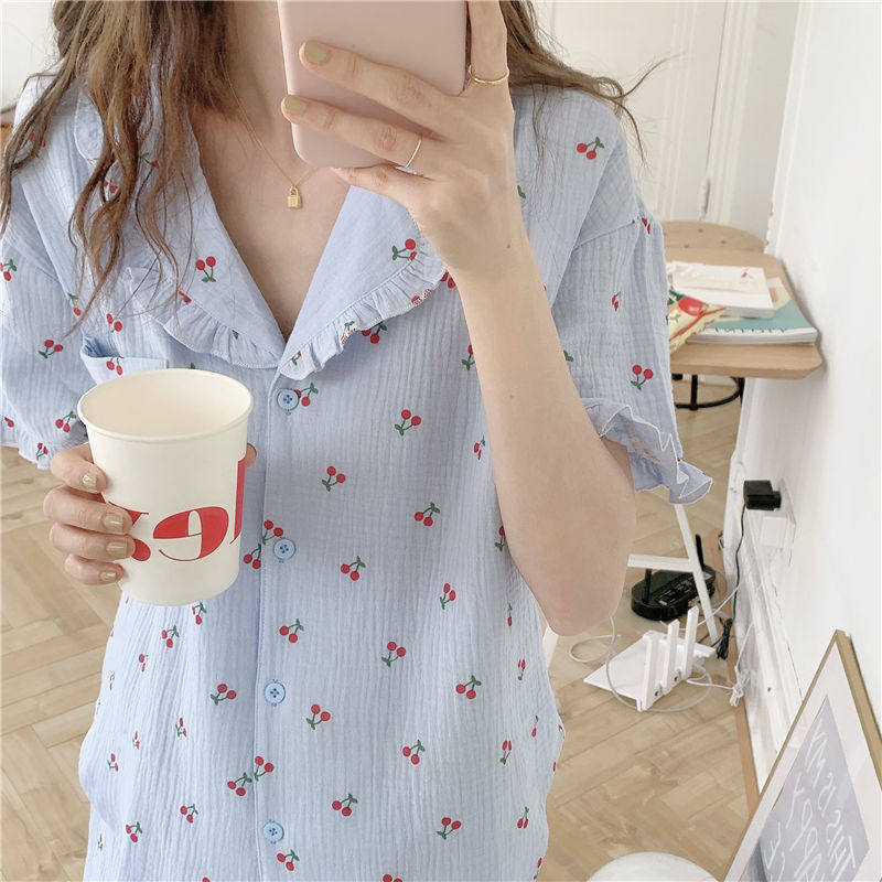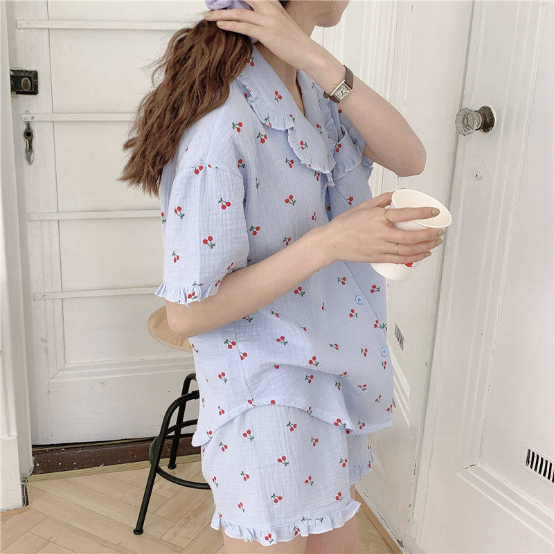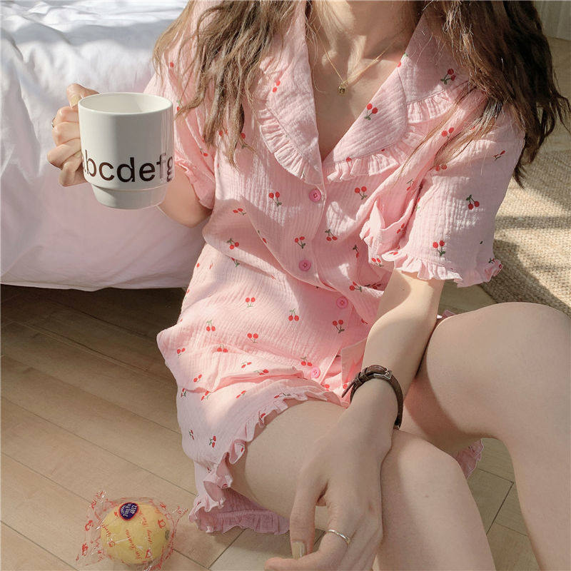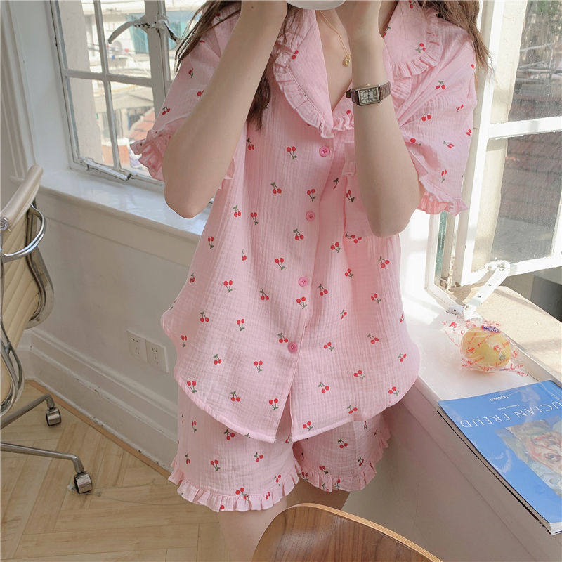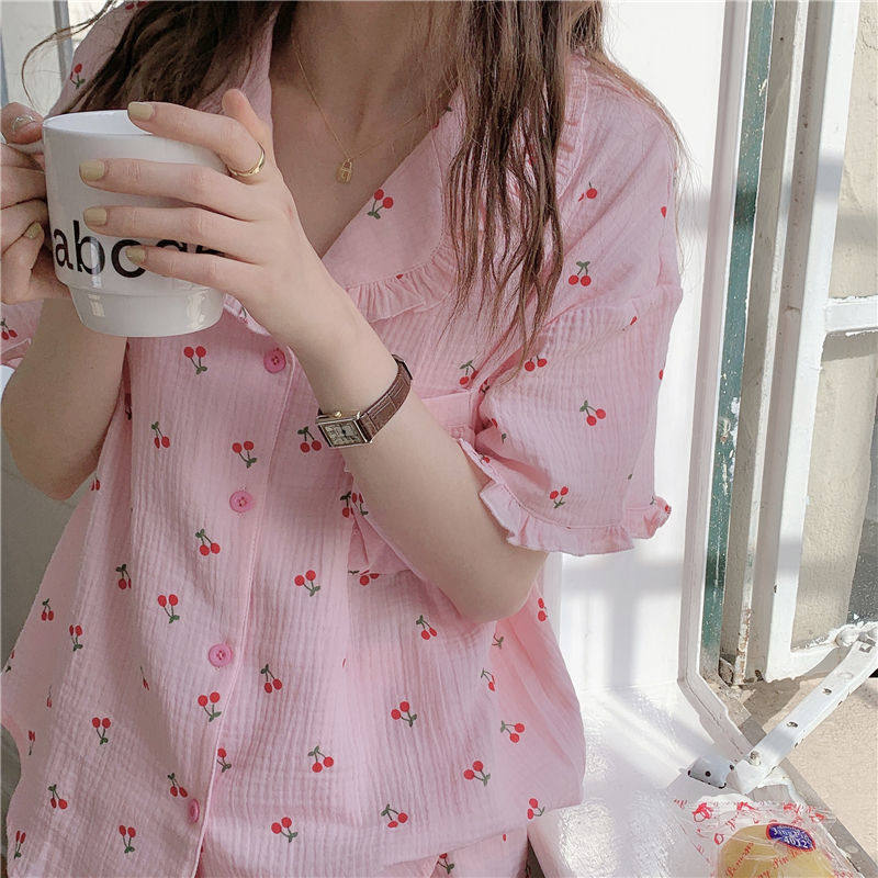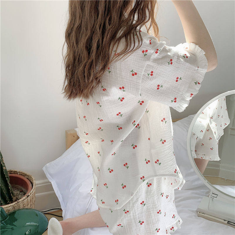 Милые шорты, пижама, милый летний комплект для школьников и студентов, цветочный принт, короткий рукав